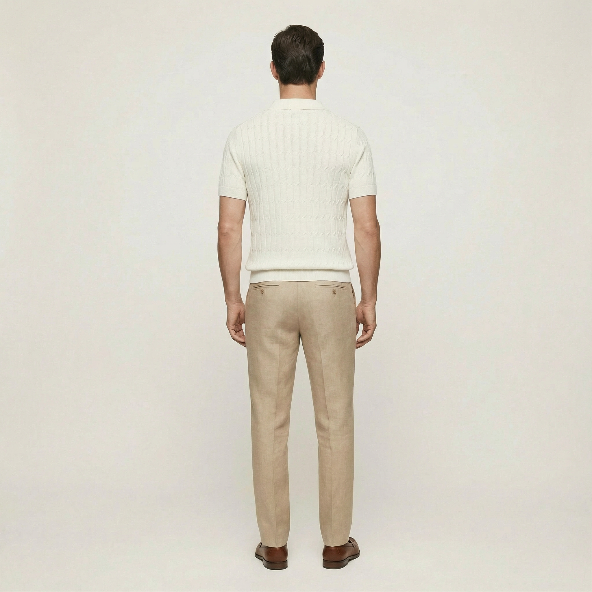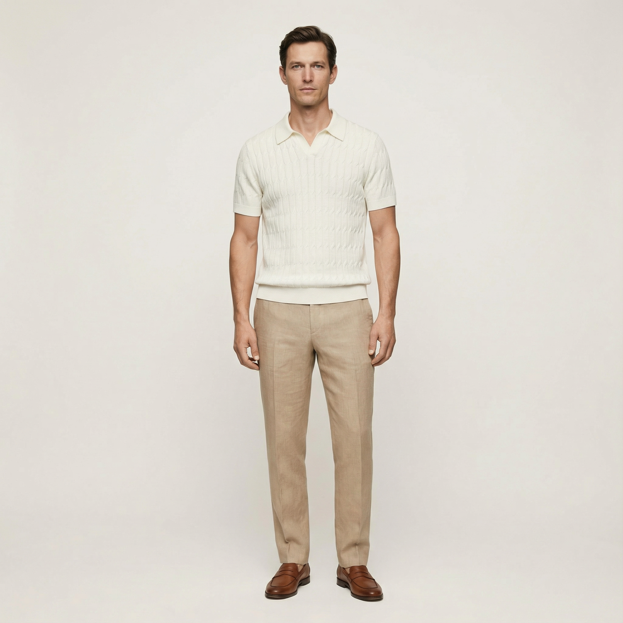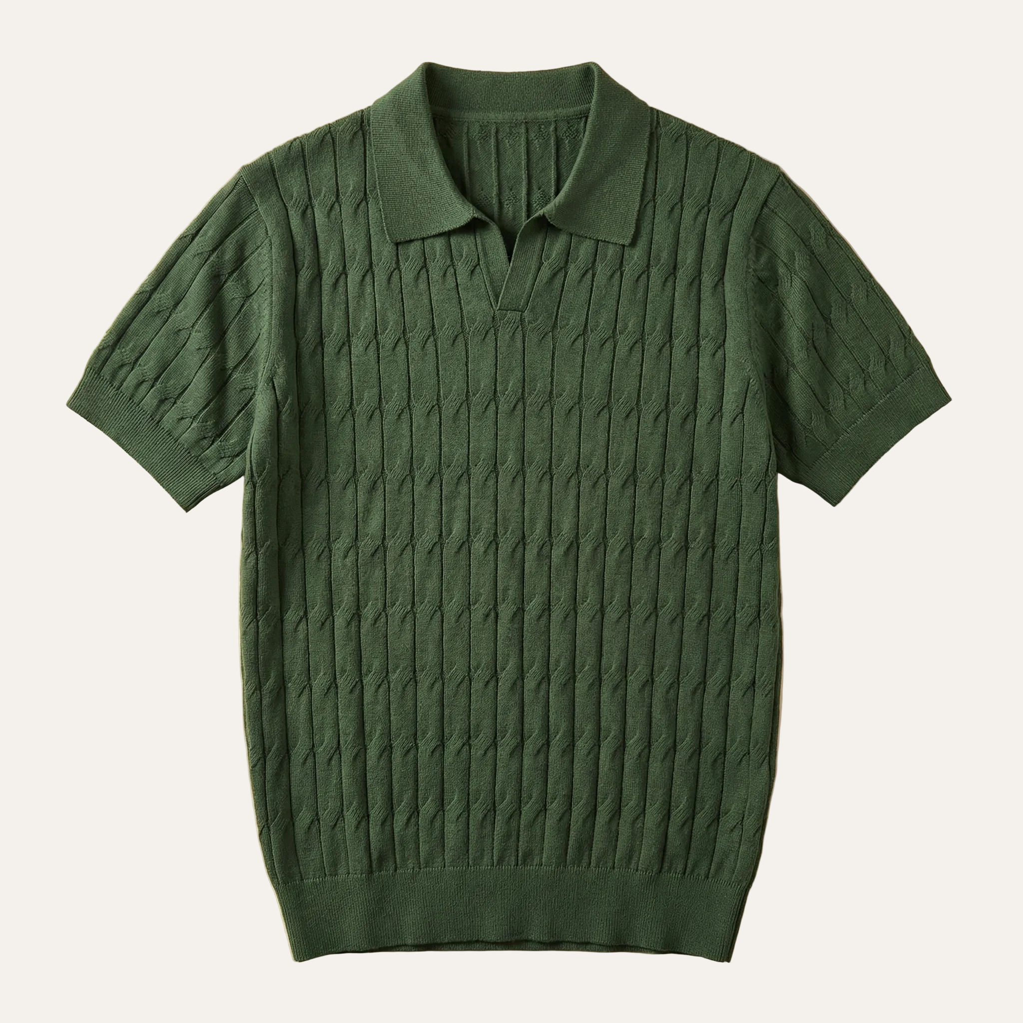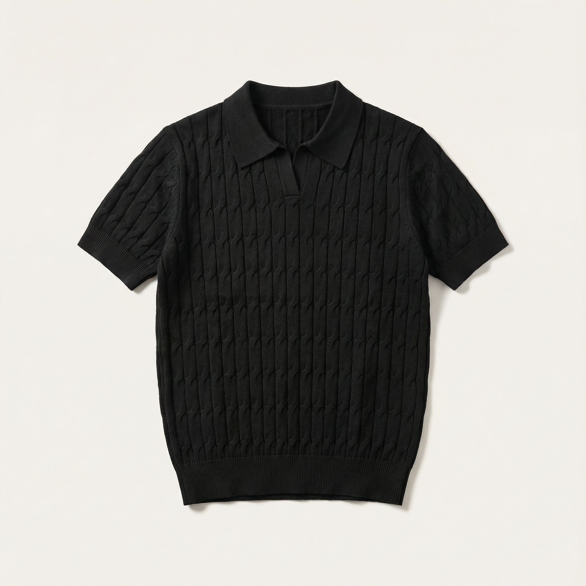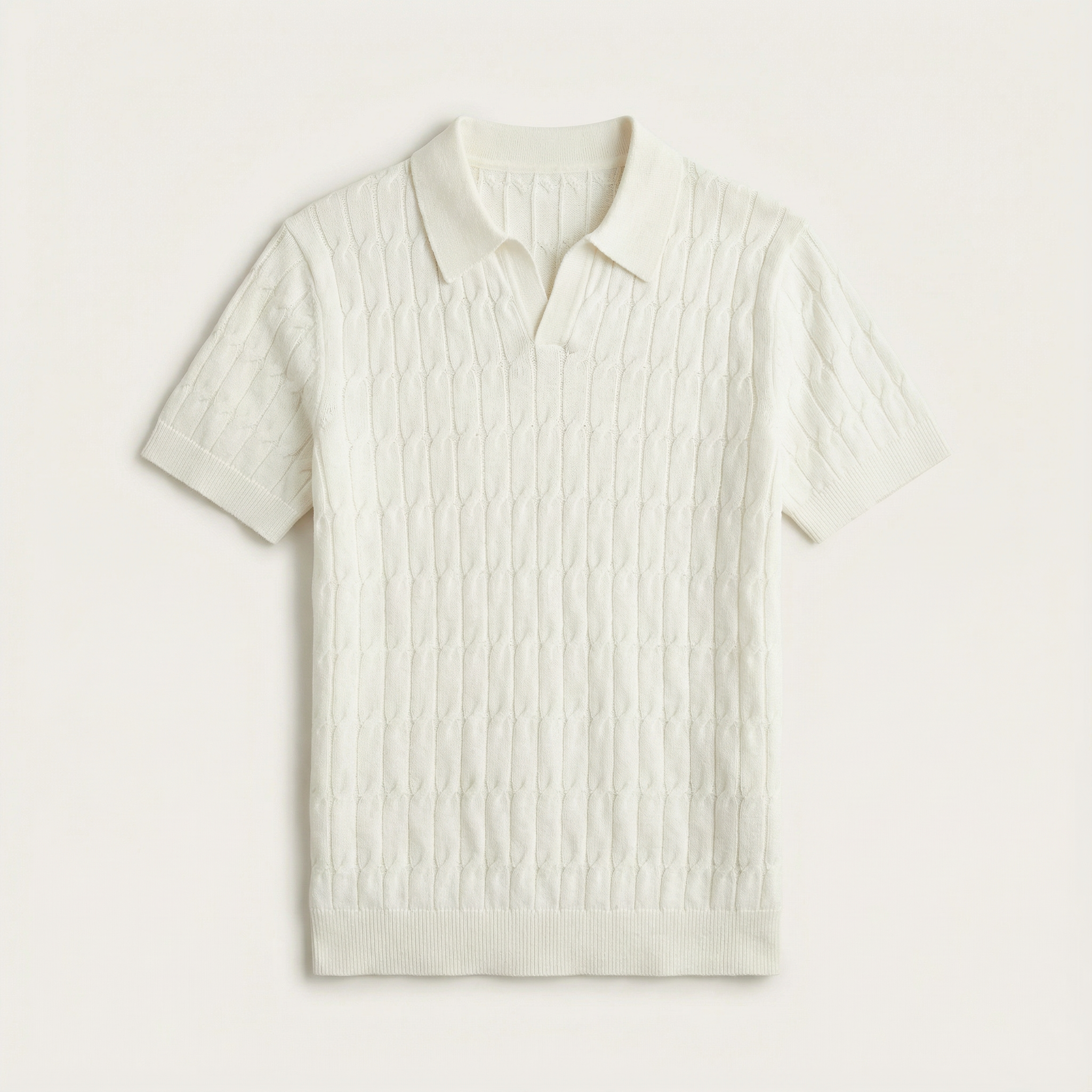 Men’s Short-Sleeve Polo Shirt – Textured Pattern, Slim Fit Design