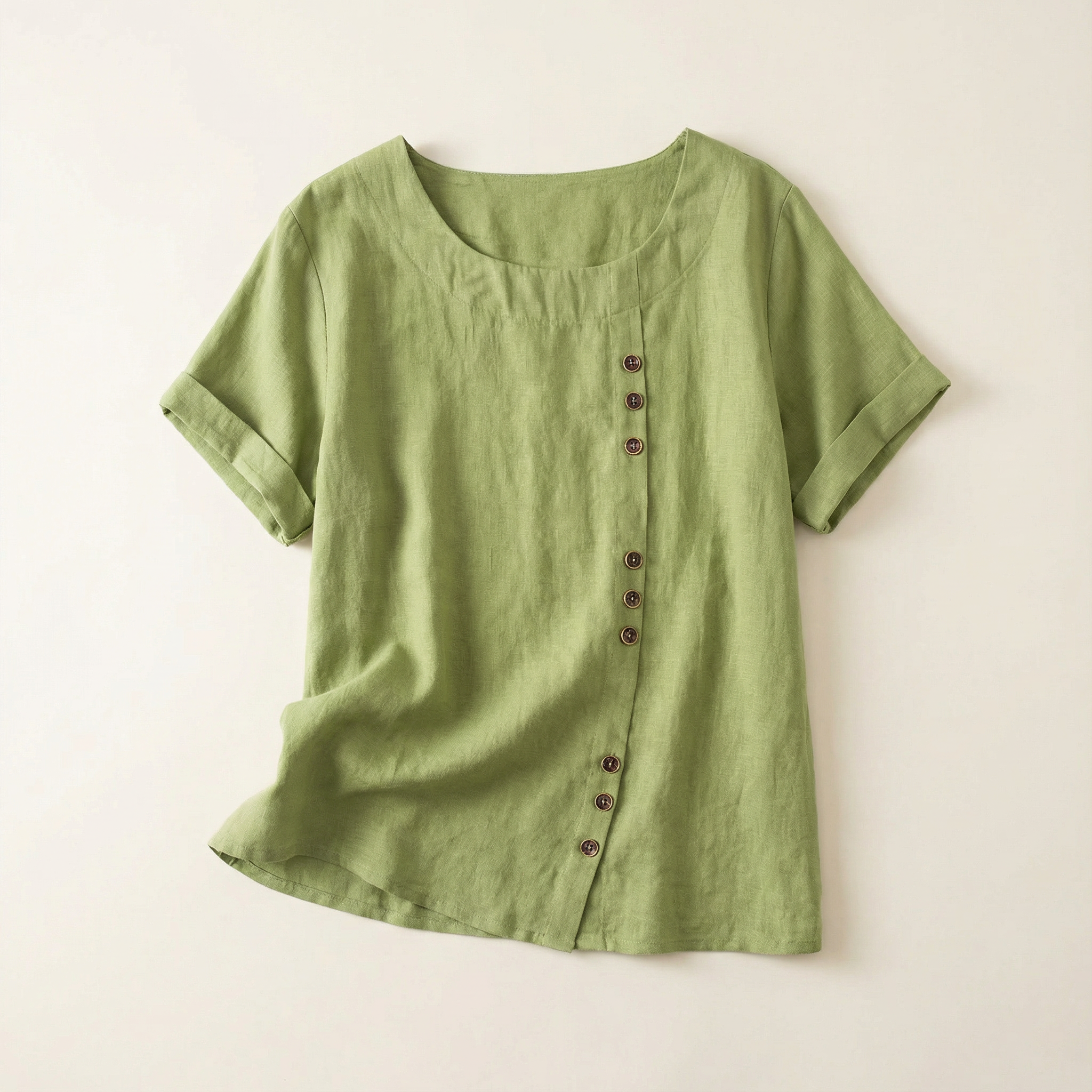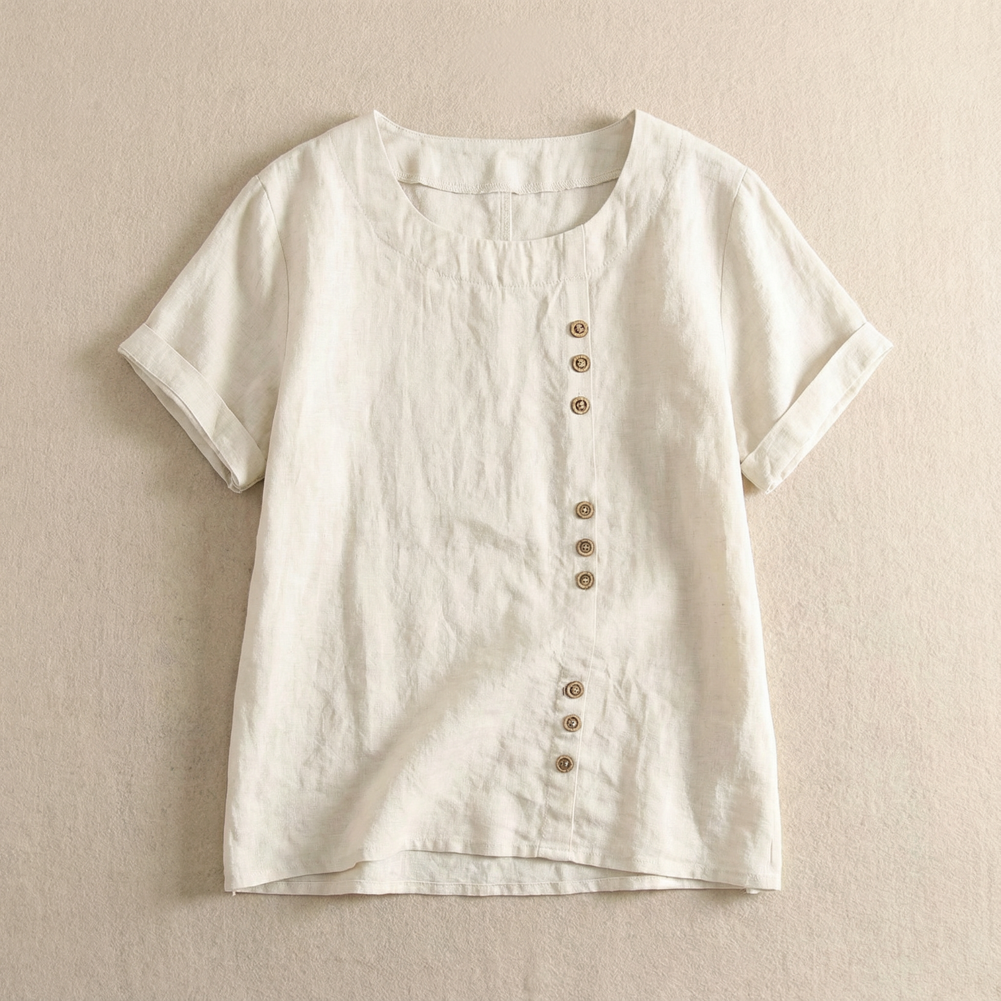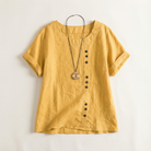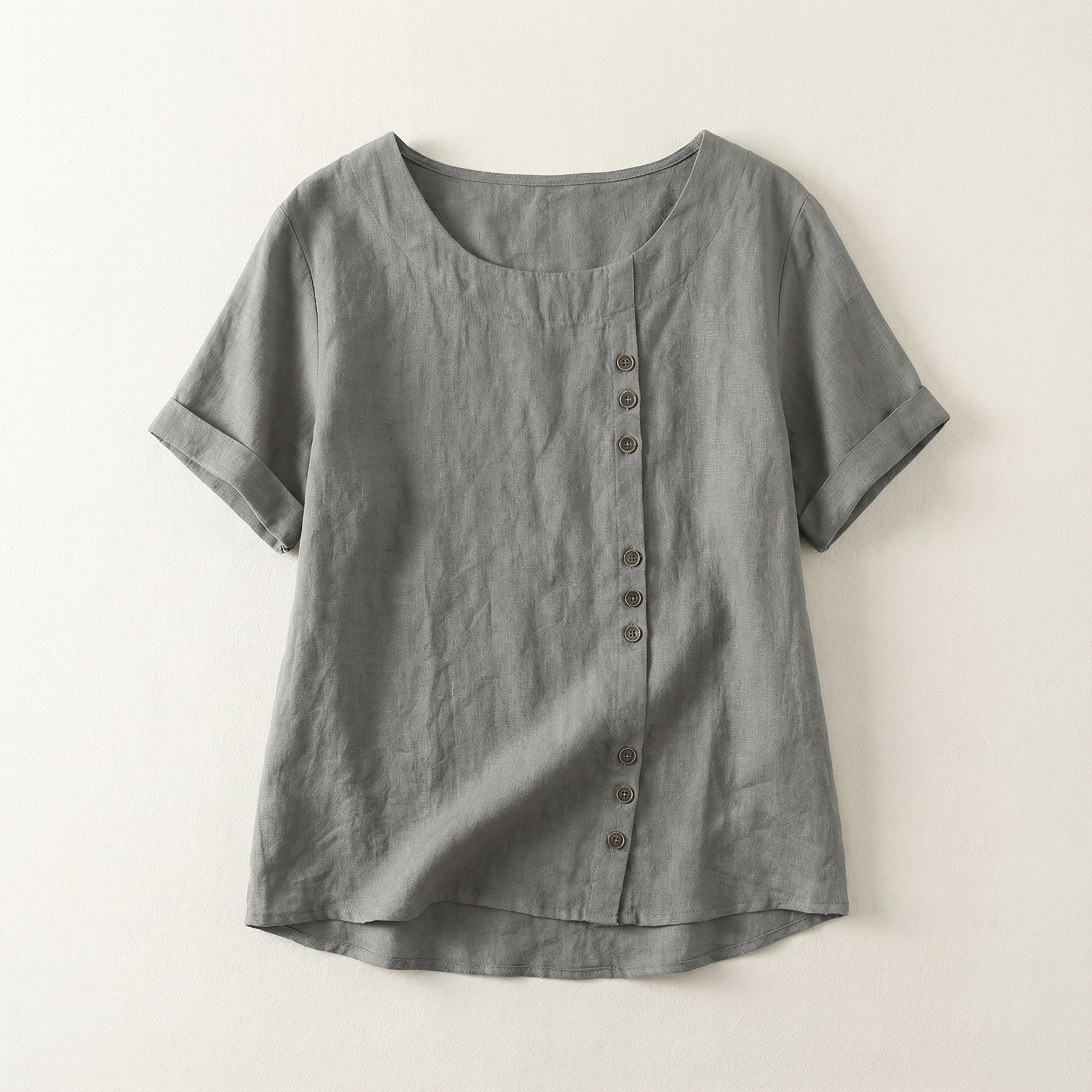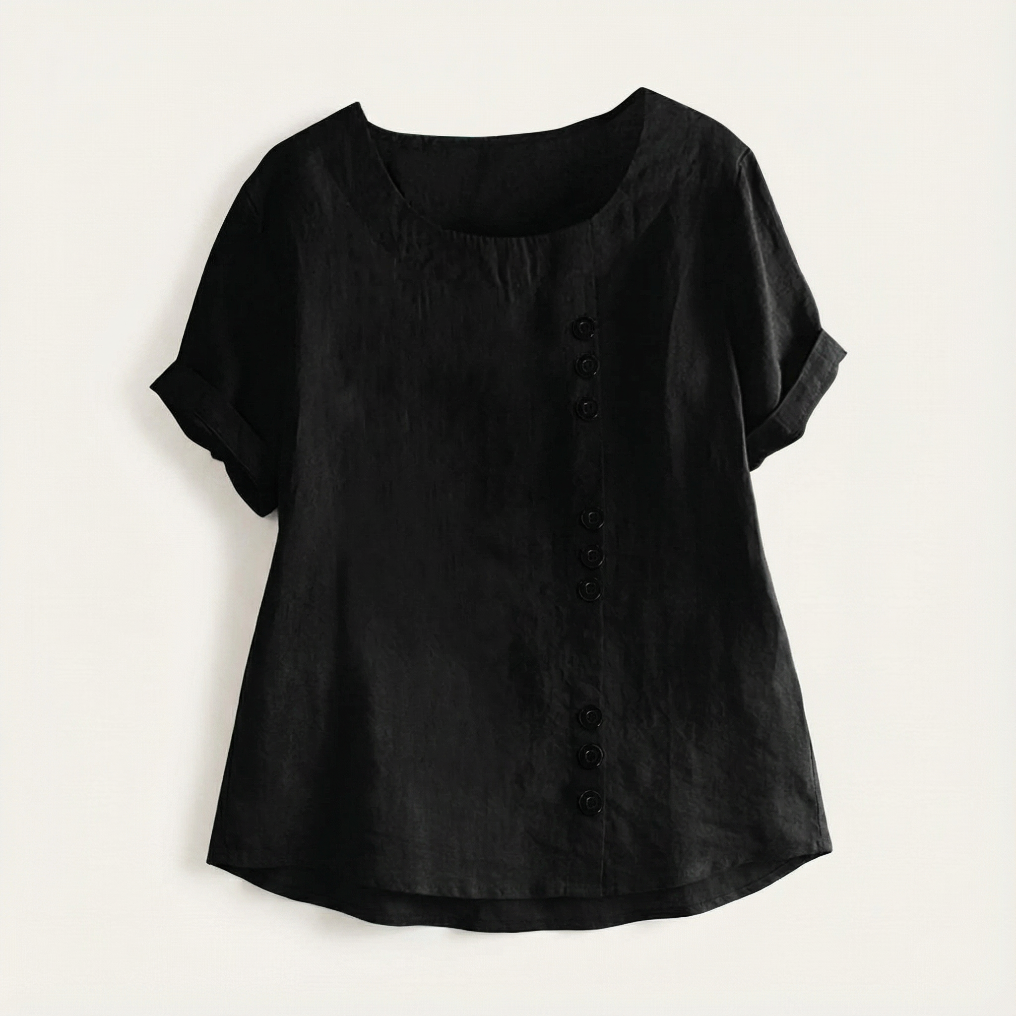 Short-Sleeve Top for Women – Asymmetric Hem, Button Detail