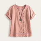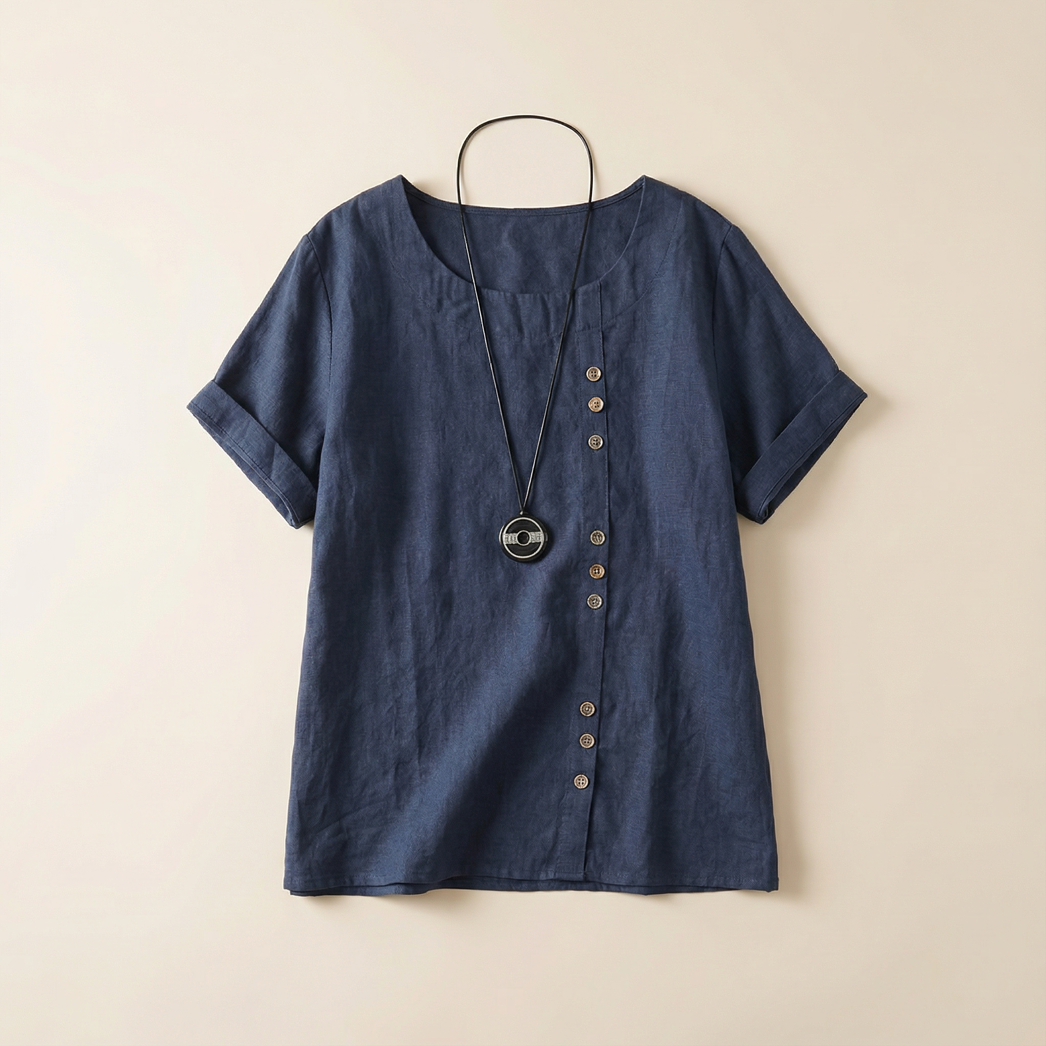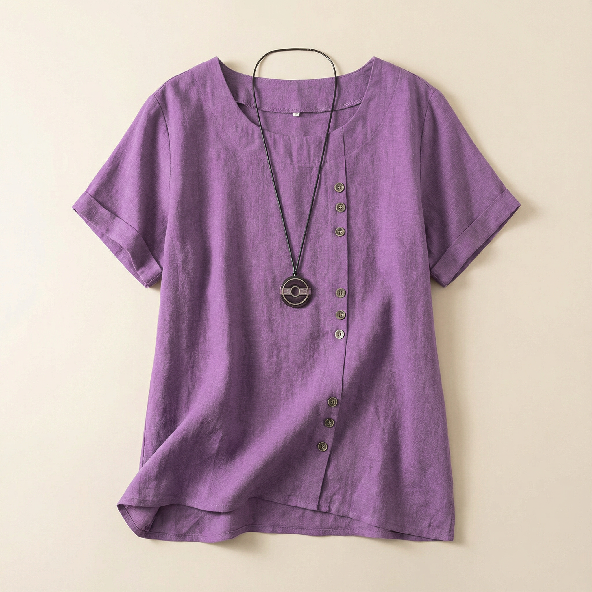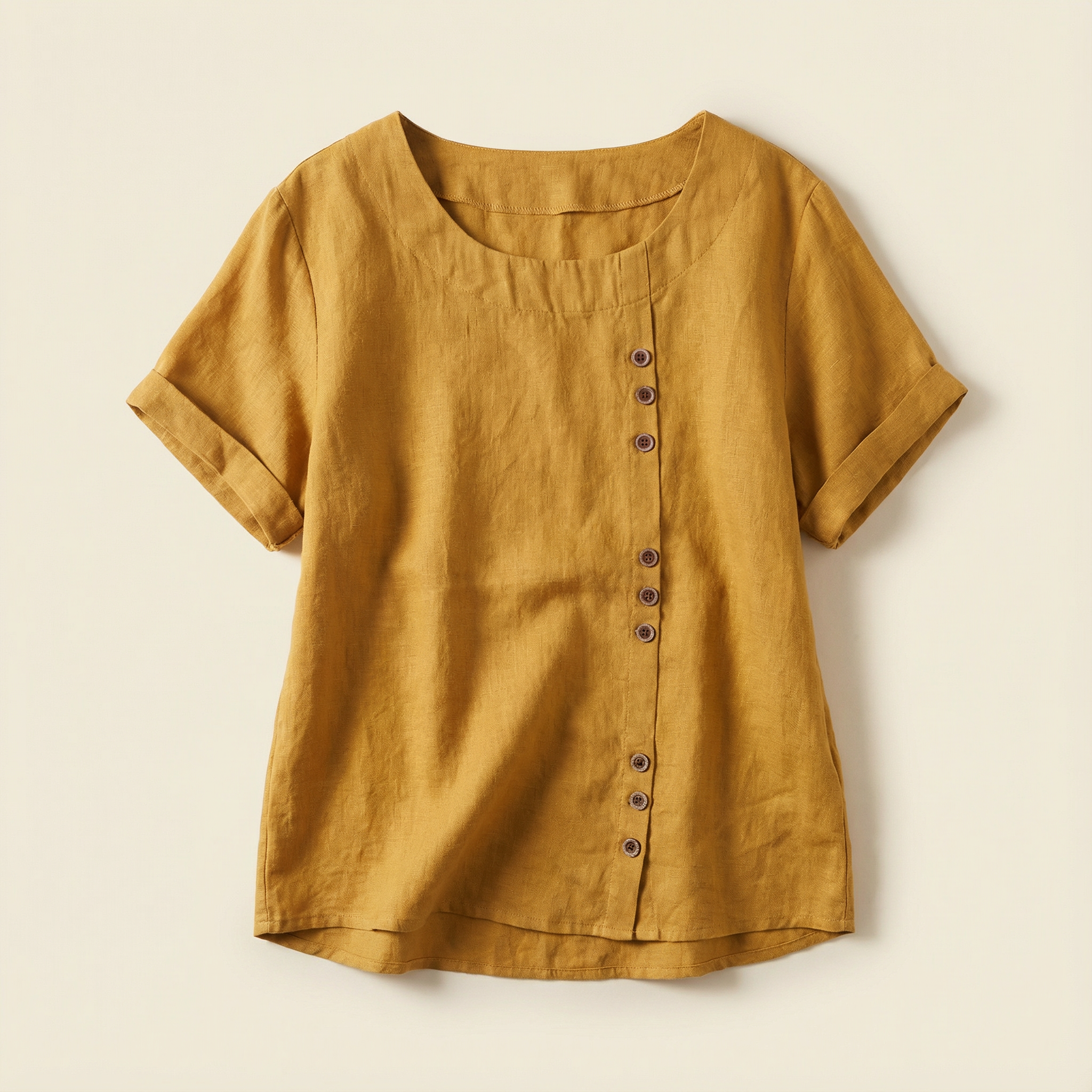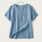Short-Sleeve Top for Women – Asymmetric Hem, Button Detail