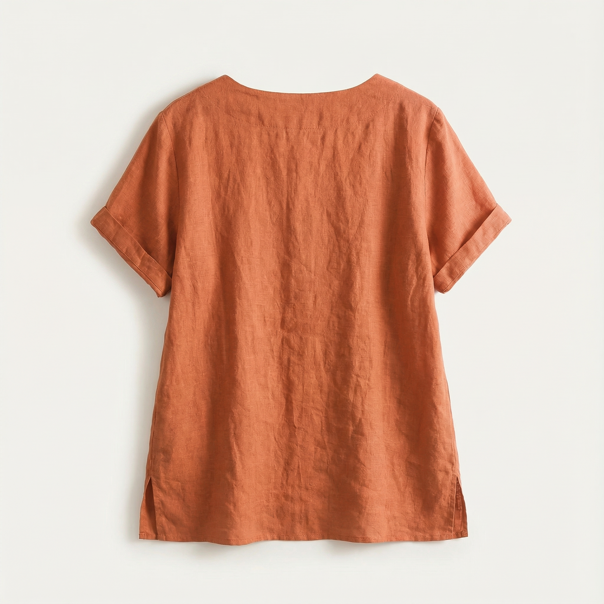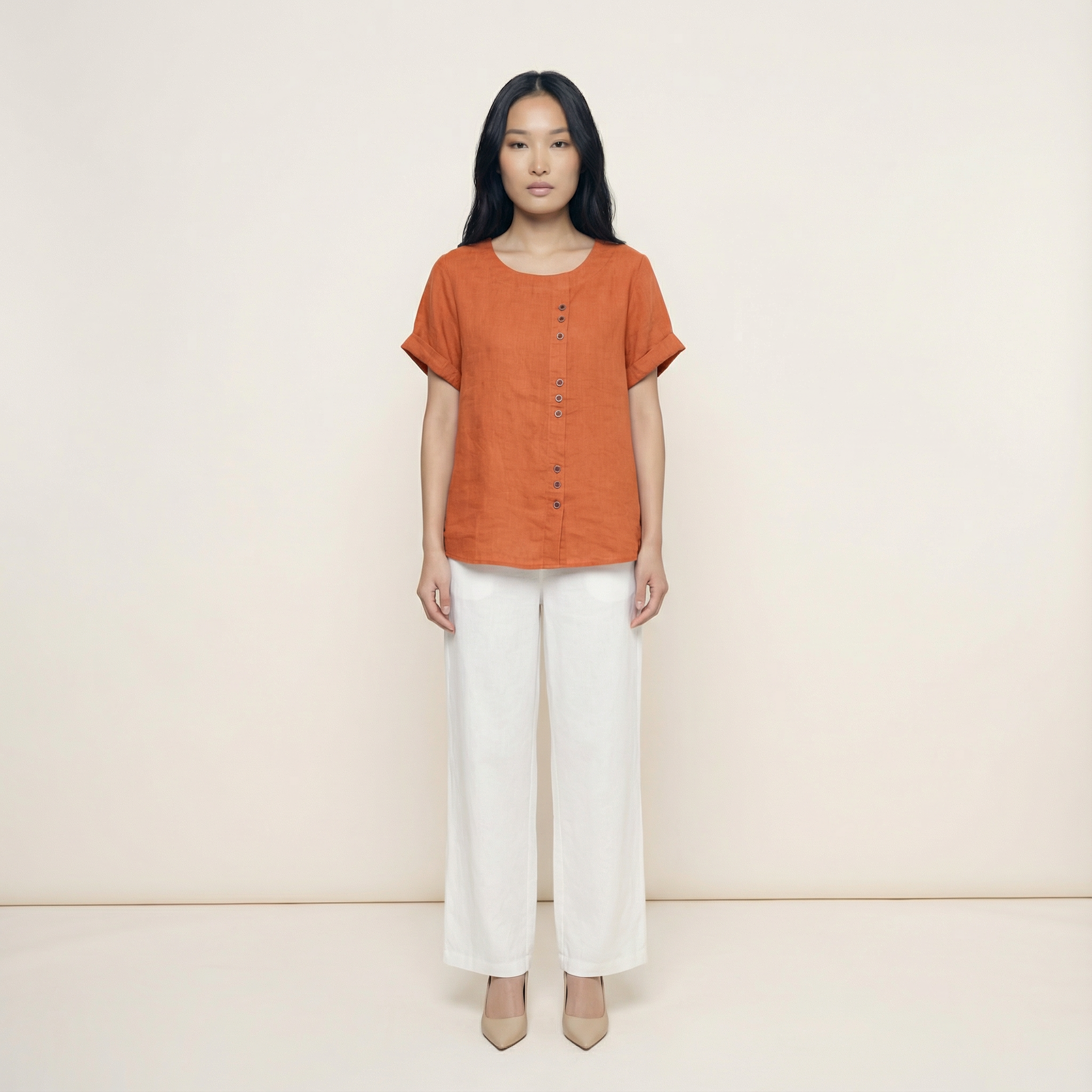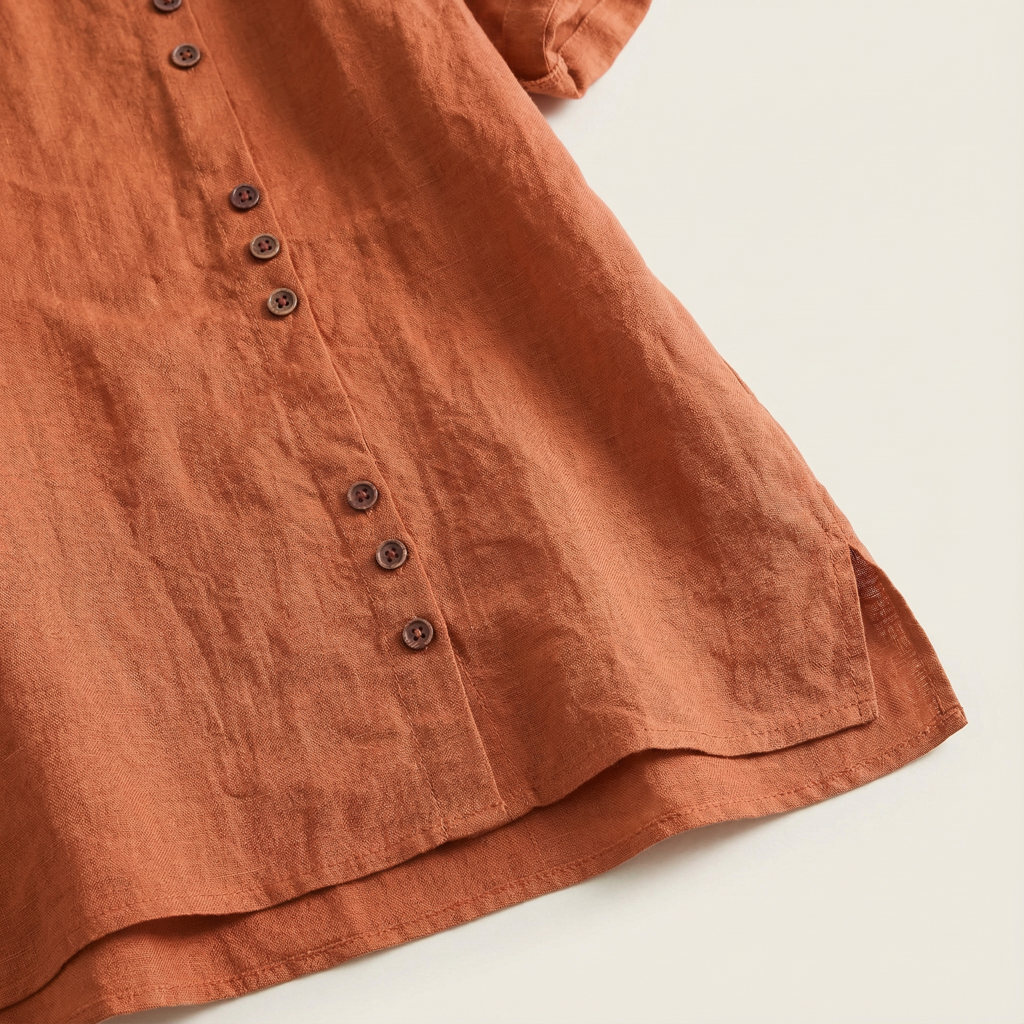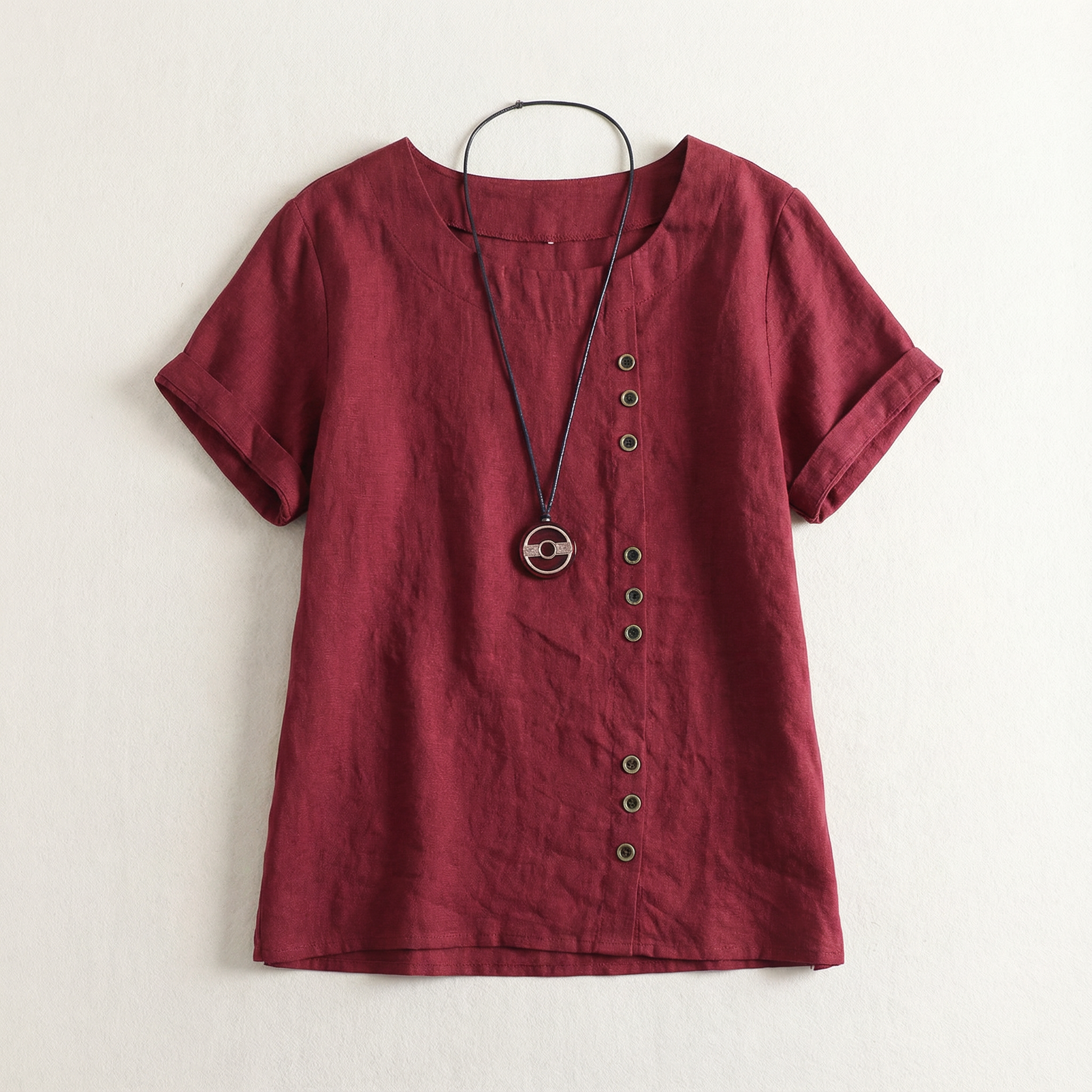 Short-Sleeve Top for Women – Asymmetric Hem, Button Detail