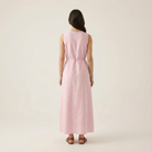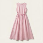 This women’s sleeveless maxi dress is designed for everyday and warm-weather wear. It features a floor-length cut with a tie waist for adjustable styling.