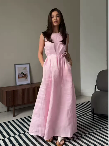 Women’s Pink Tatum Maxi Dress – Full-Length One-Piece with Clean Silhouette