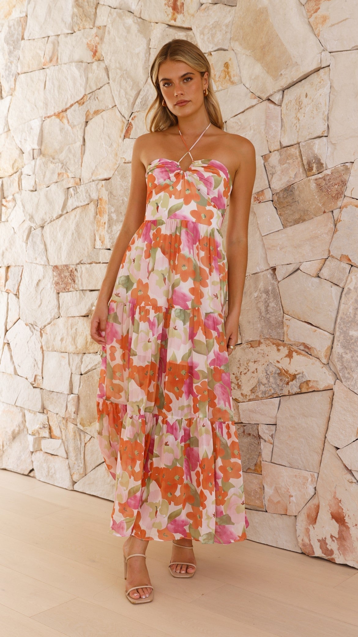 Women’s Orange/Pink Floral Dress – Printed One-Piece with Seasonal Colour Palette