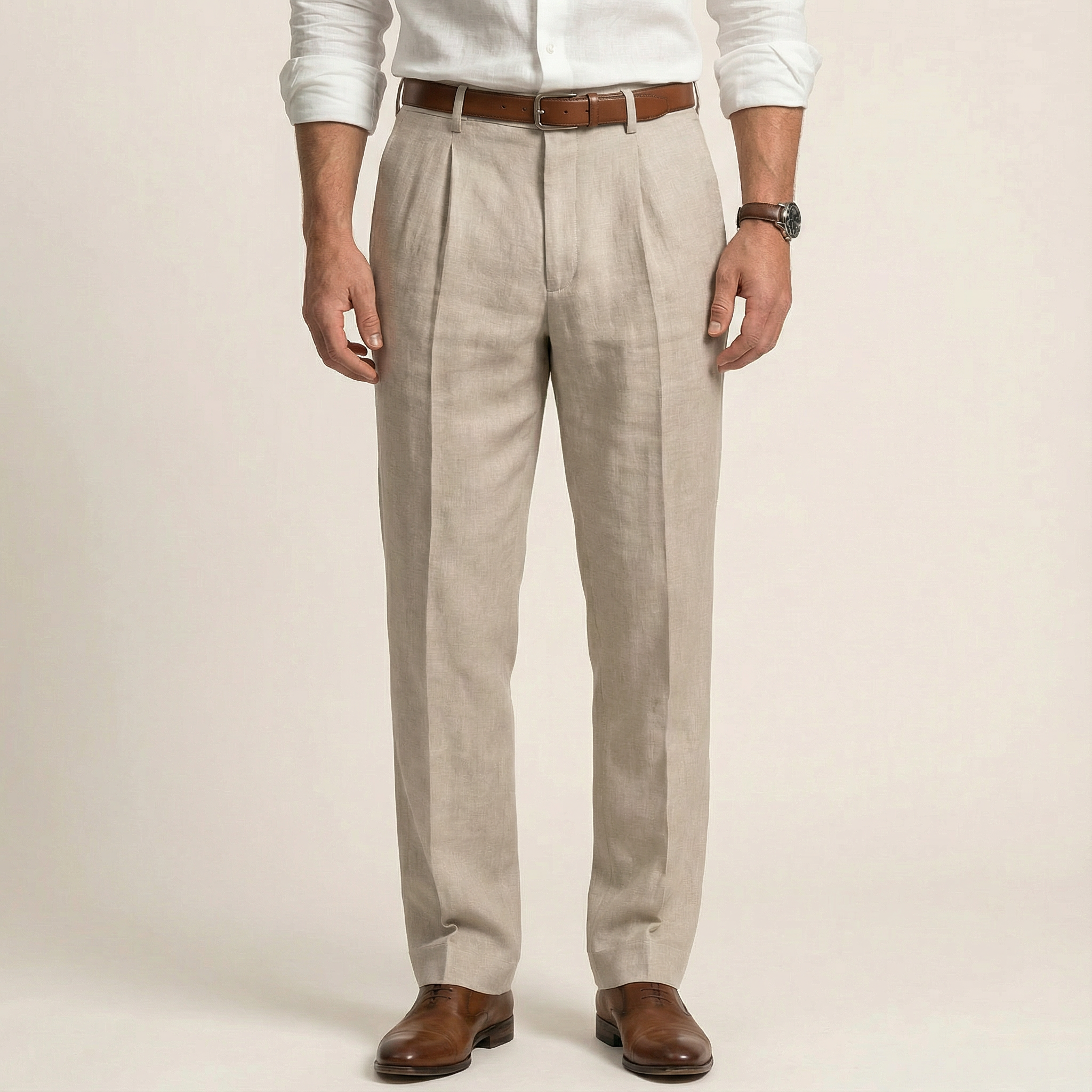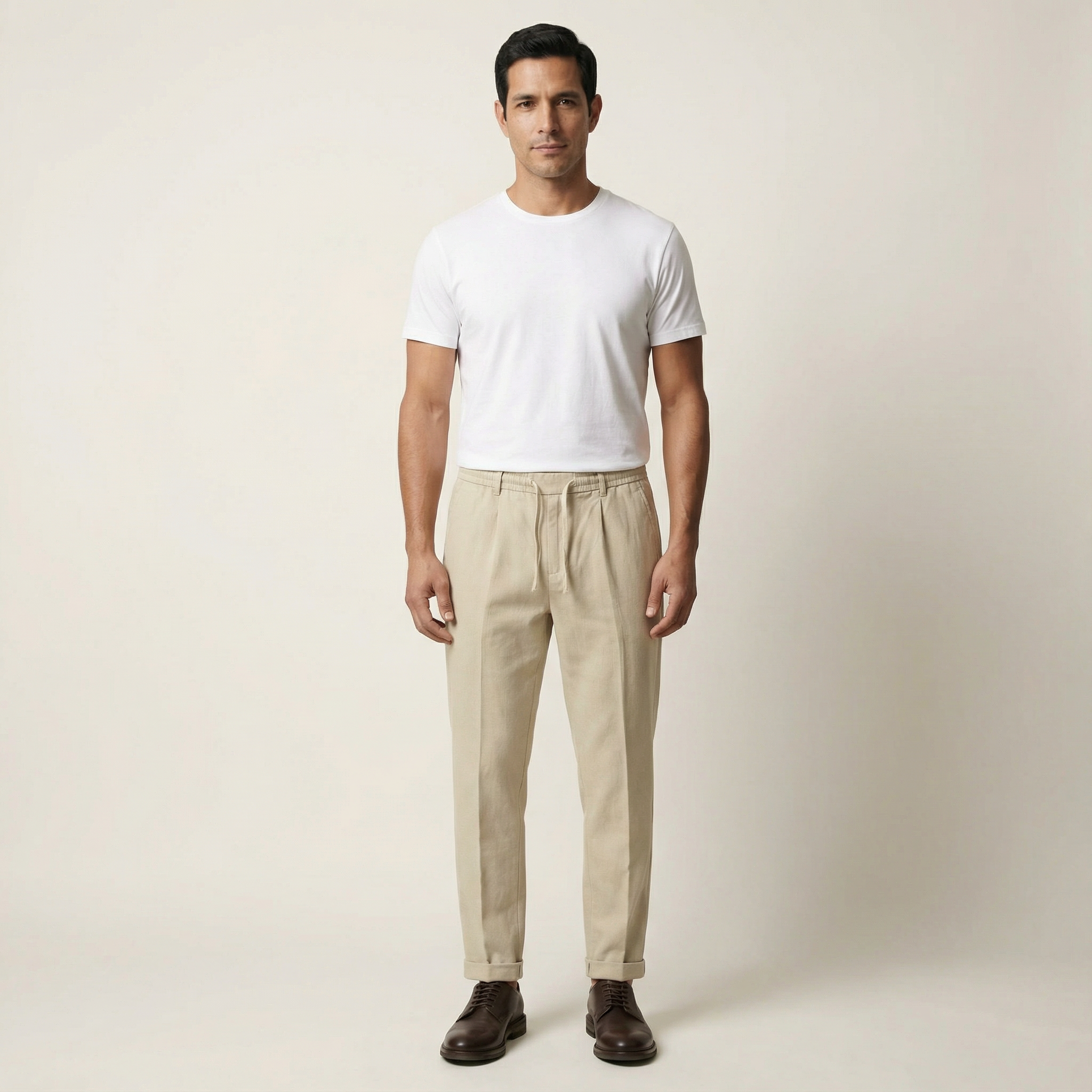 Men’s Pleated Trousers – Straight Leg, Ankle-Length Design