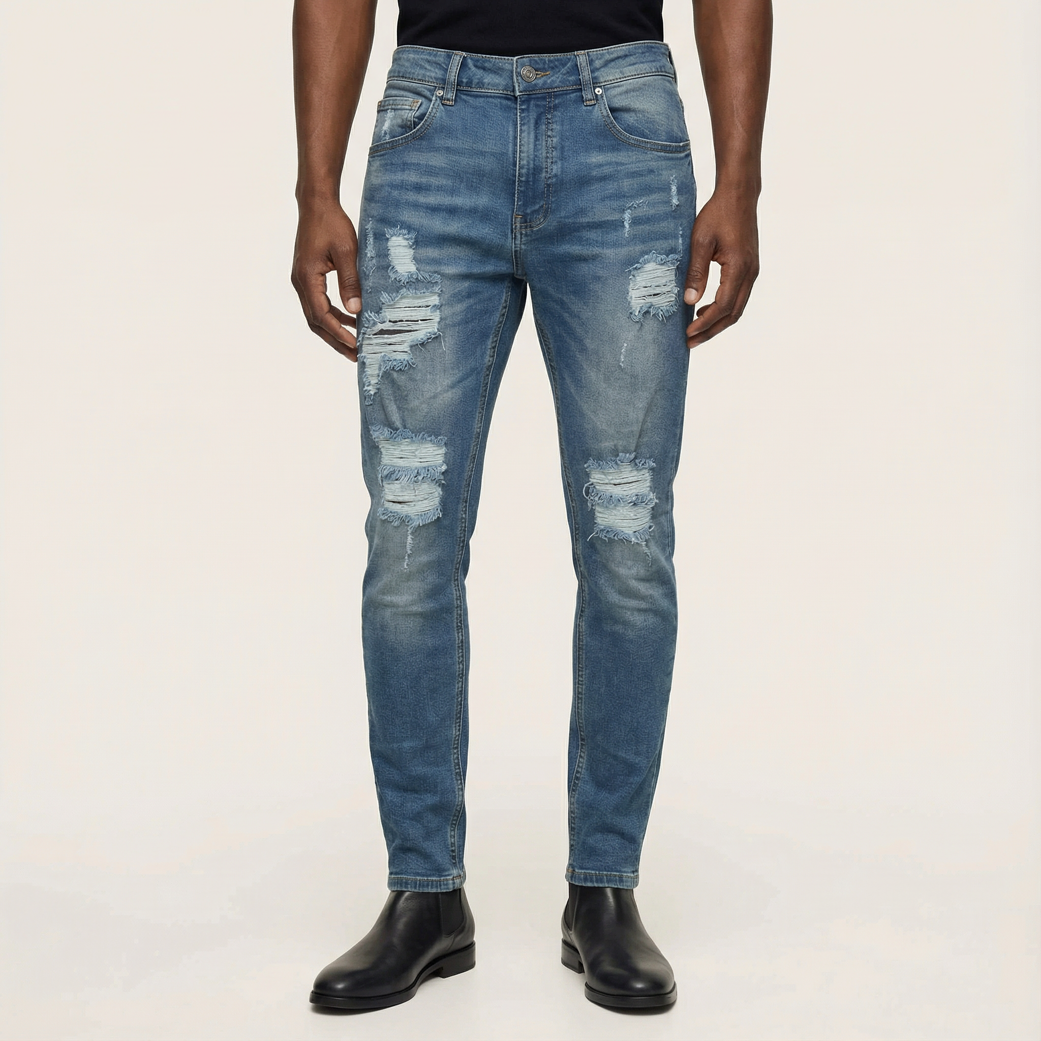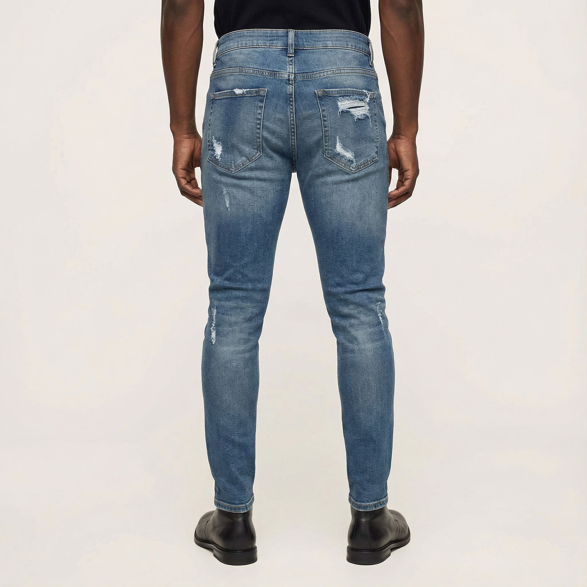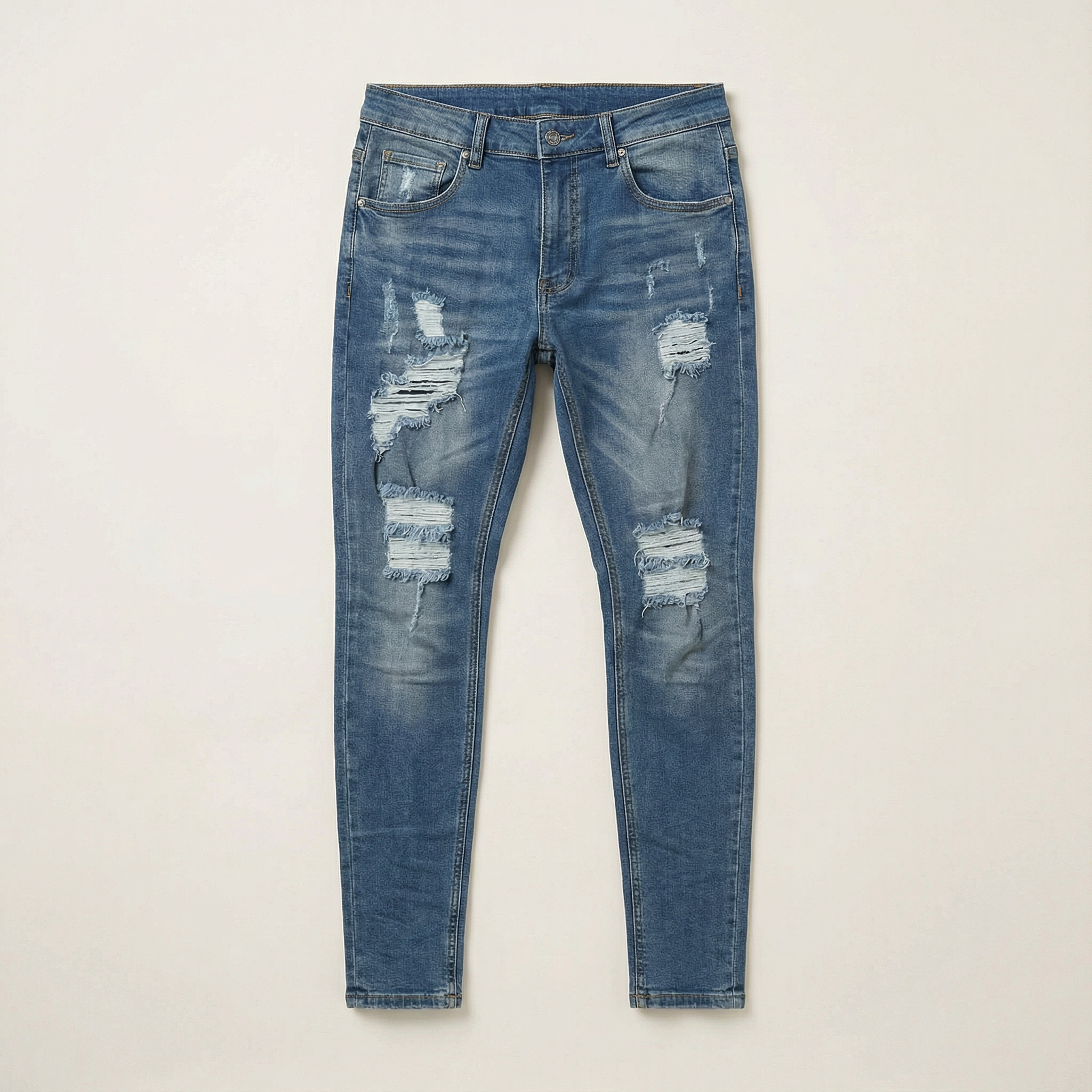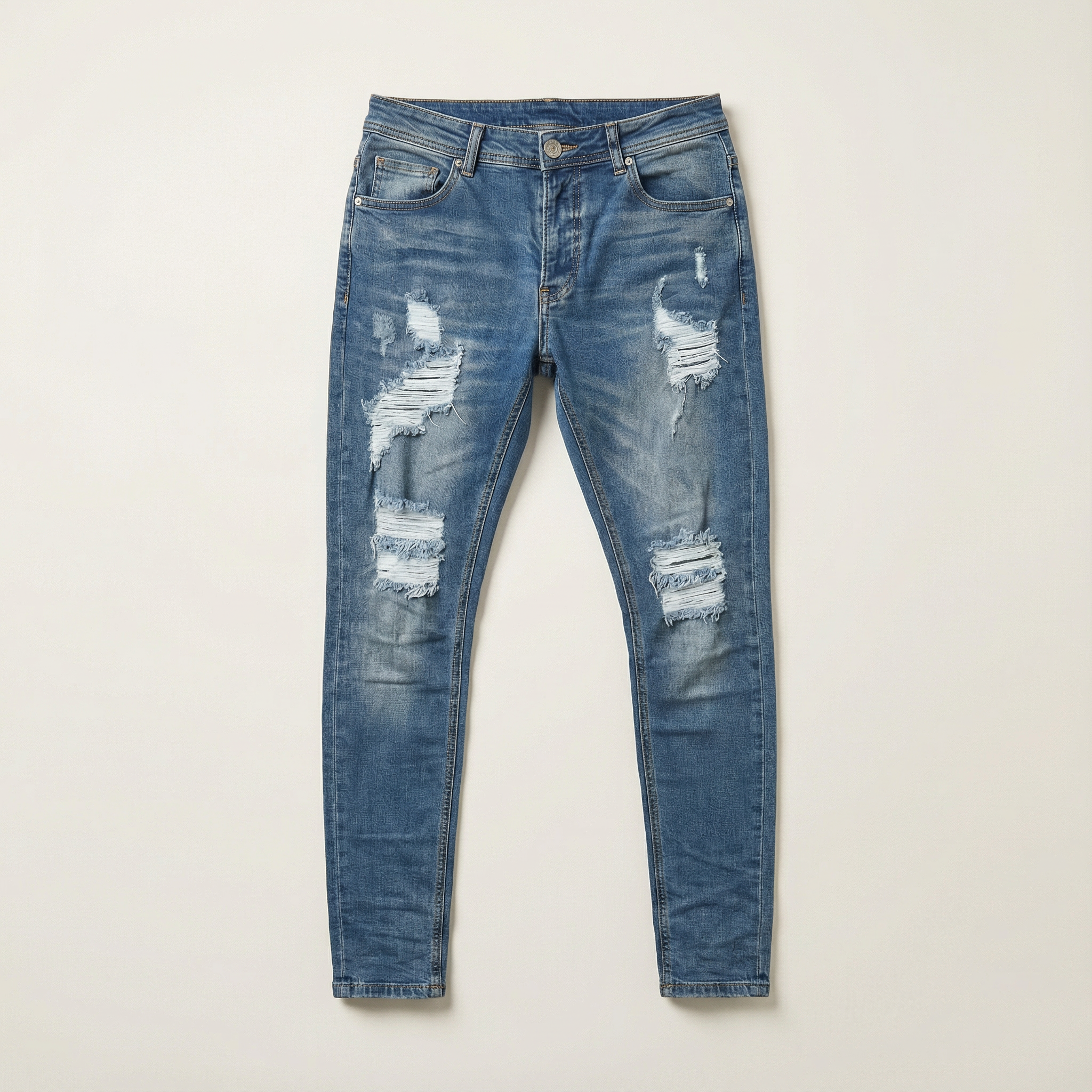 Men’s Slim-Fit Jeans – Distressed Design, Full-Length