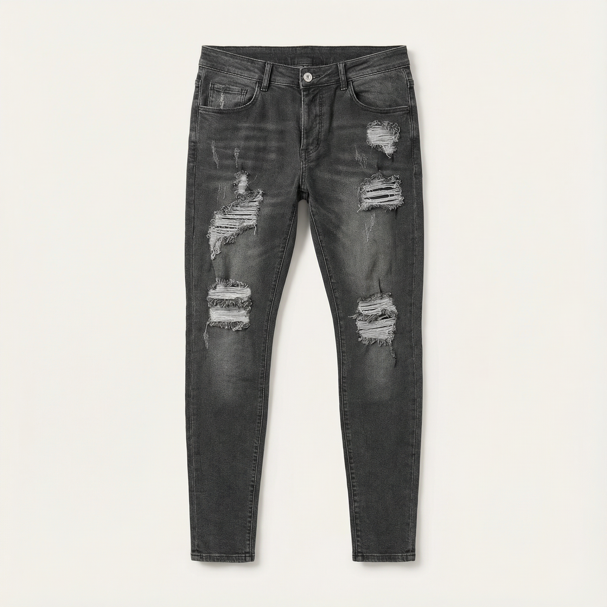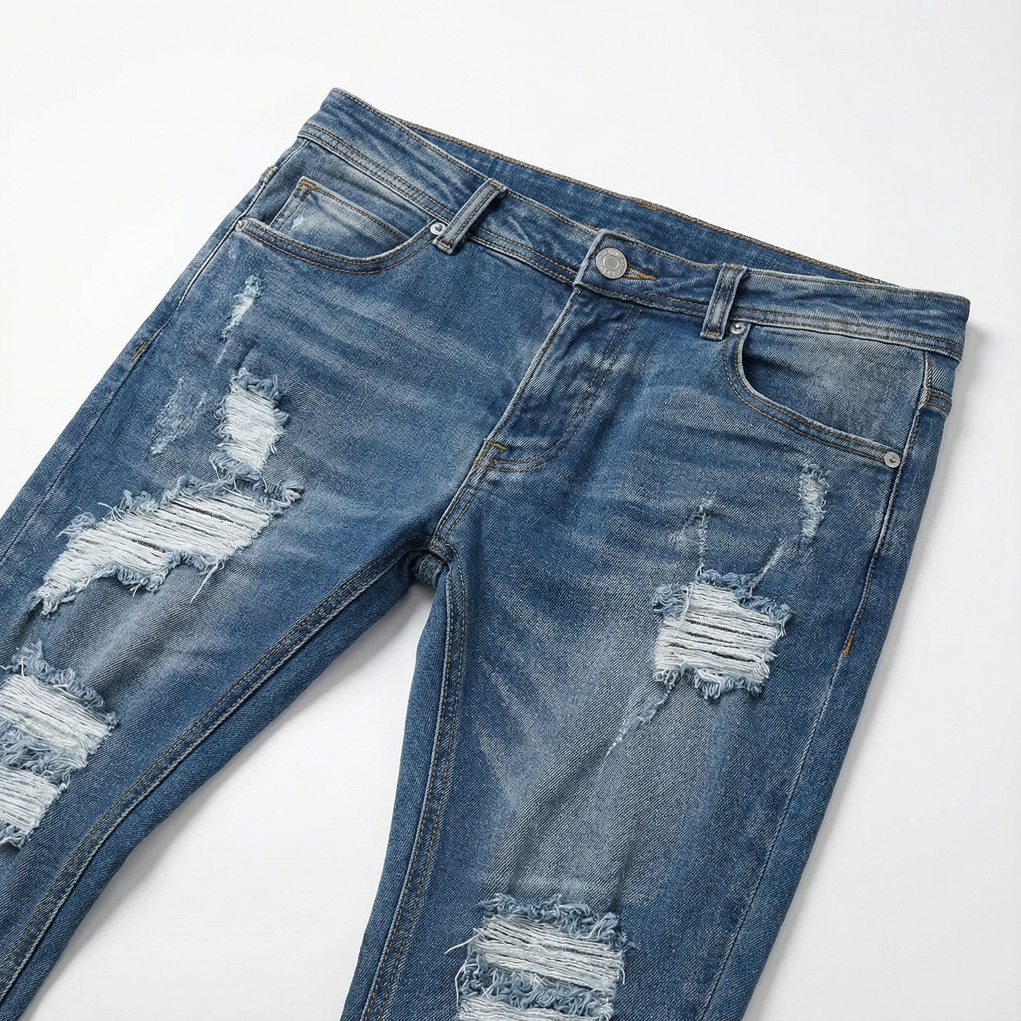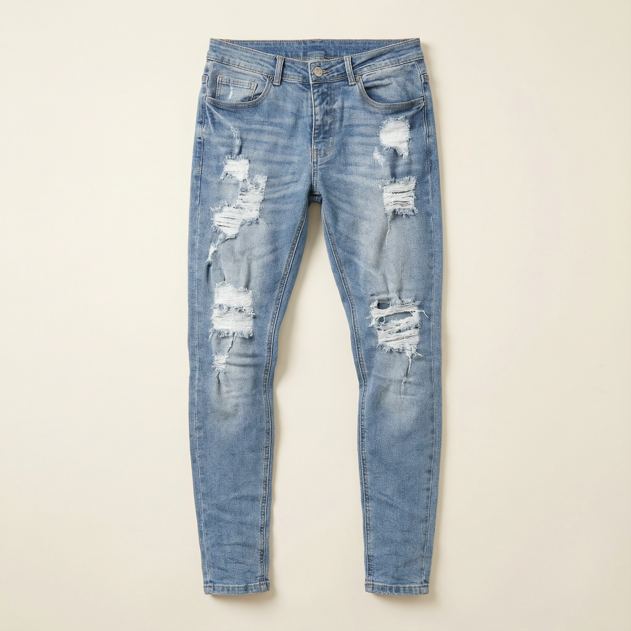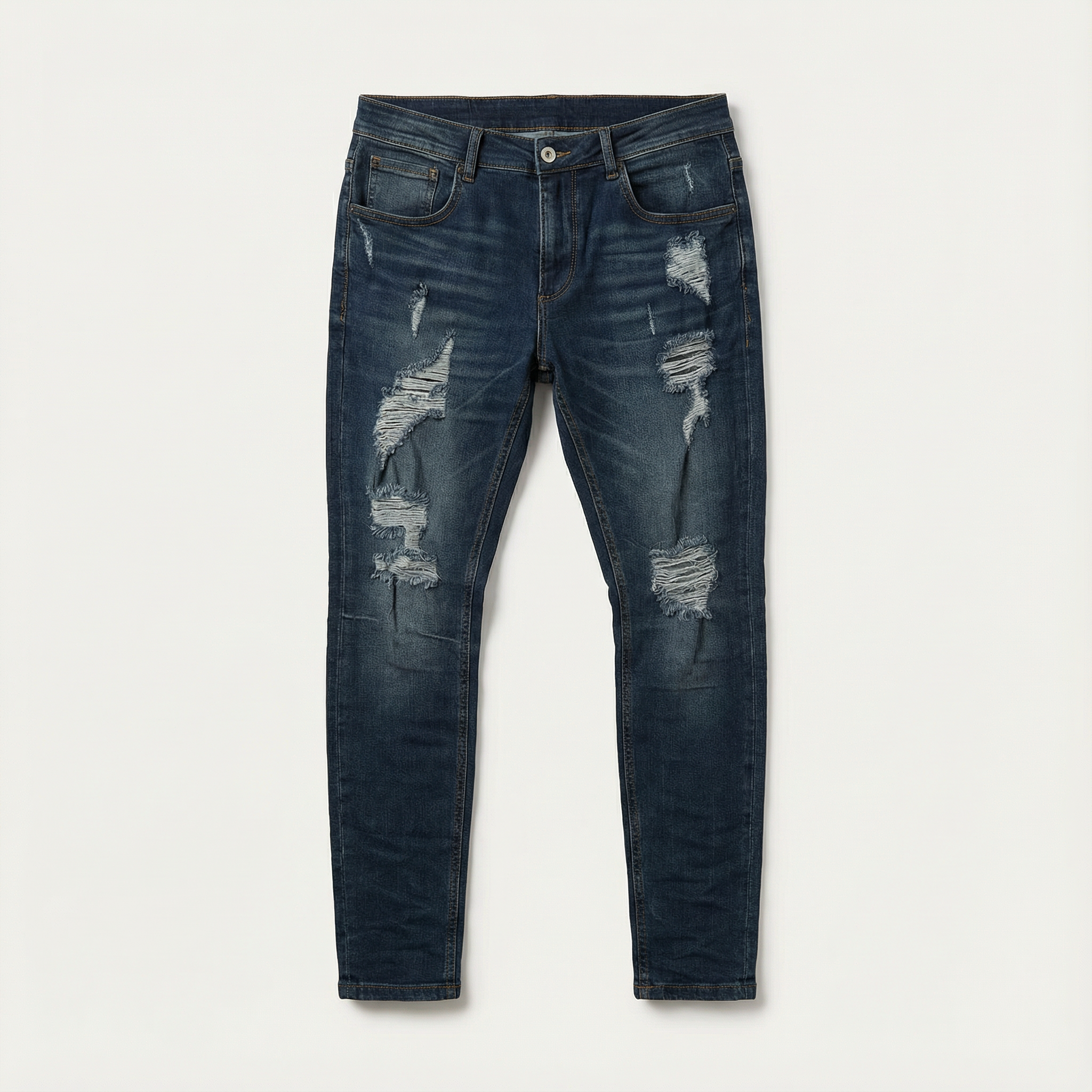 Men’s Slim-Fit Jeans – Distressed Design, Full-Length