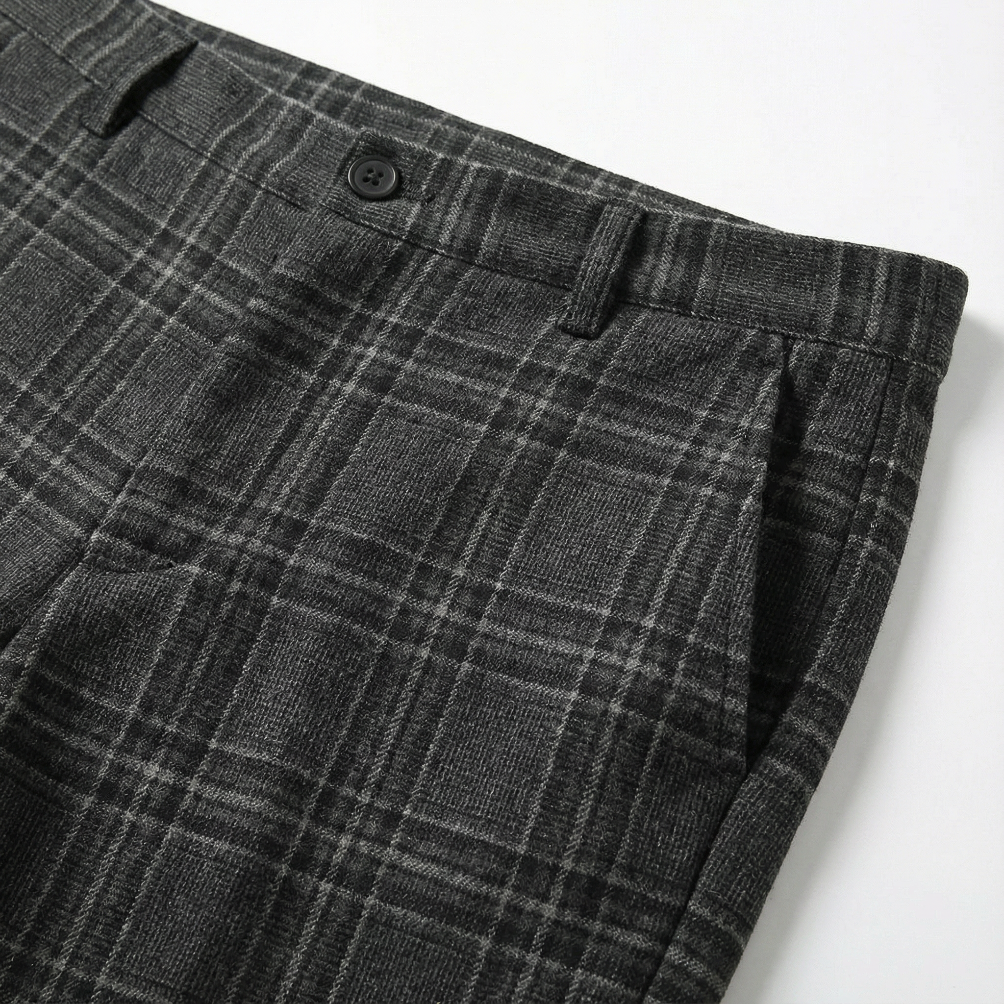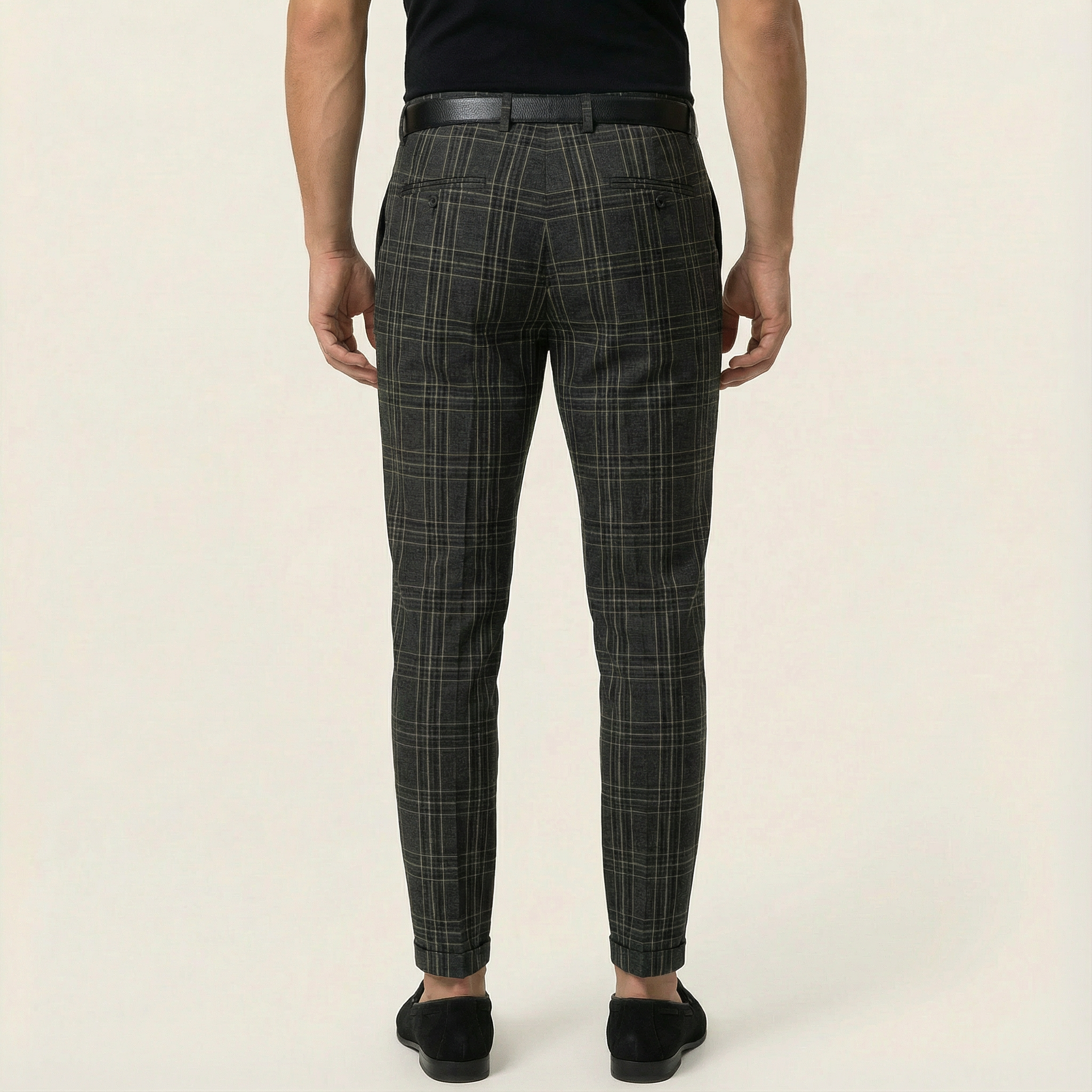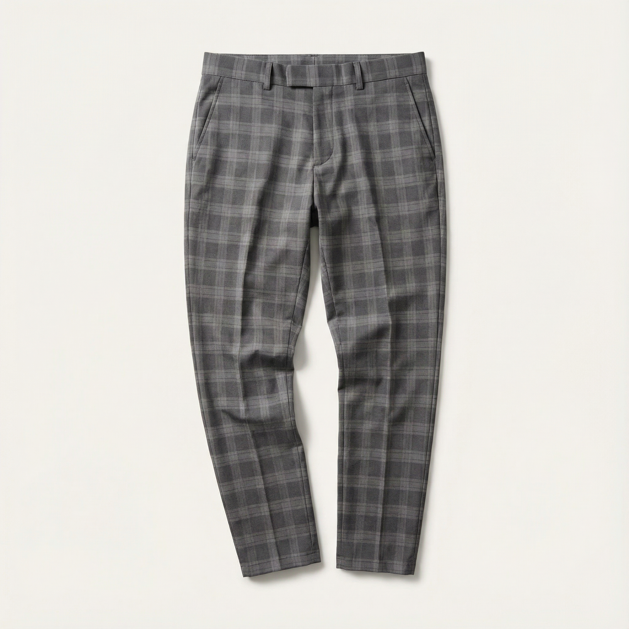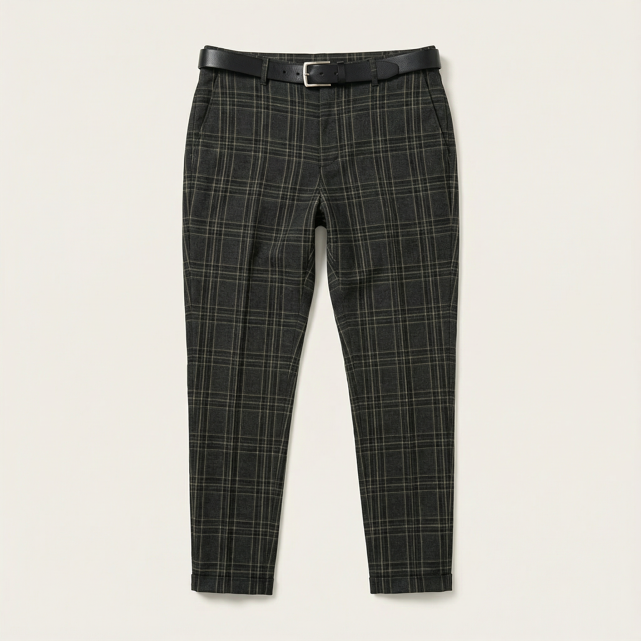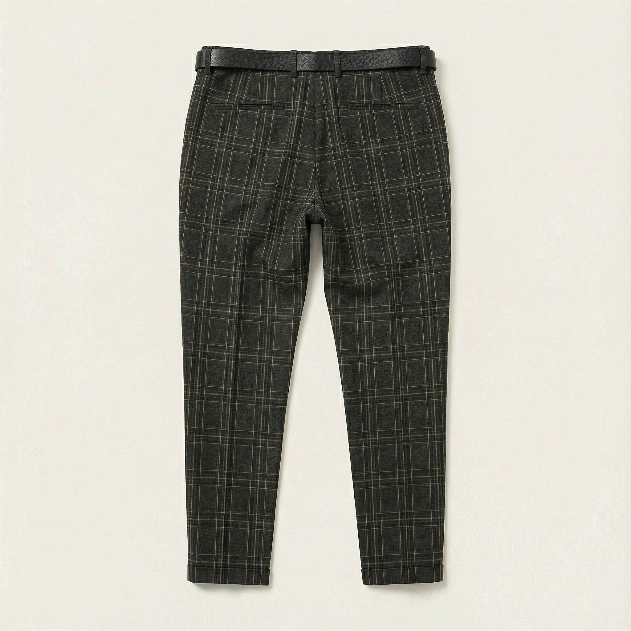 Men’s Slim-Fit Pants – Check Pattern, Ankle-Length Design