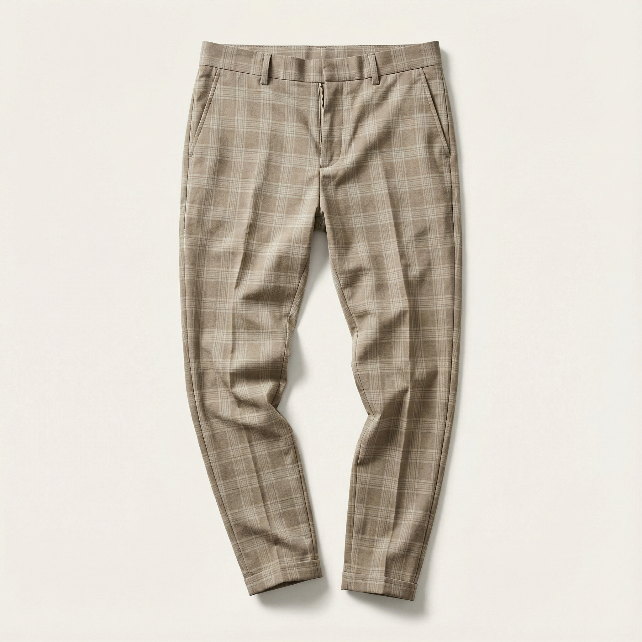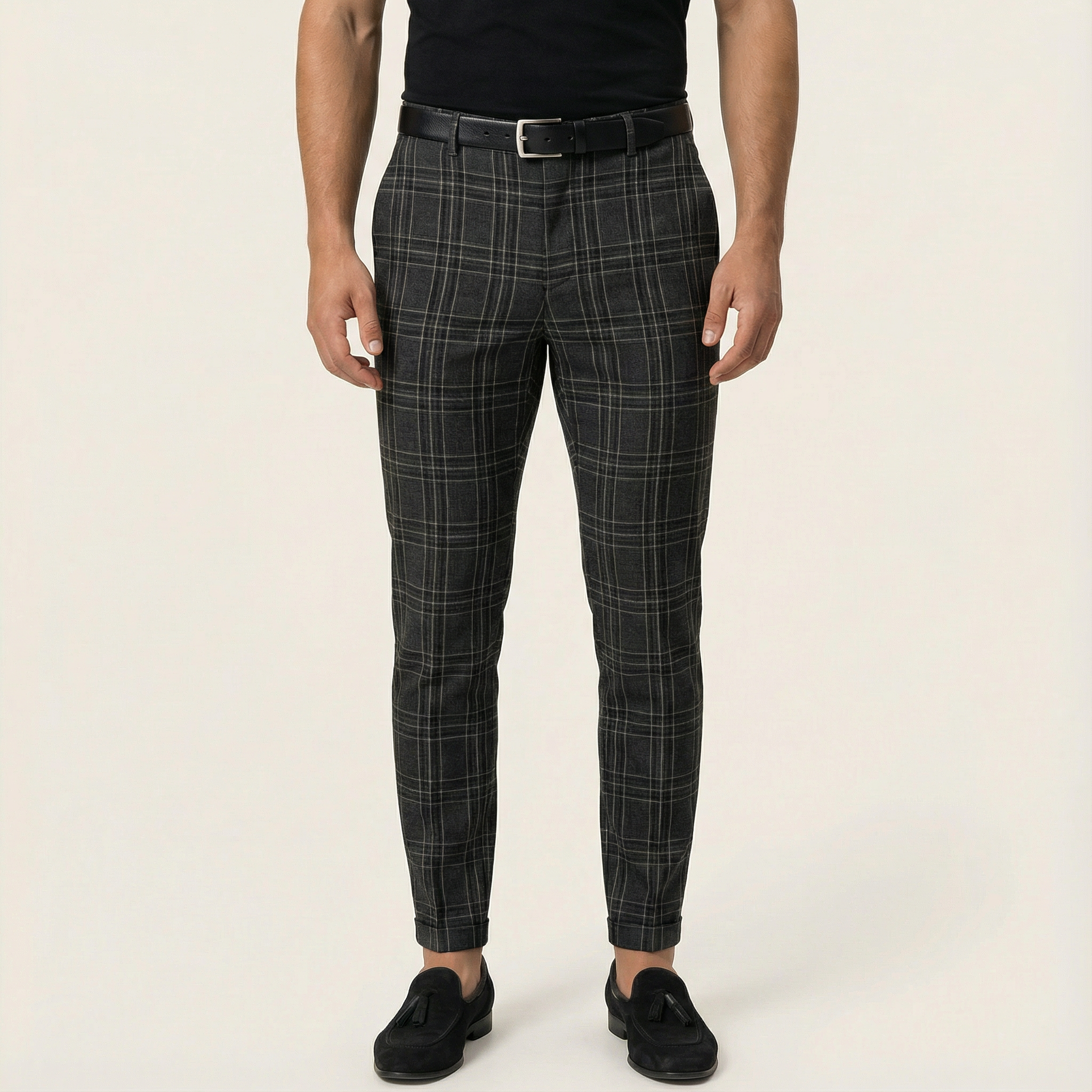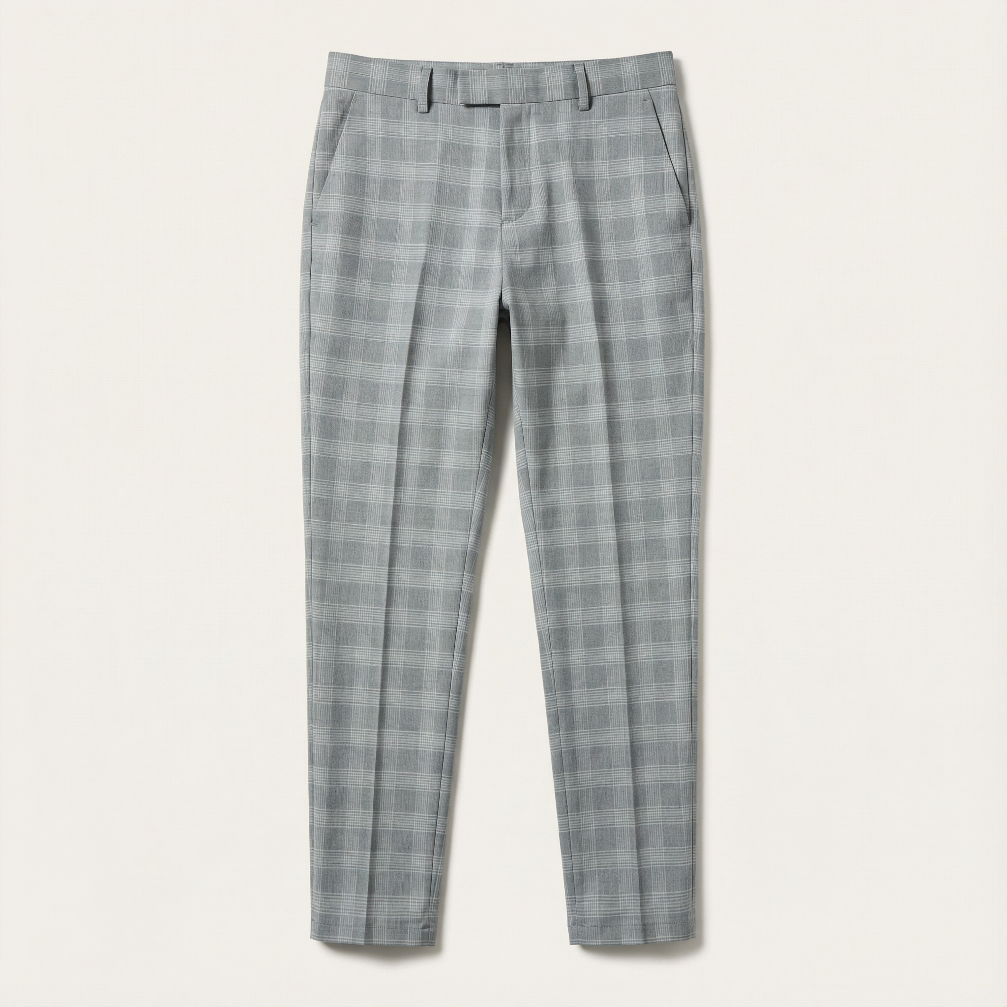 Men’s Slim-Fit Pants – Check Pattern, Ankle-Length Design