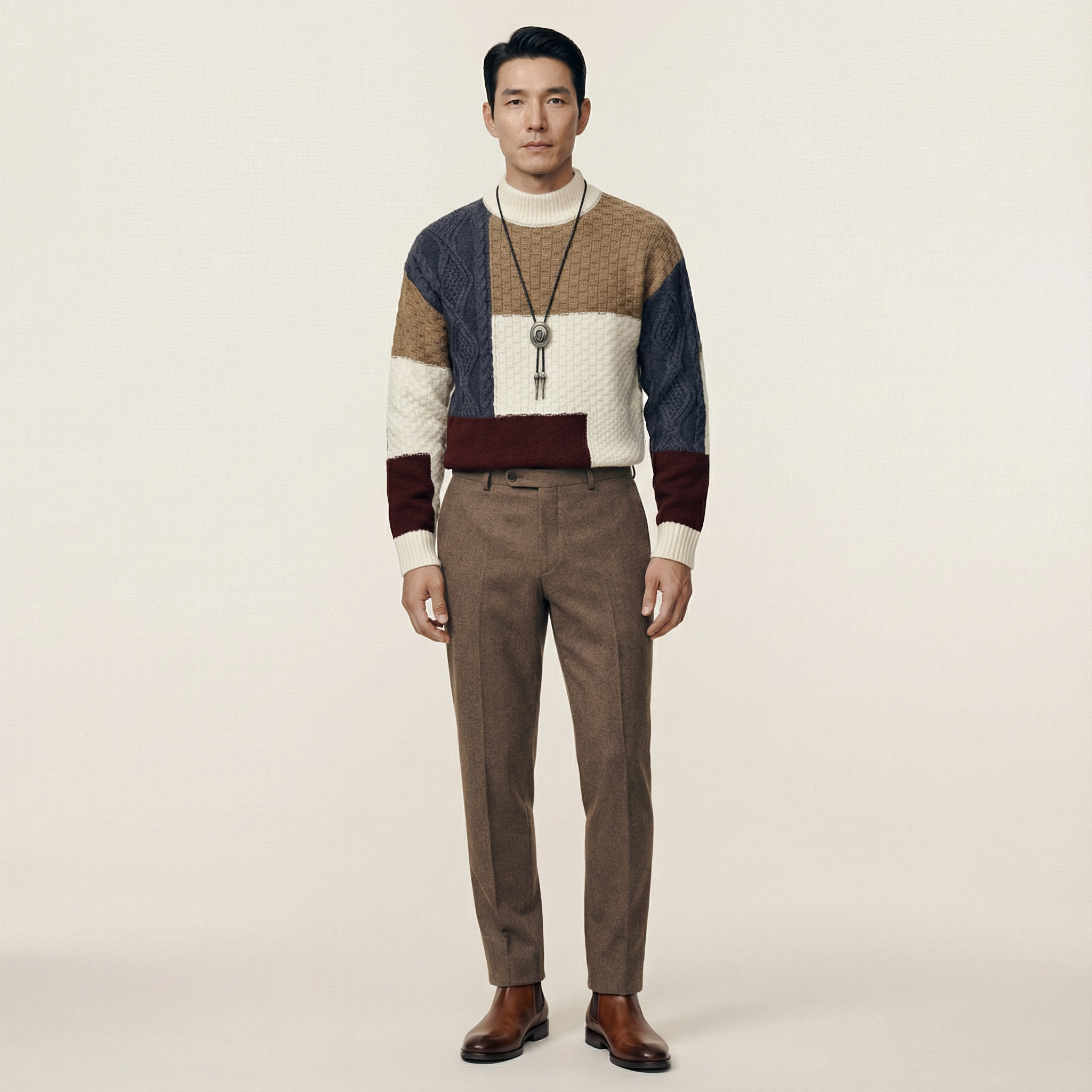 This men’s crewneck sweater is intended for everyday and cool-weather wear. It features a color-block knit design suitable for casual settings.
