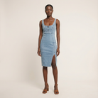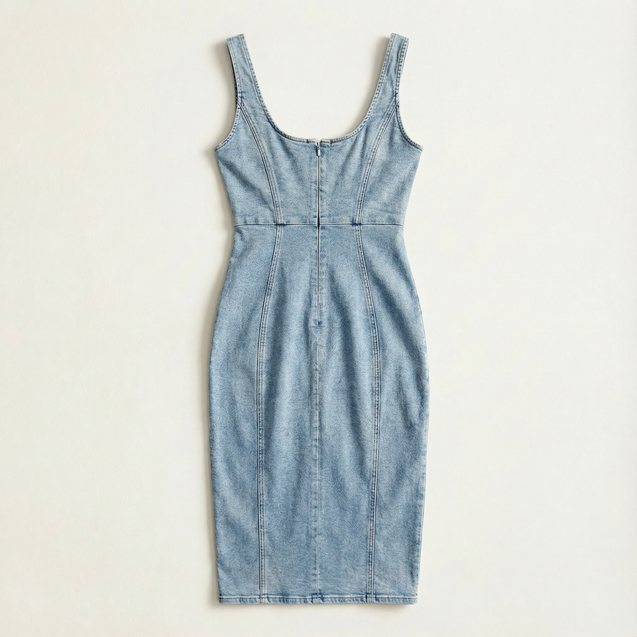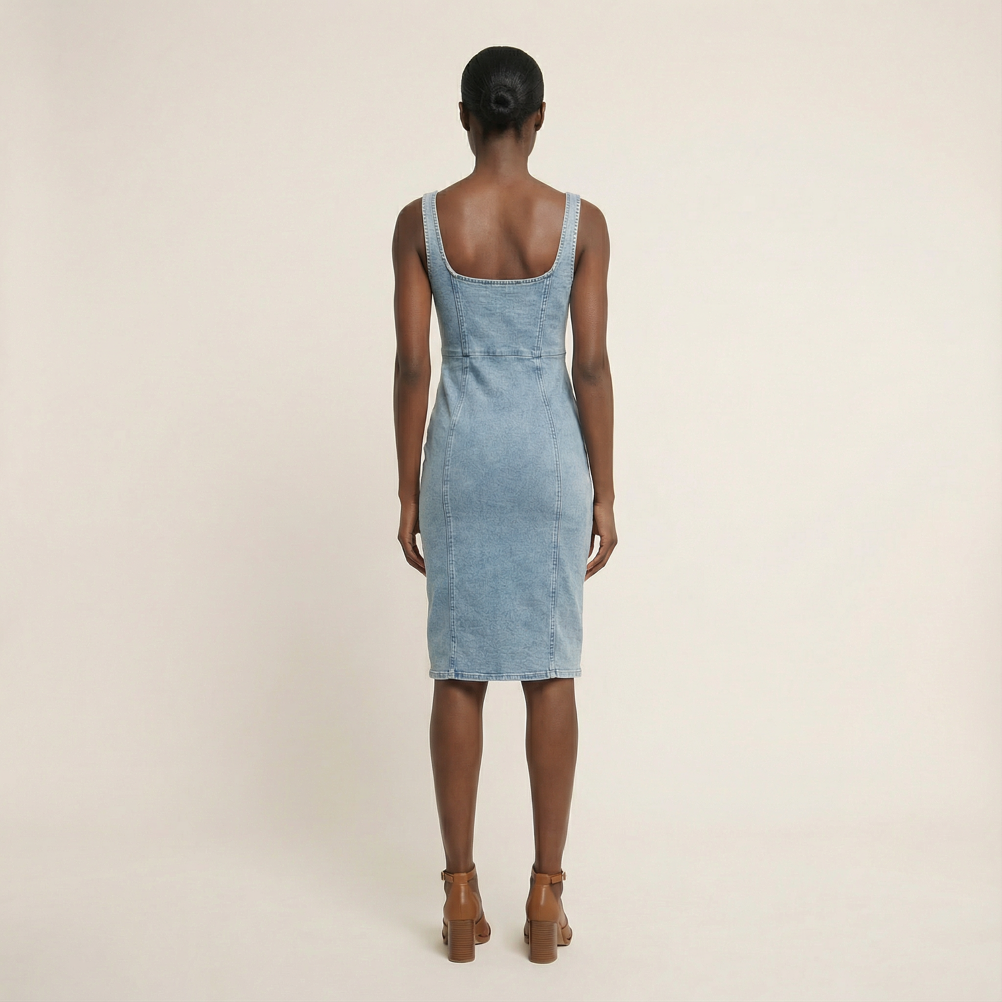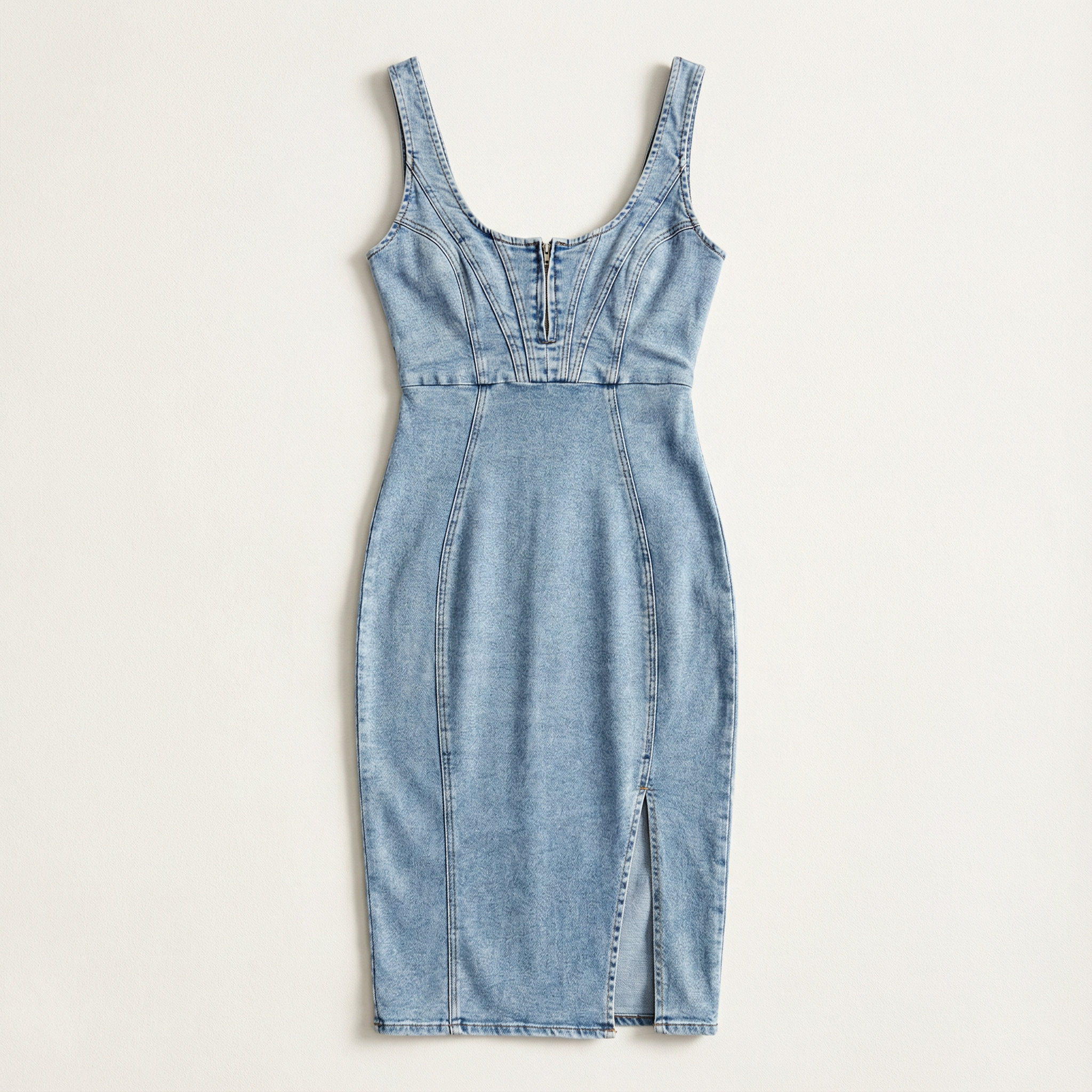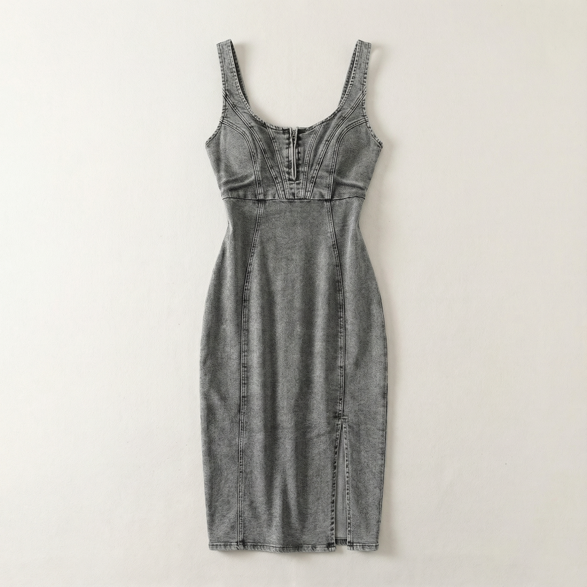 This women’s dress is designed for everyday or casual wear. It features adjustable shoulder straps and a fitted silhouette with a side slit.