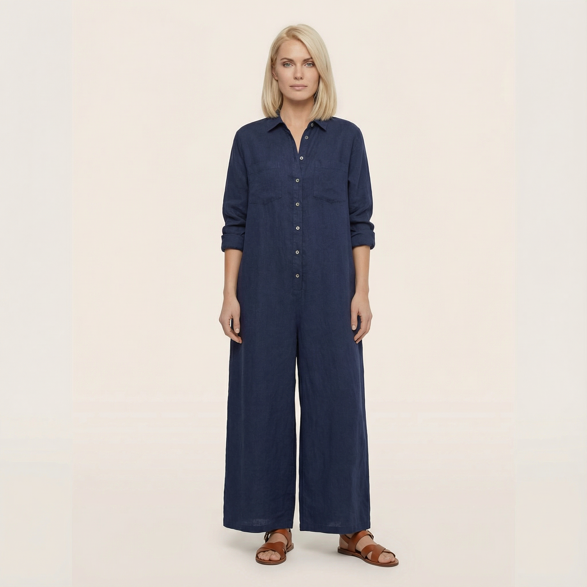 This women’s jumpsuit is a one-piece garment designed for everyday and casual wear. It is suitable for warm-weather use.