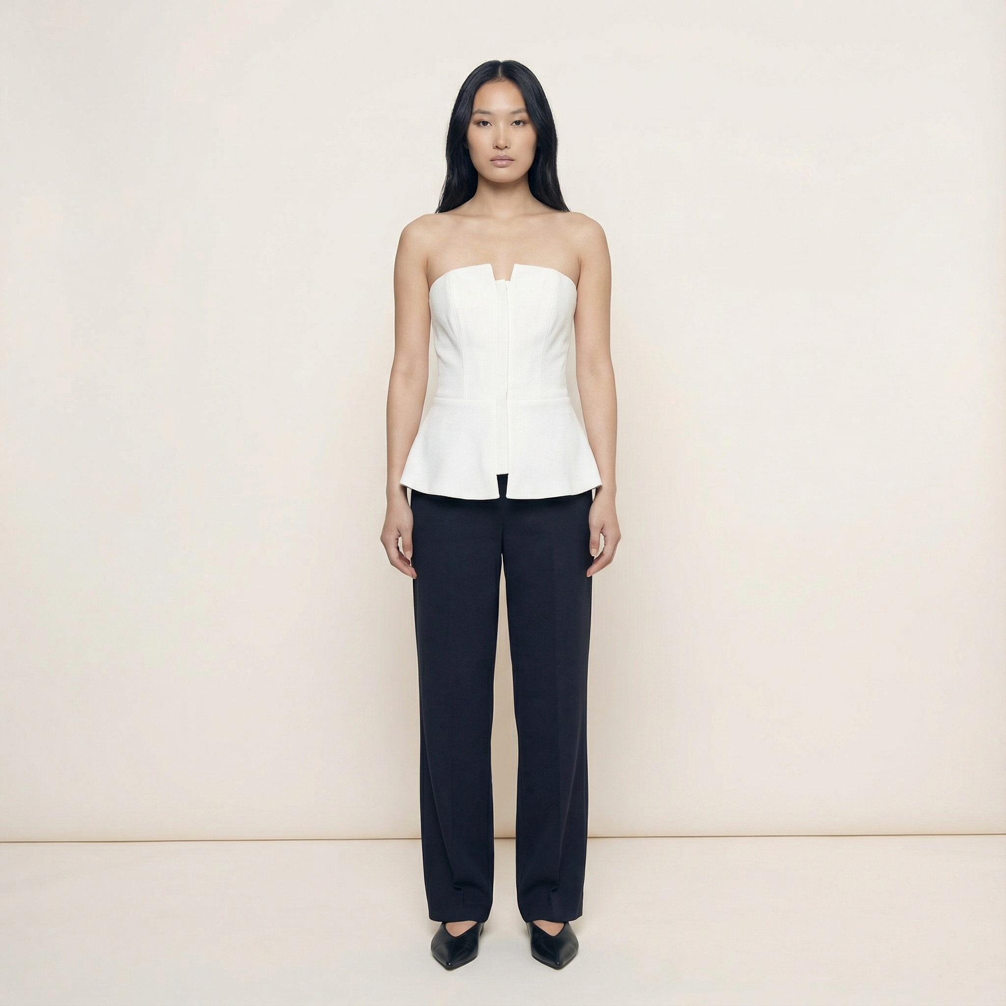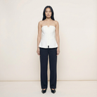 Women’s strapless top designed with structured paneling for a clean, defined shape.