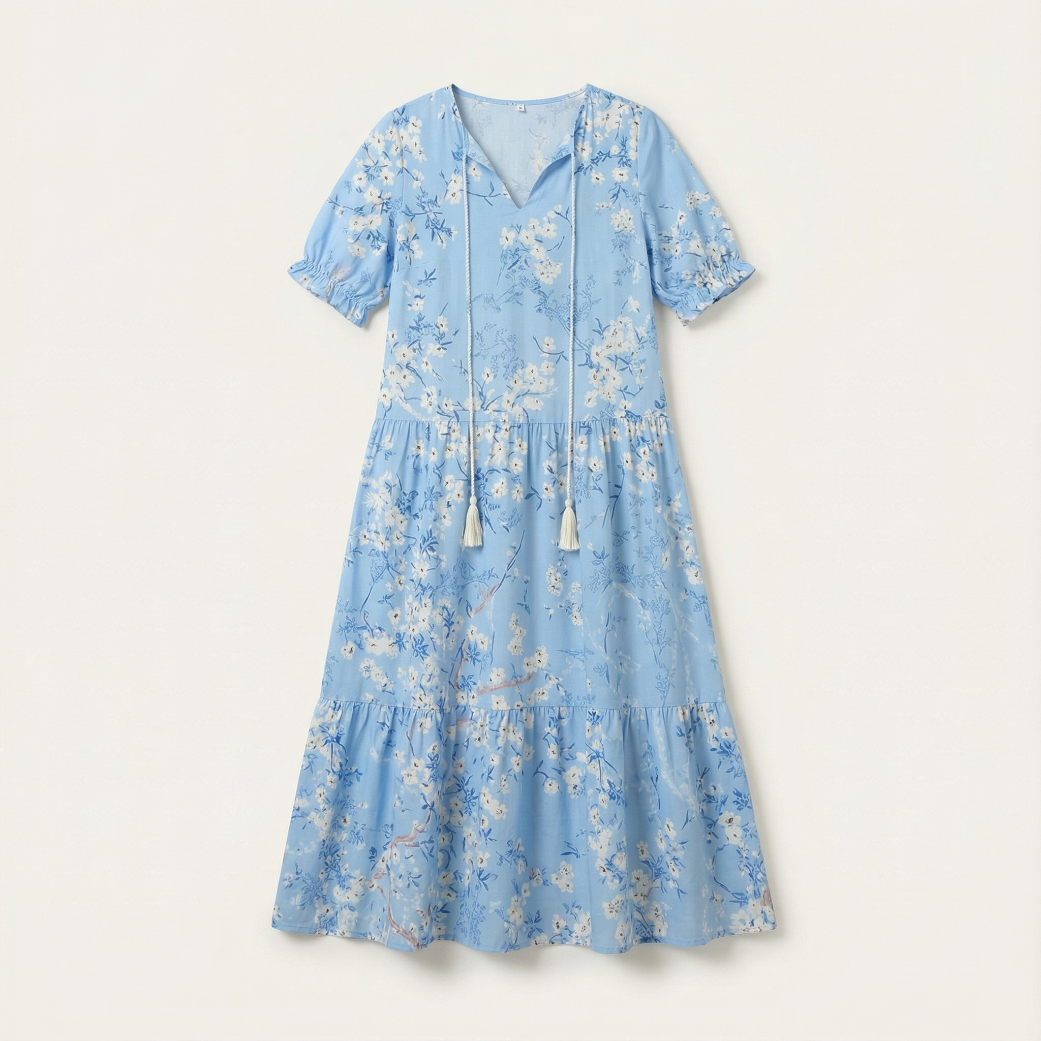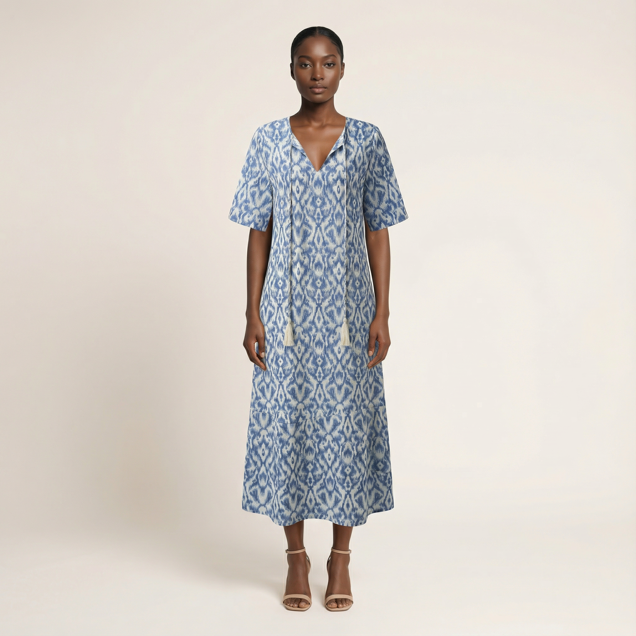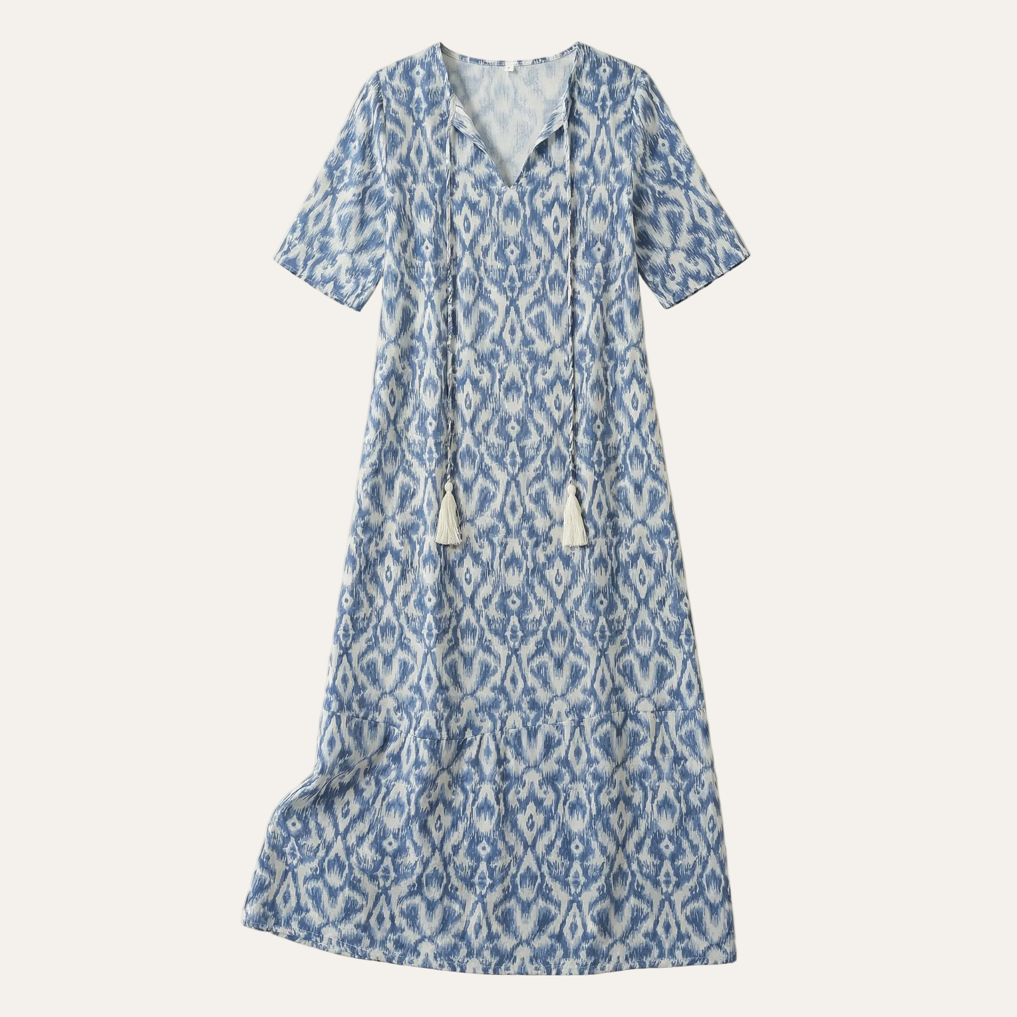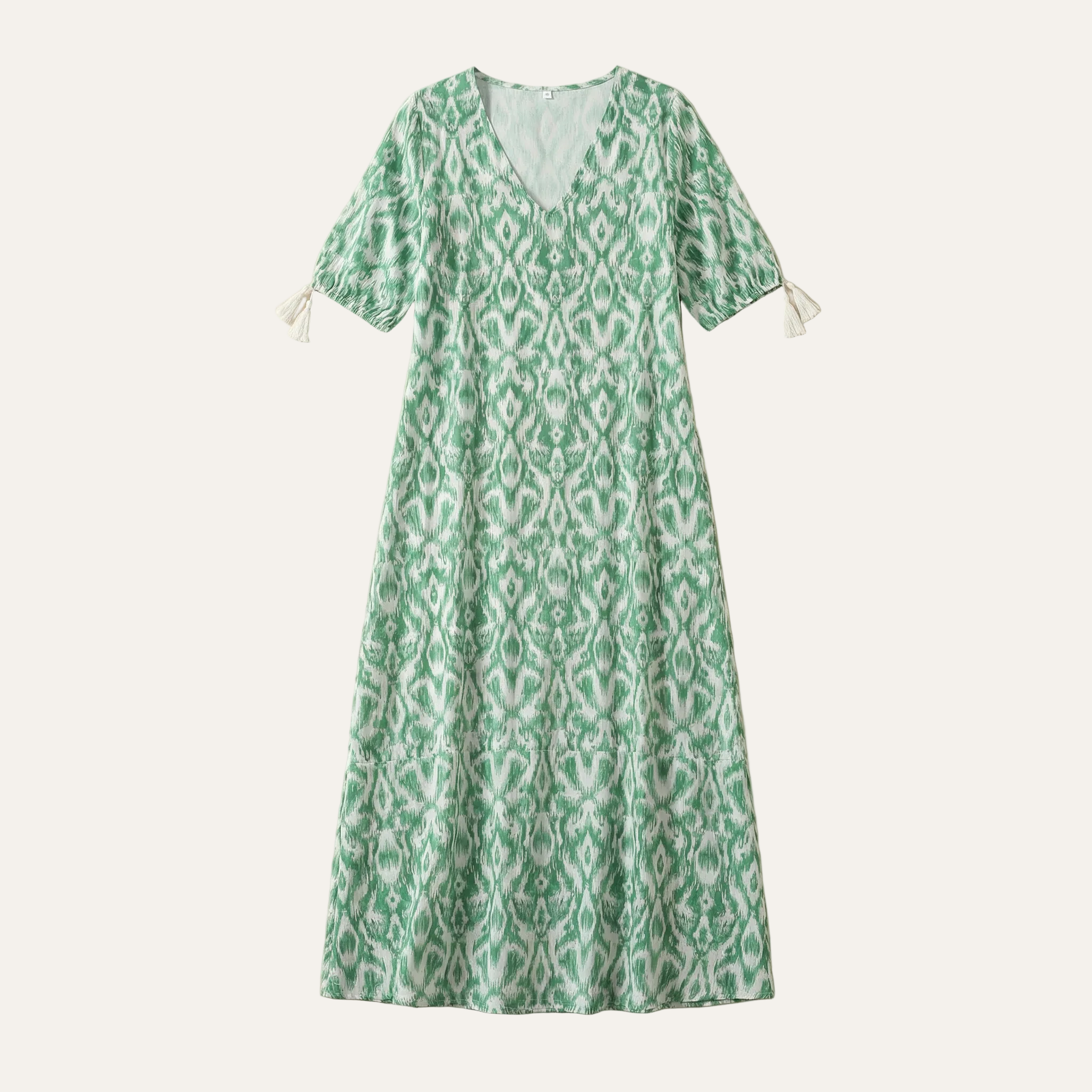 Women’s Boho Maxi Dress – V-Neck with Tassel Detail