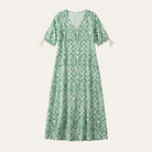 Women’s maxi dress designed for casual and warm-weather wear with a boho-inspired pattern.