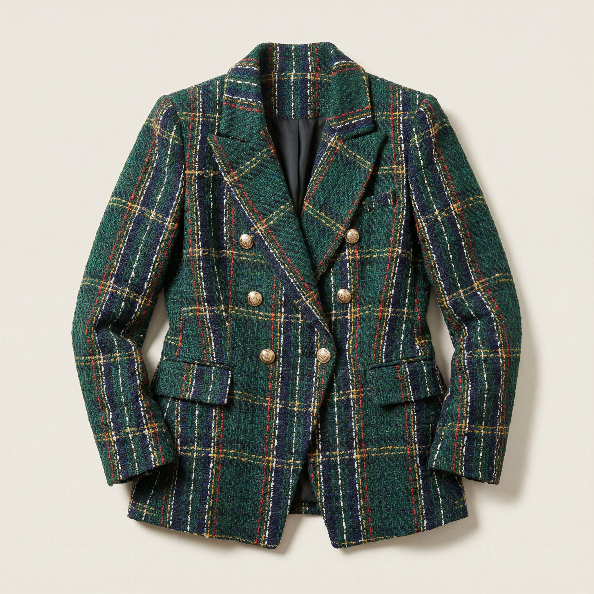 Women’s Blazer – Button-Front Closure, Textured Pattern