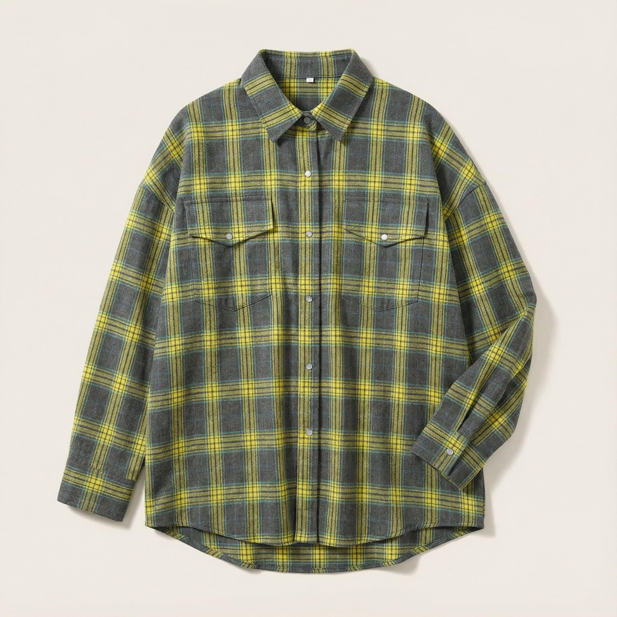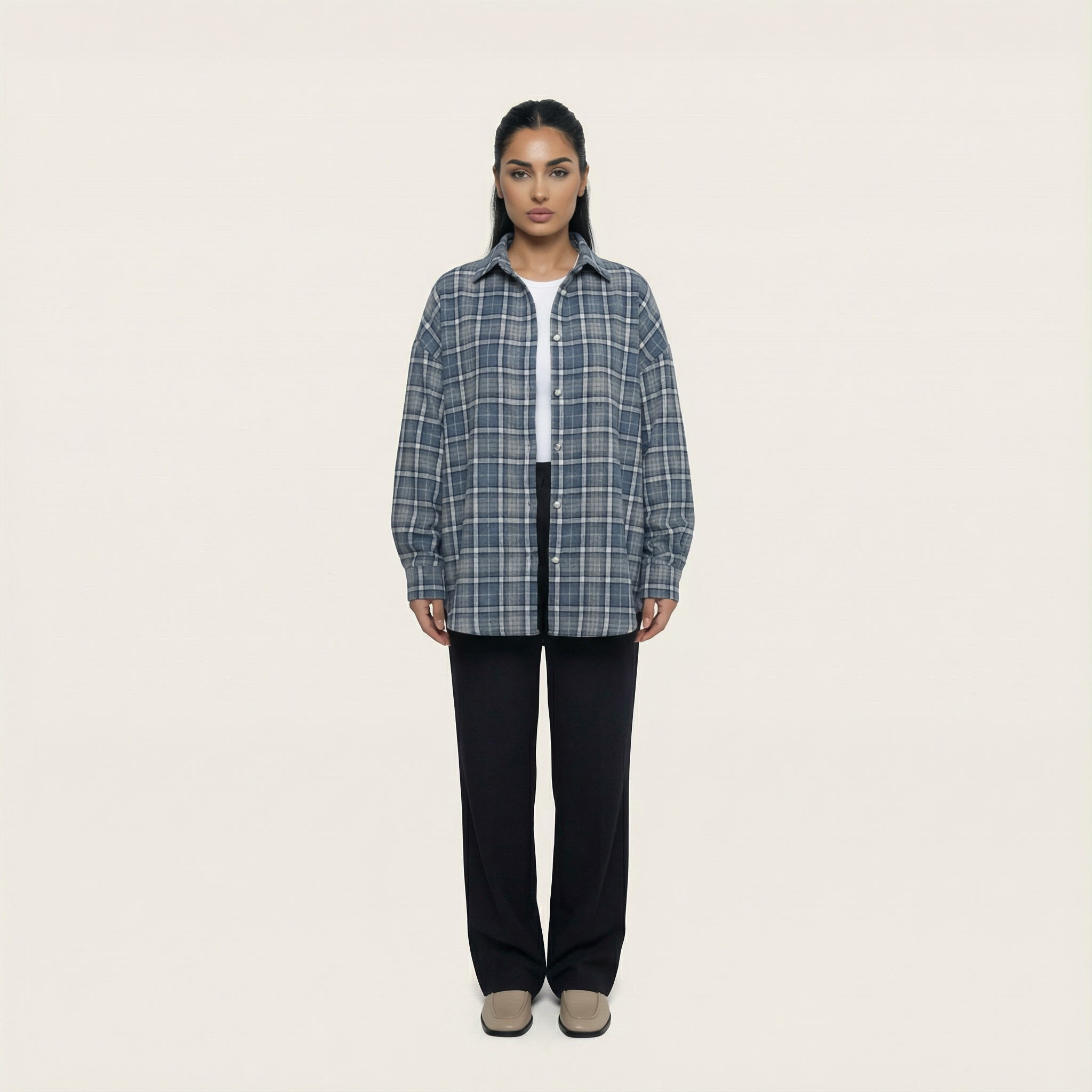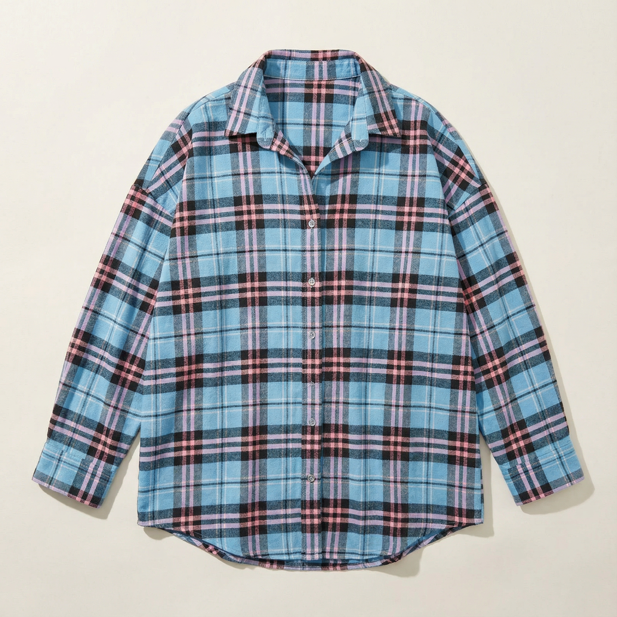 Women’s Oversized Plaid Button-Up Shirt – Relaxed Fit Casual Style