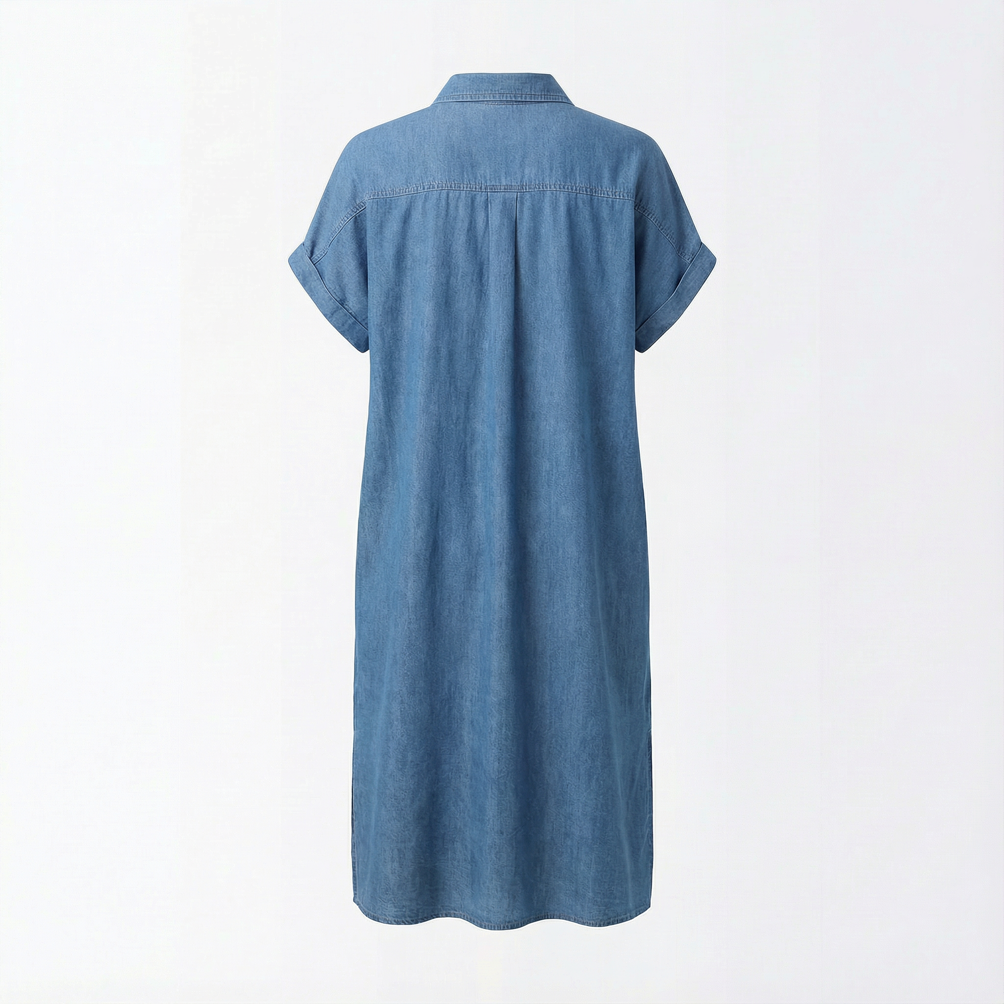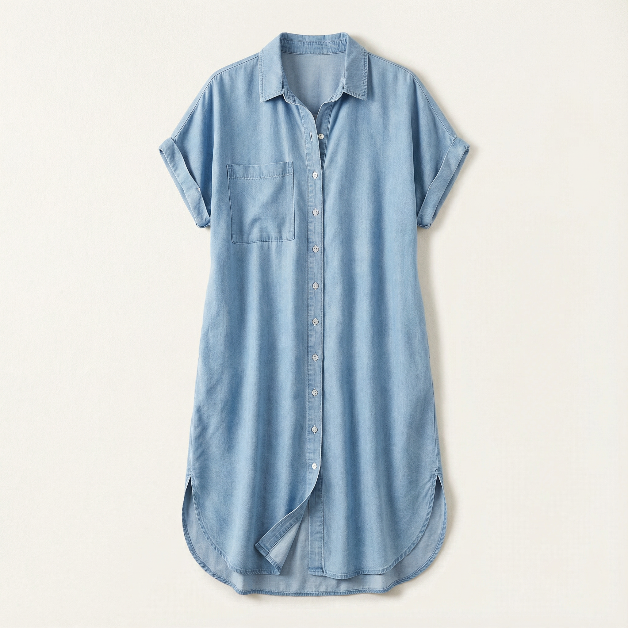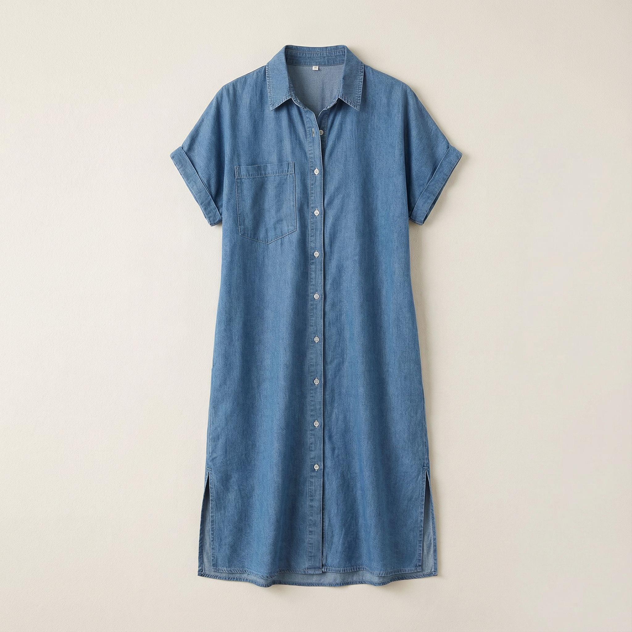 Women’s Denim Shirt Dress – Button-Front, Midi Length