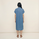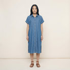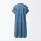 This women’s denim shirt dress features a button-front closure and a relaxed midi-length silhouette. Designed for everyday or casual wear, it offers a versatile look that can be styled on its own or layered with accessories.