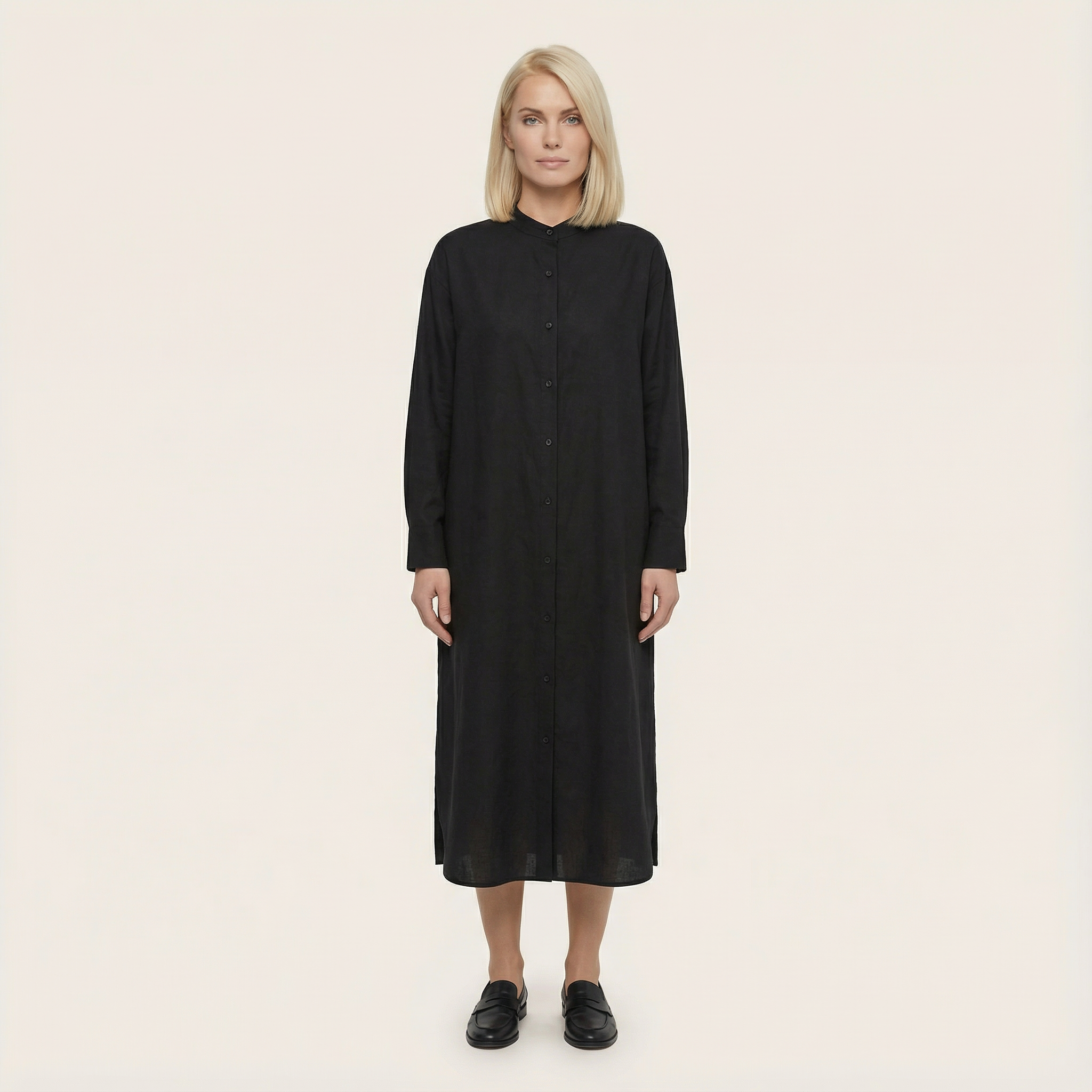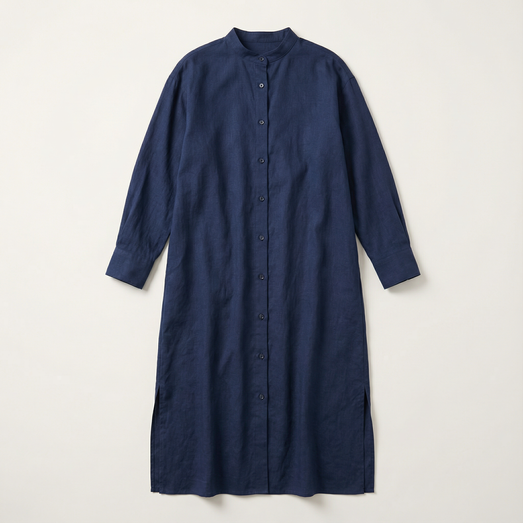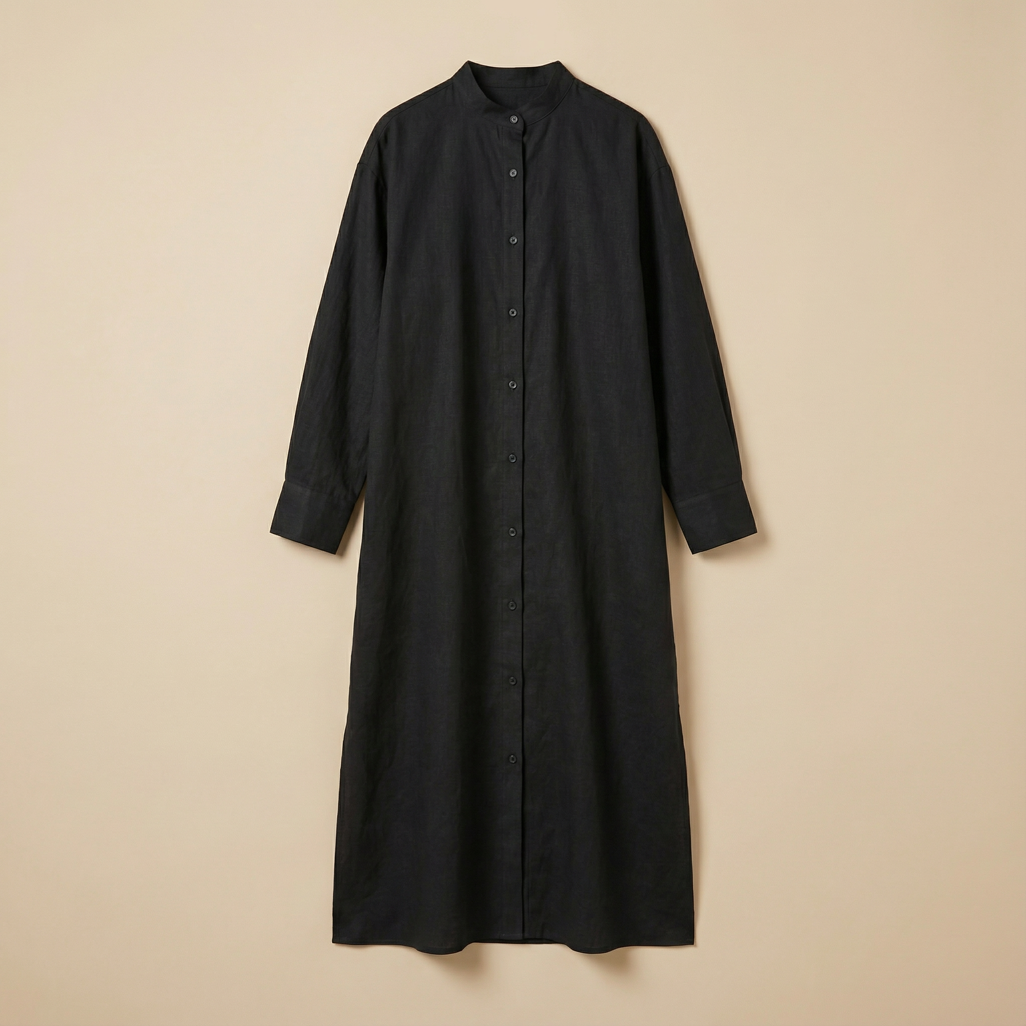 Women’s Long Button-Up Dress – Long Sleeves, Side Slits