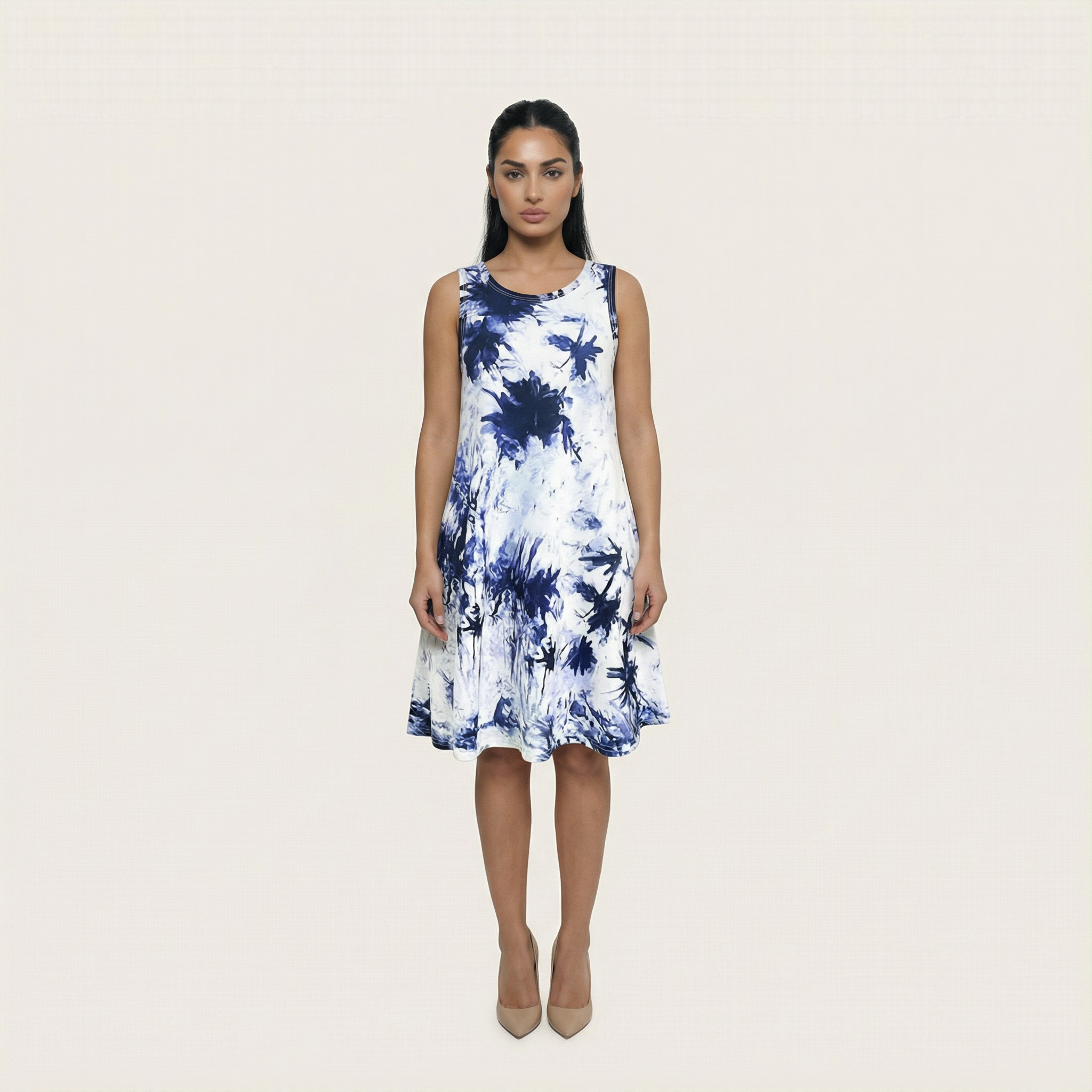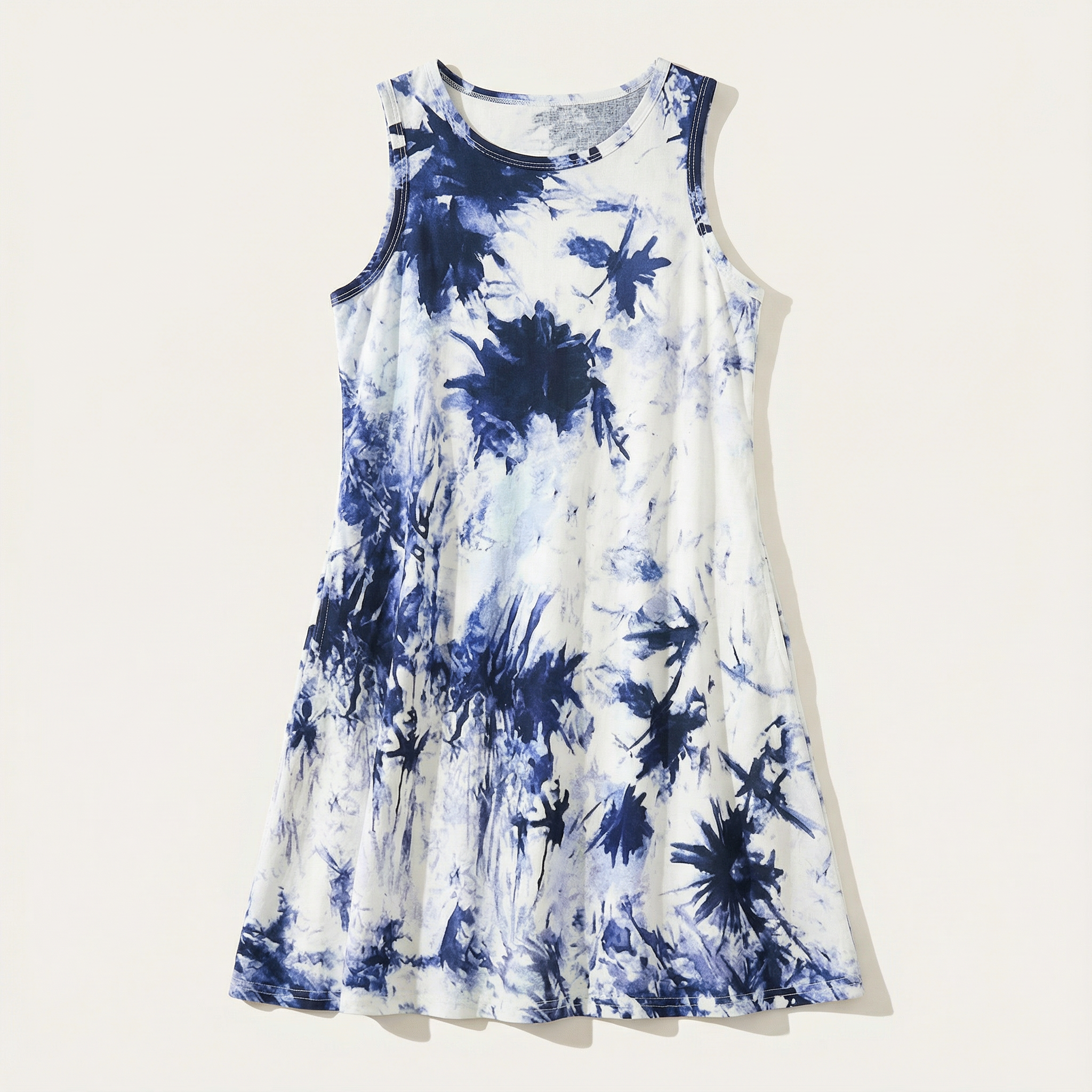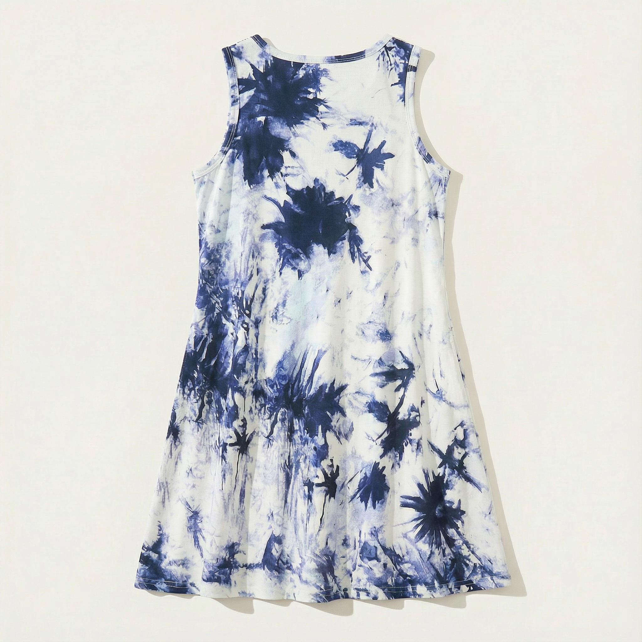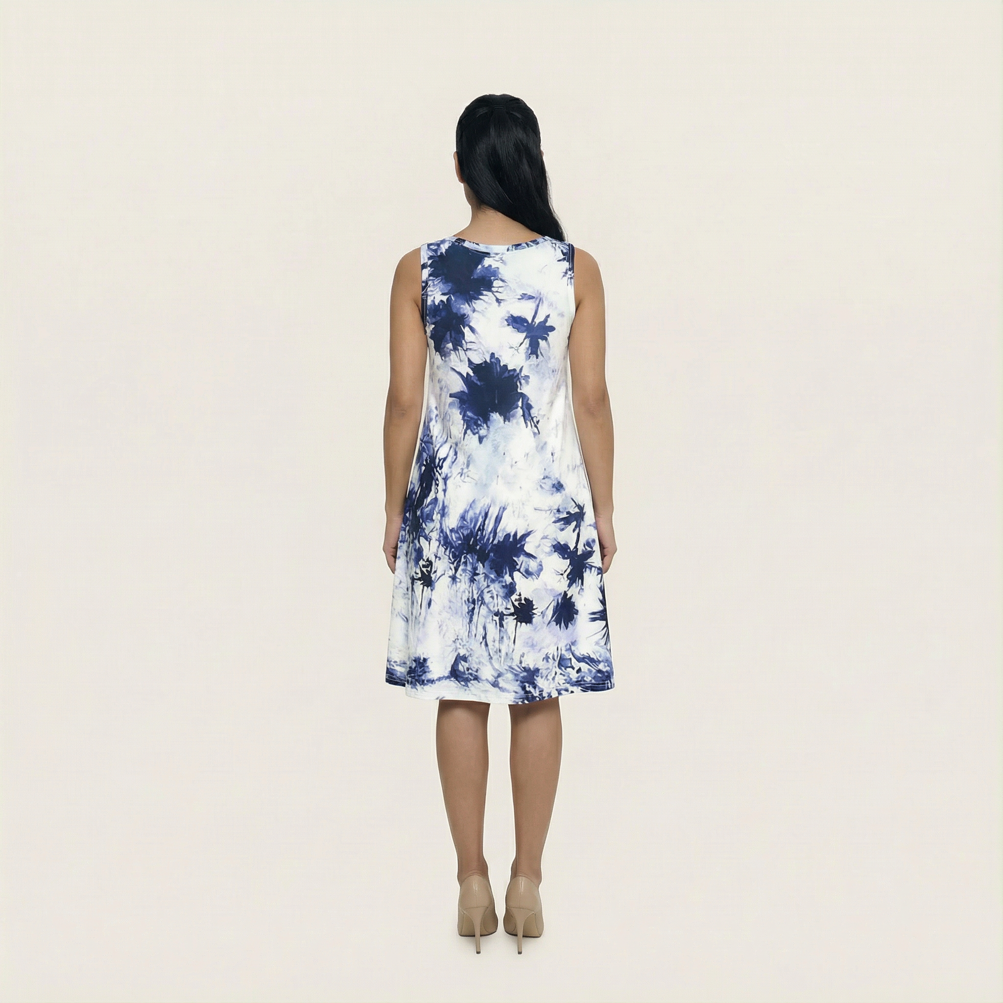 This casual dress is designed for everyday and warm-weather wear. It features a loose silhouette with a sleeveless design and printed patterns.