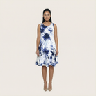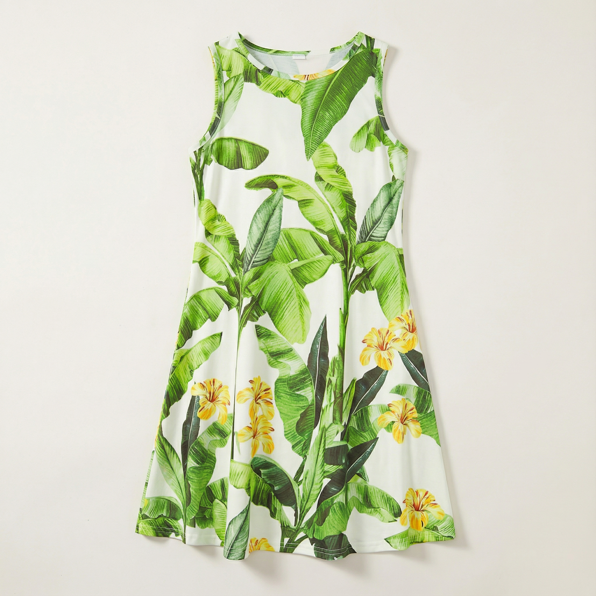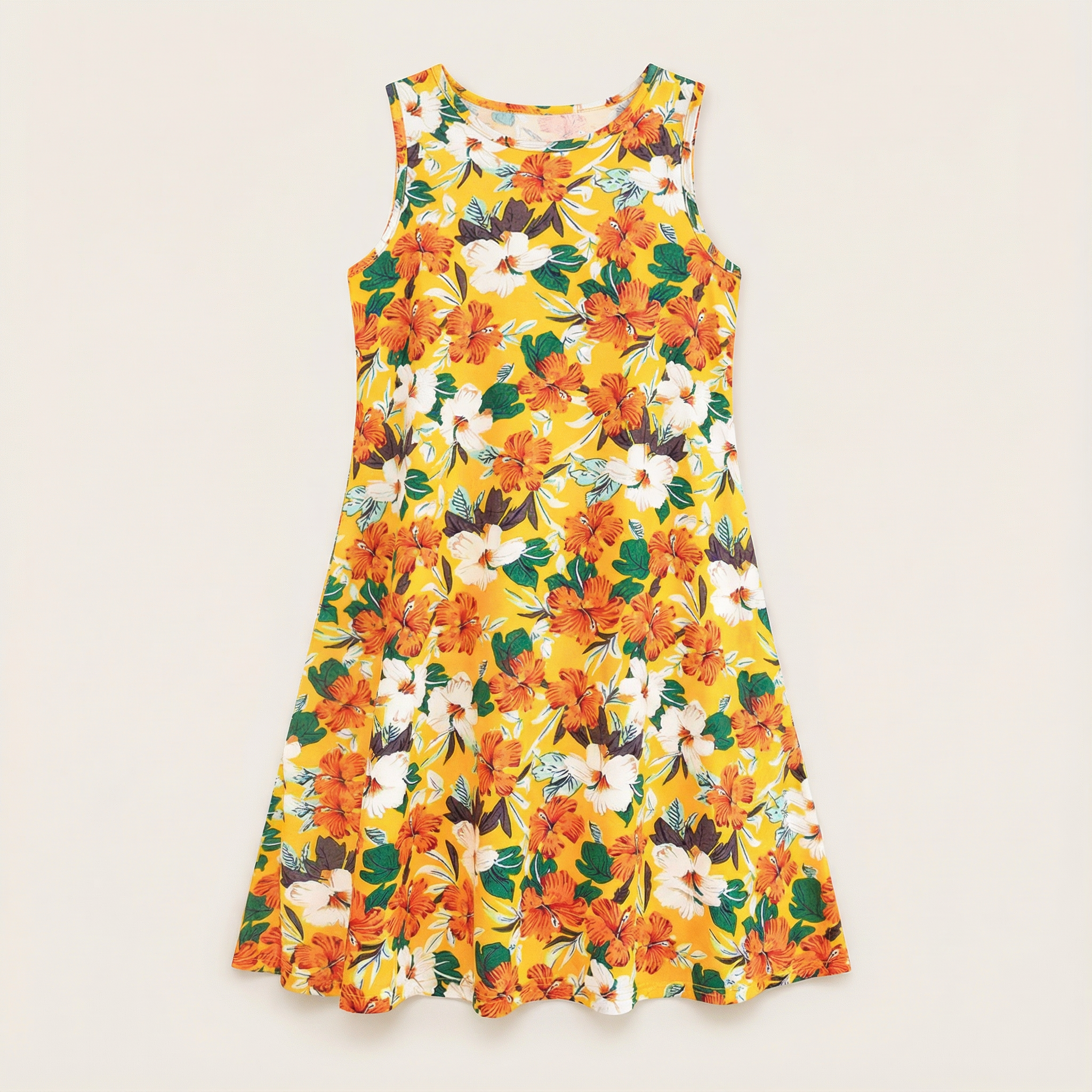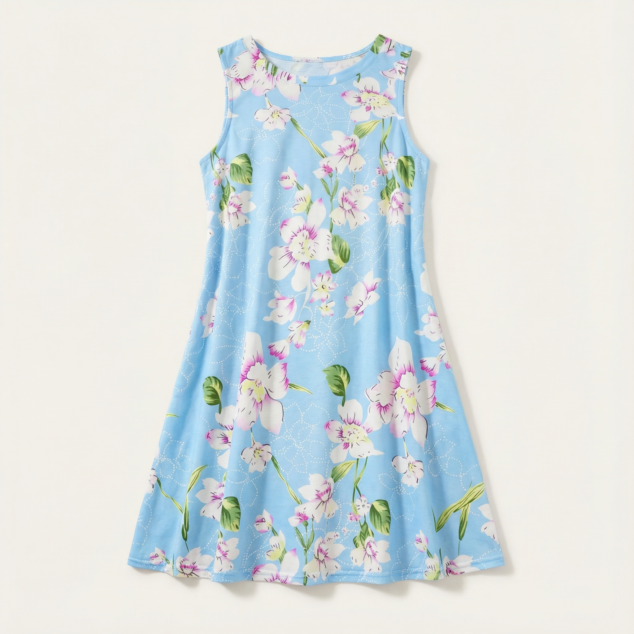 This casual dress is designed for everyday and warm-weather wear. It features a loose silhouette with a sleeveless design and printed patterns.