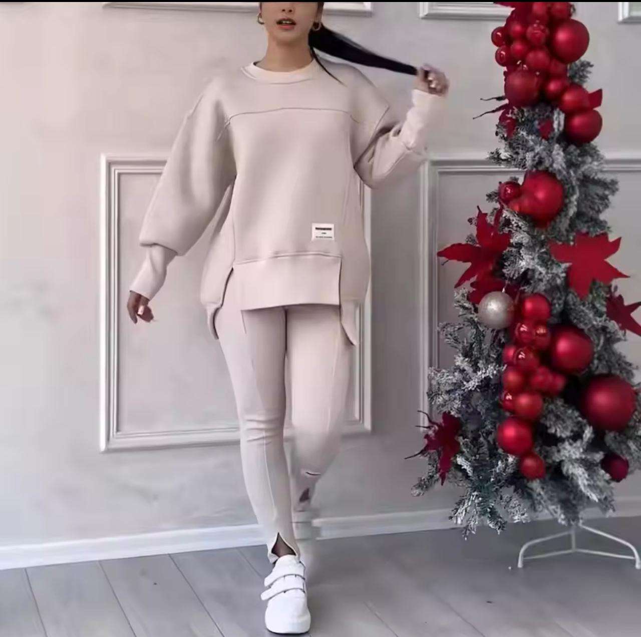 Women’s Two-Piece Lounge Set – Long-Sleeve Pullover and Slim-Fit Pants