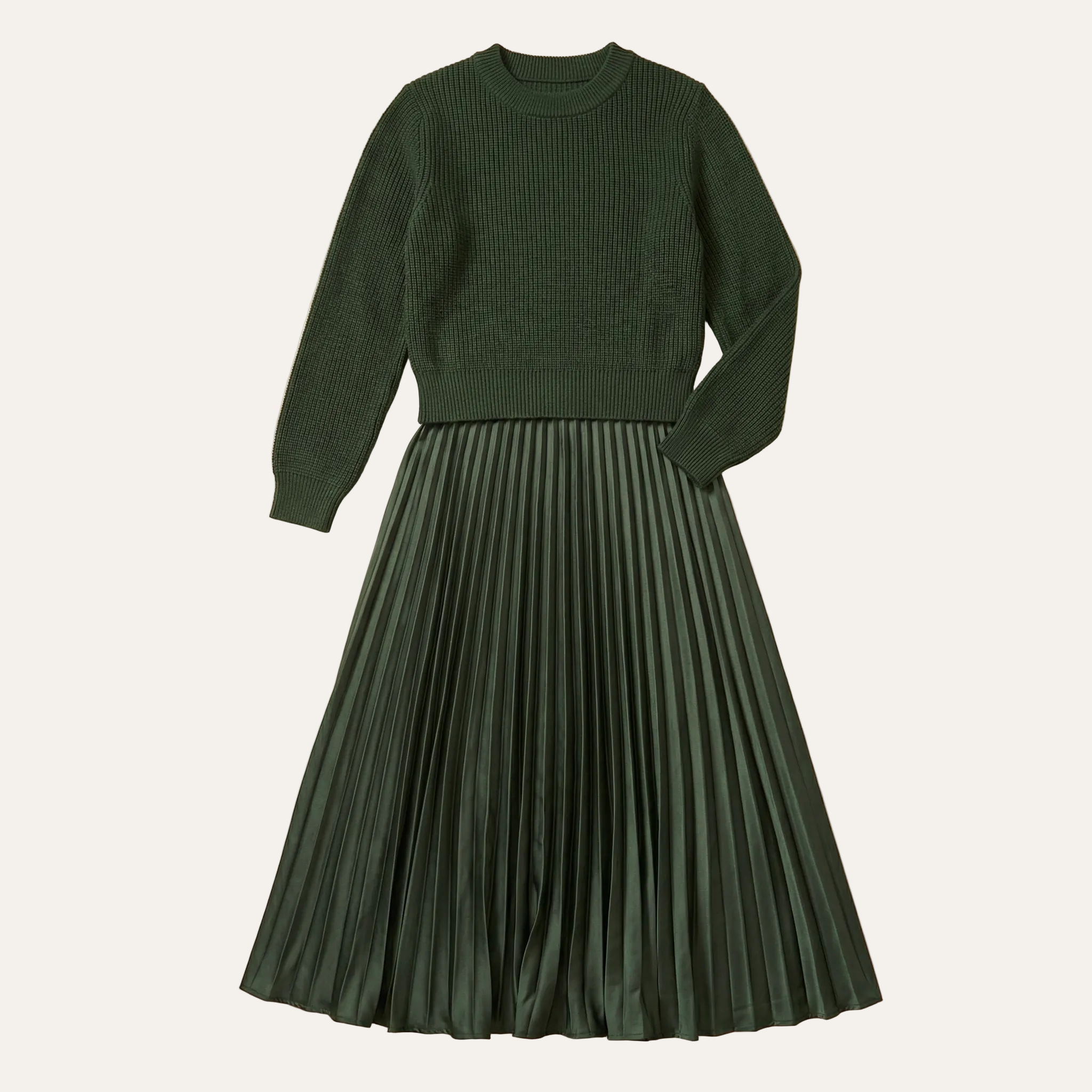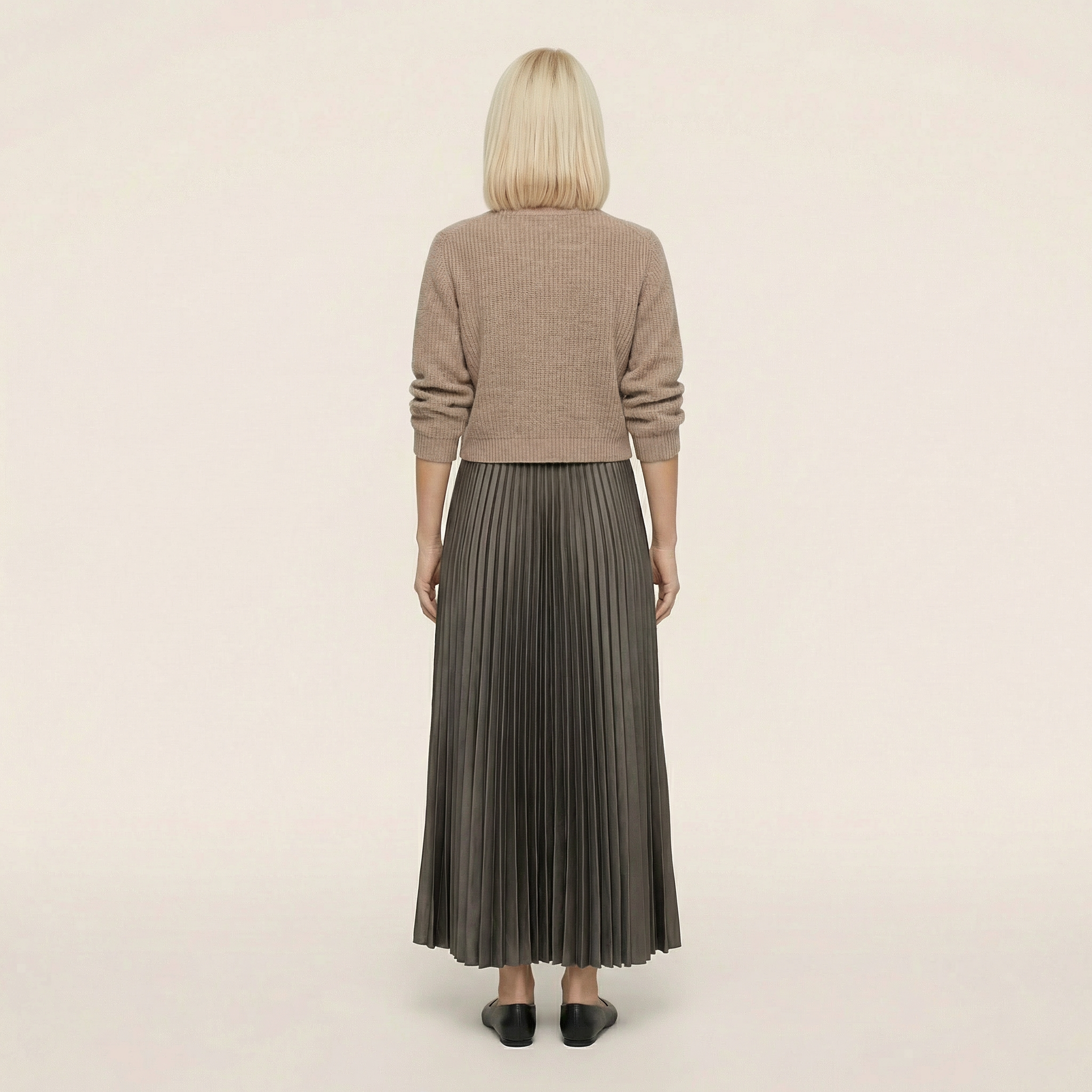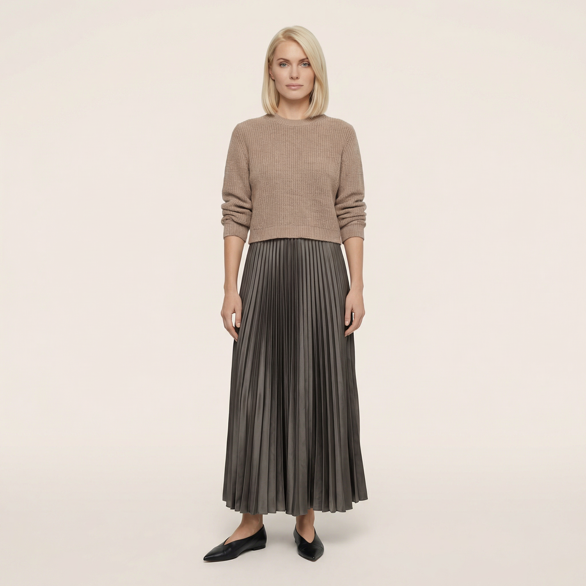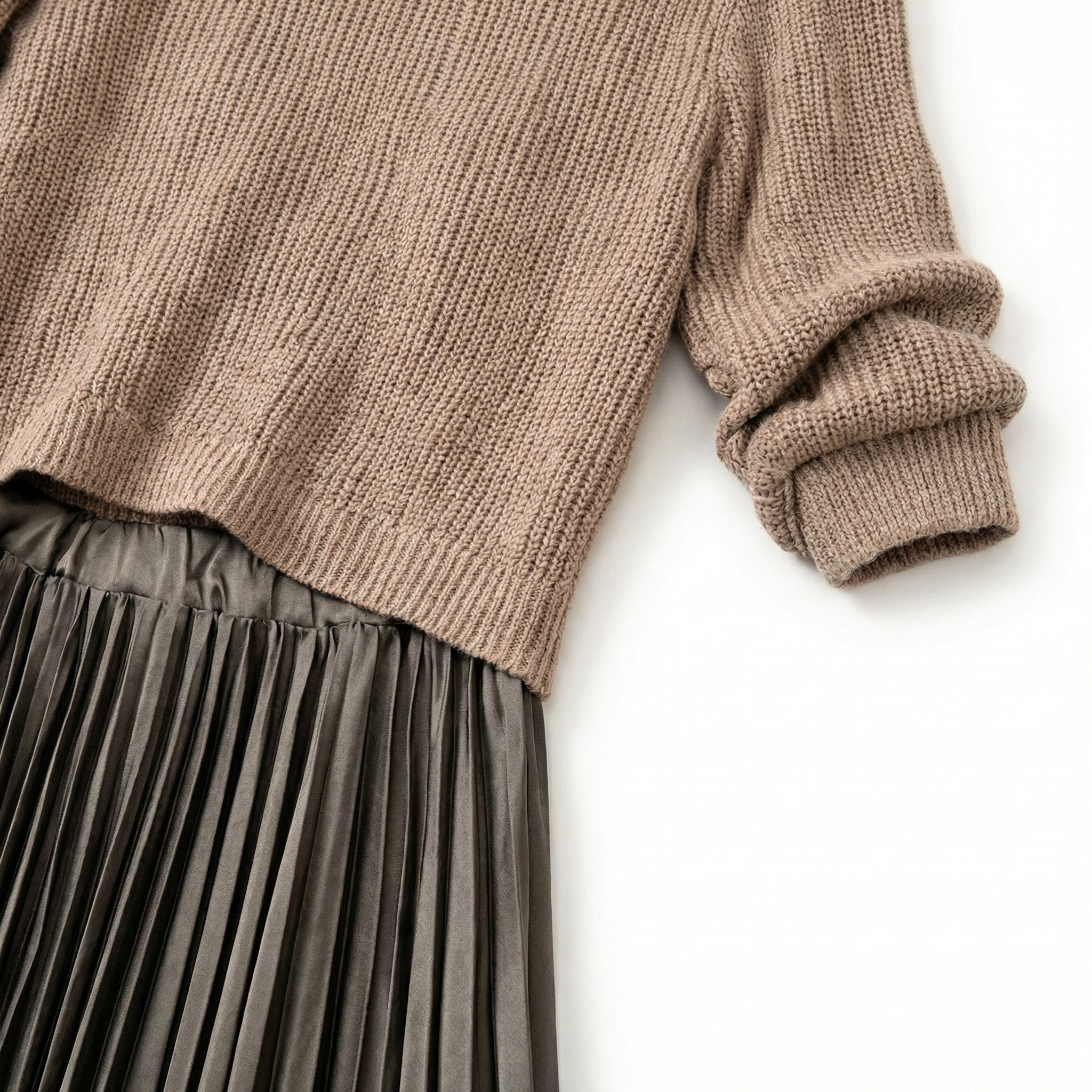 Women’s Two-Piece Set – Long-Sleeve Knit Top and Pleated Midi Skirt
