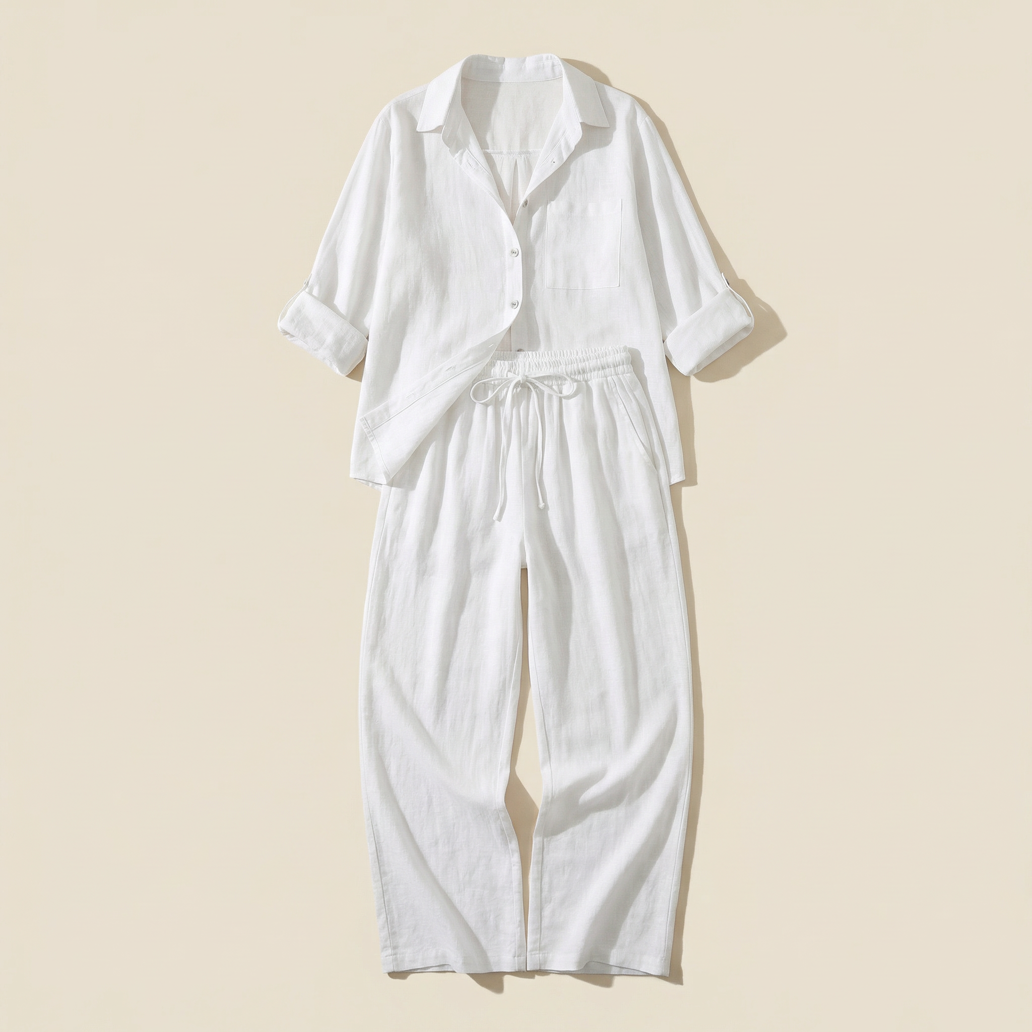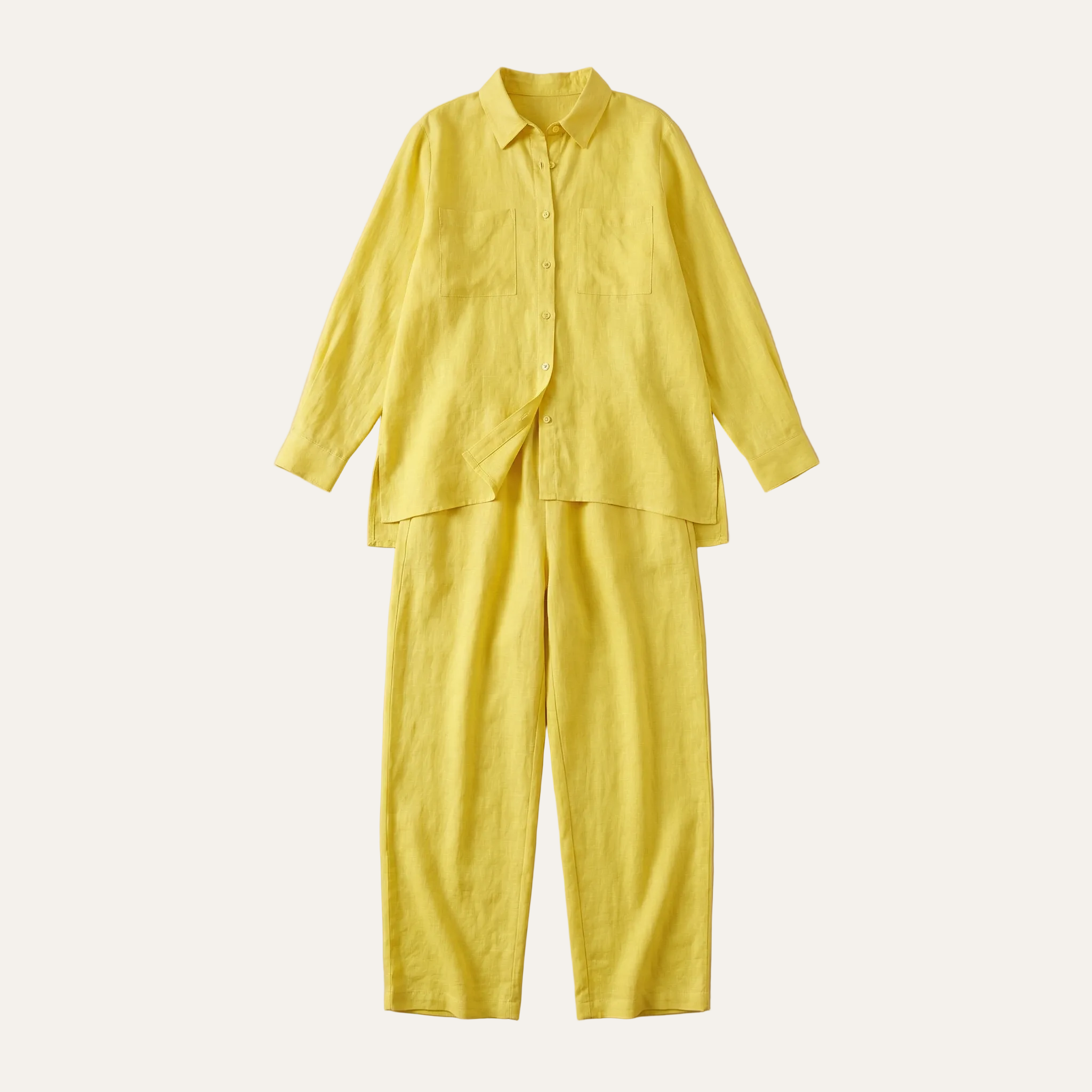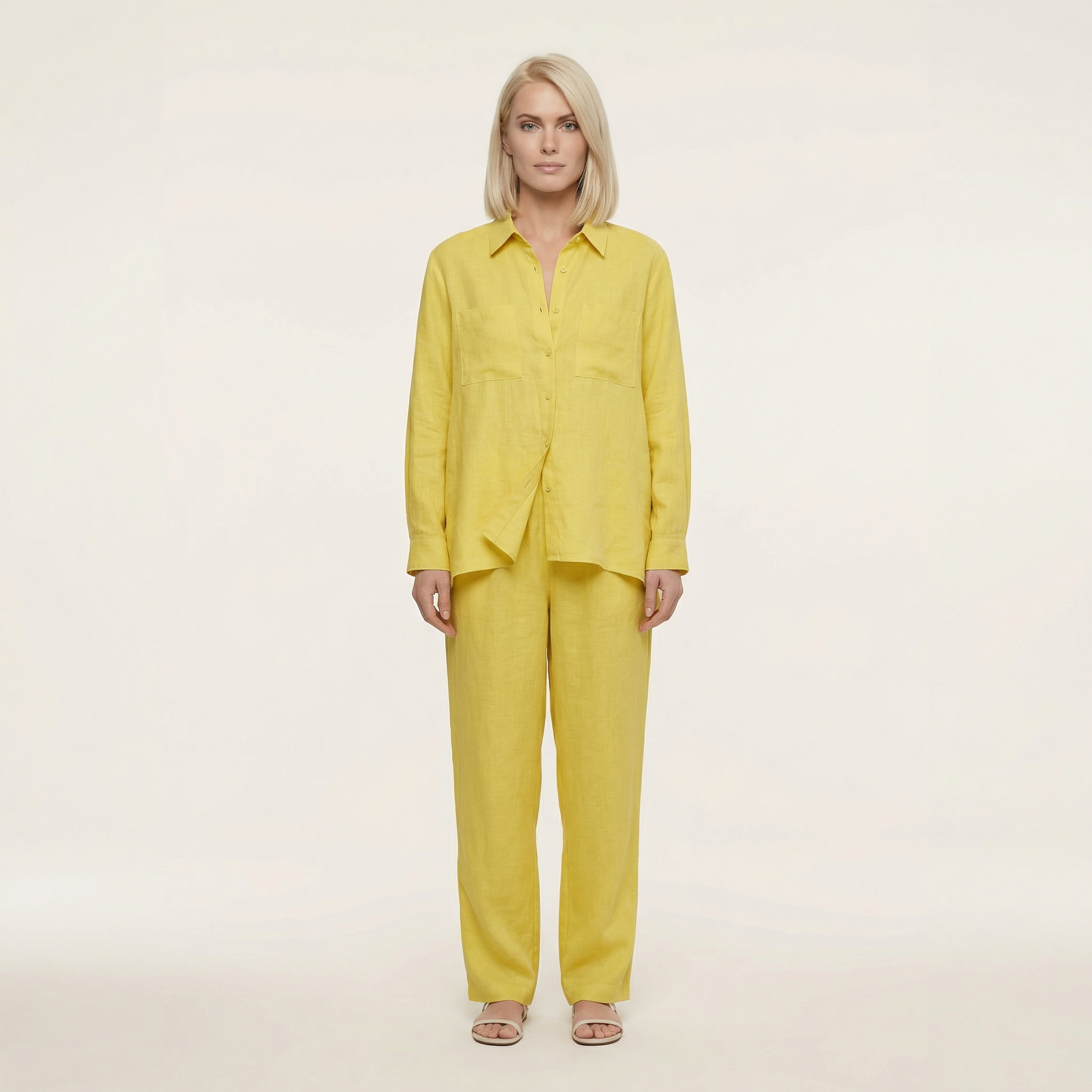 Women’s Two-Piece Set – Long Sleeve Button-Up Shirt and Straight-Leg Pants