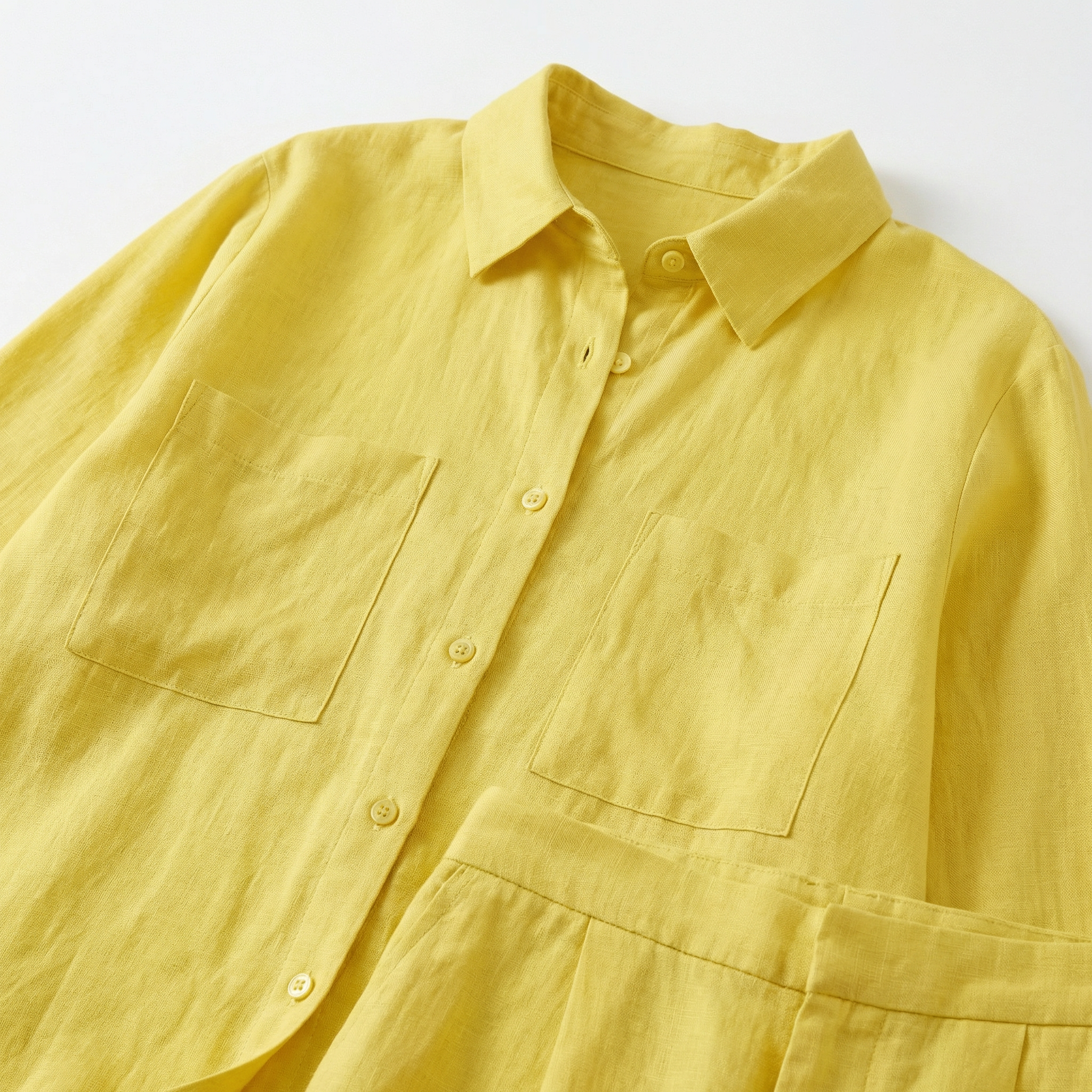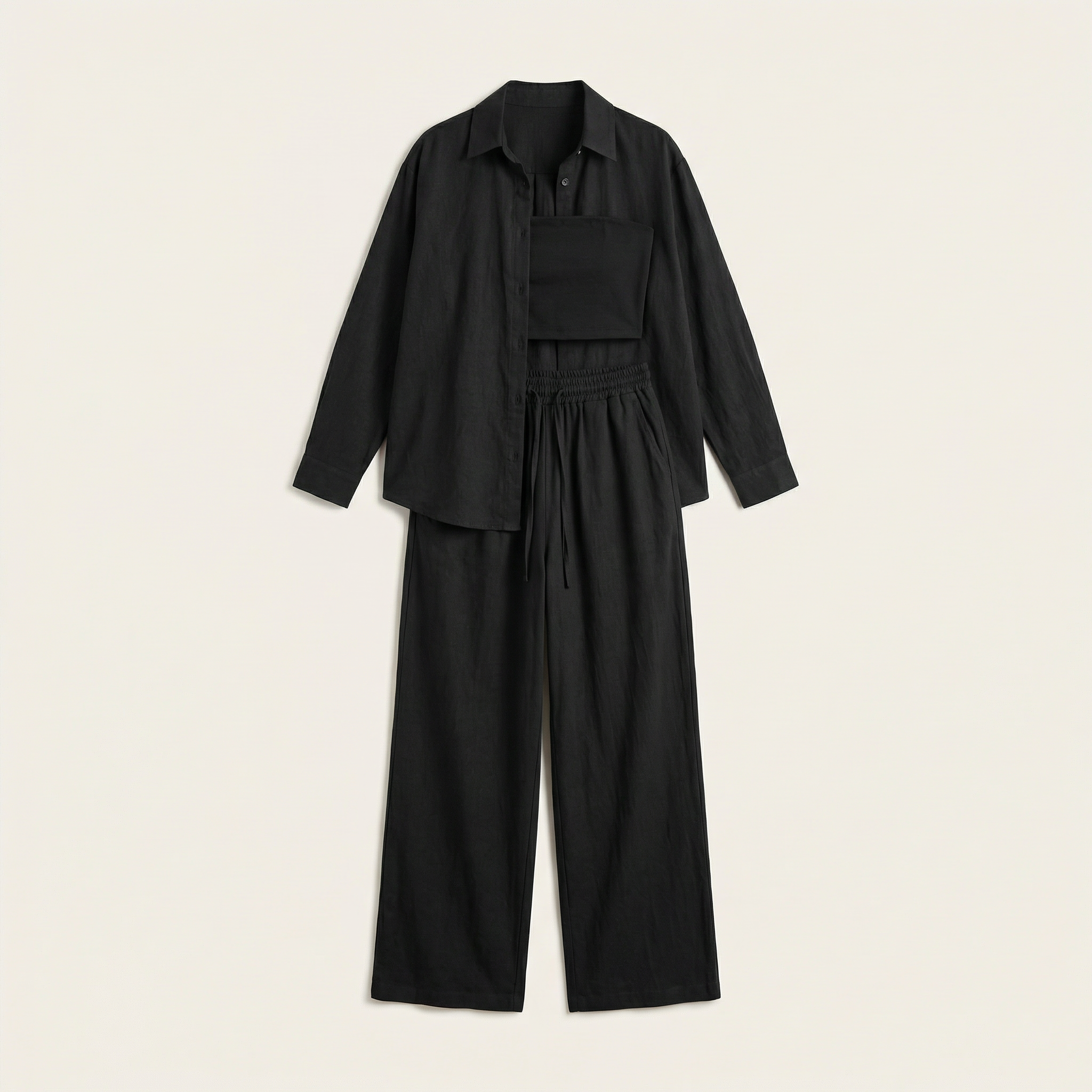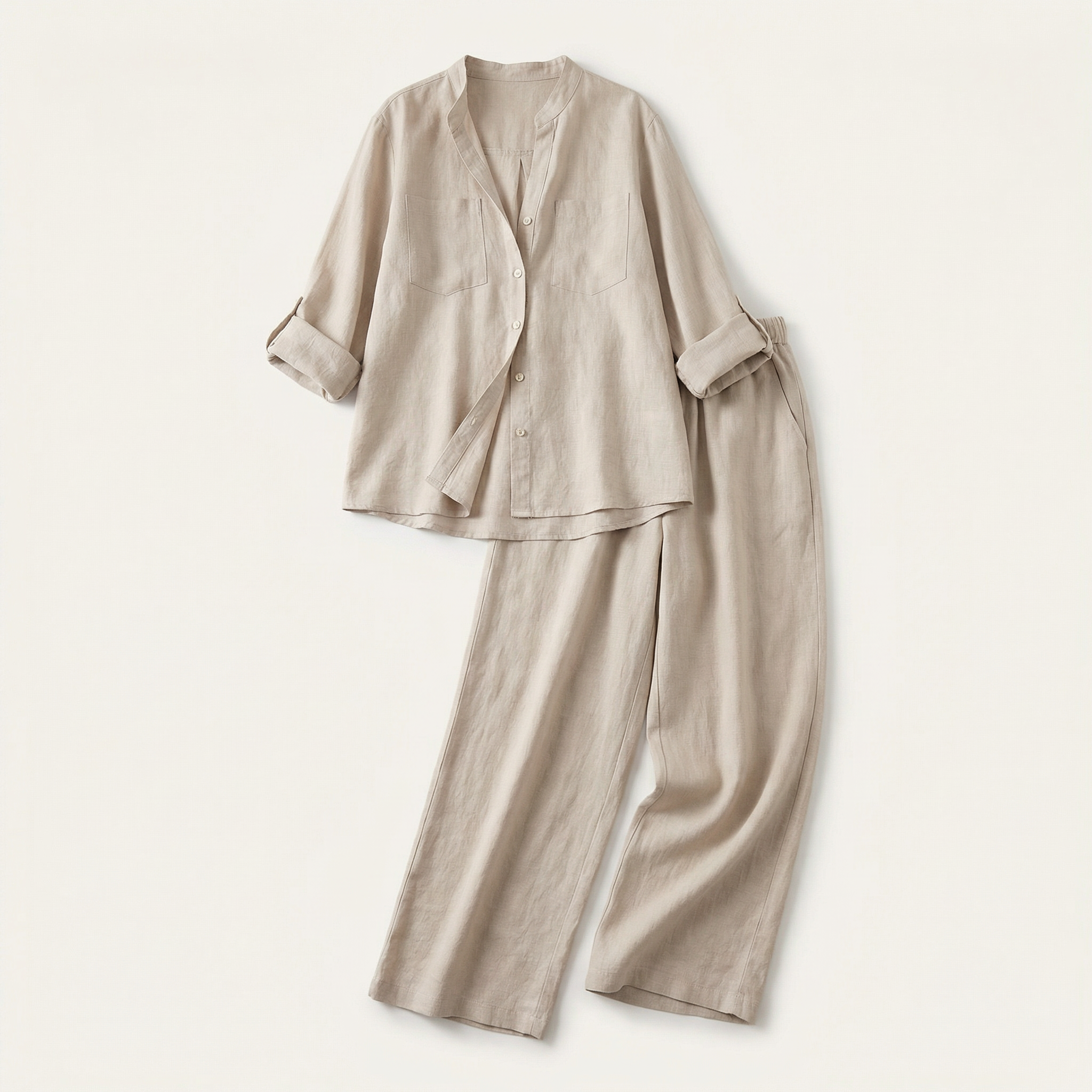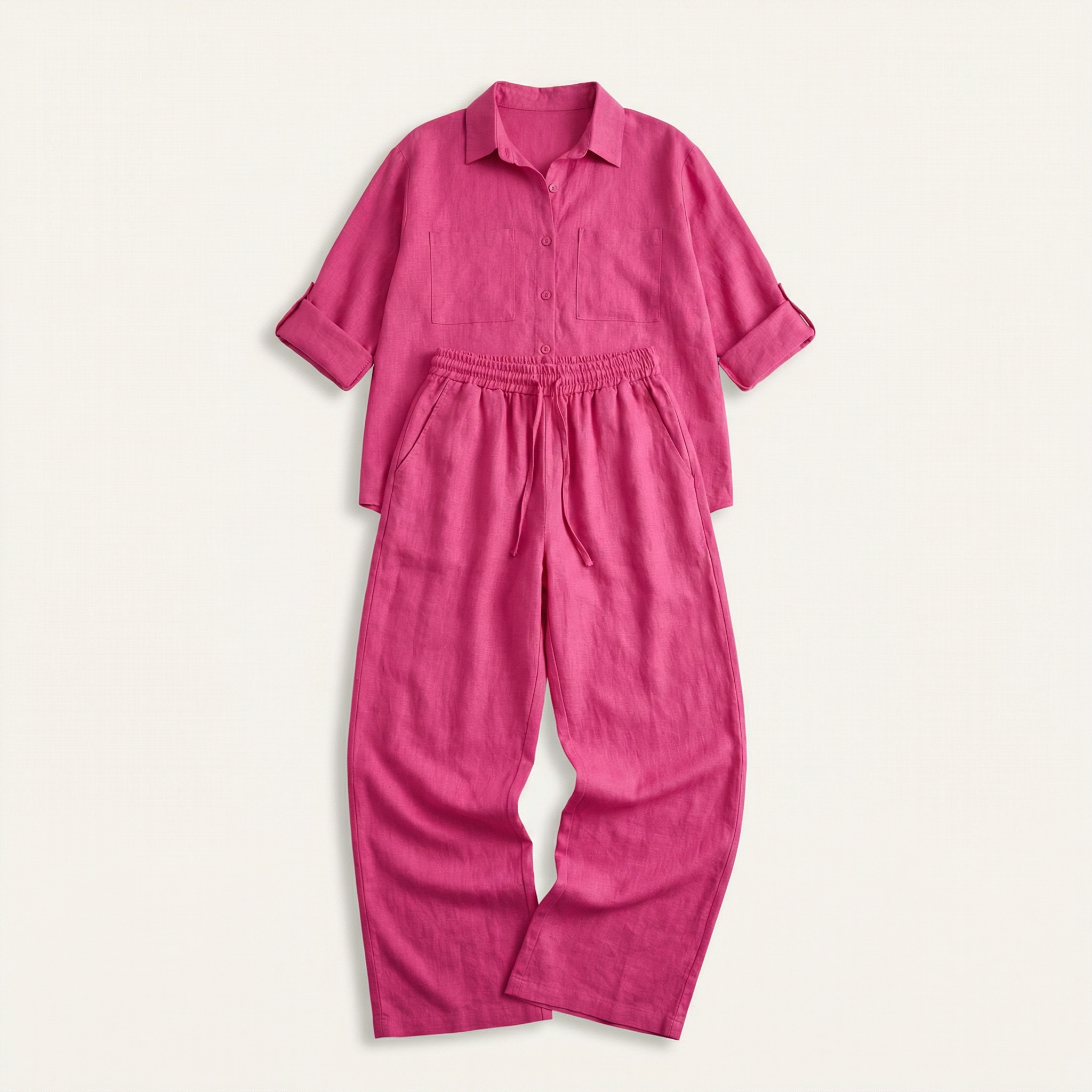 Women’s Two-Piece Set – Long Sleeve Button-Up Shirt and Straight-Leg Pants