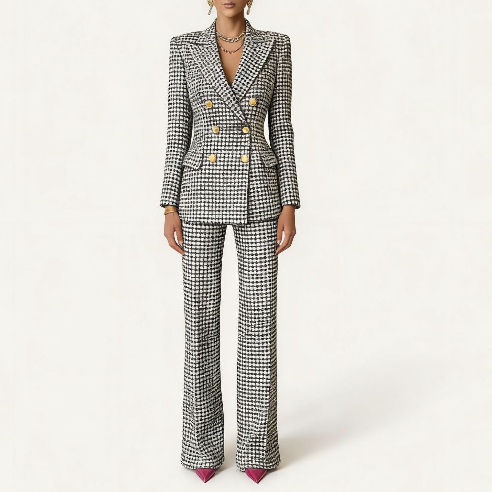 Women’s Two-Piece Suit Set – Double-Breasted Blazer and Straight-Leg Pants