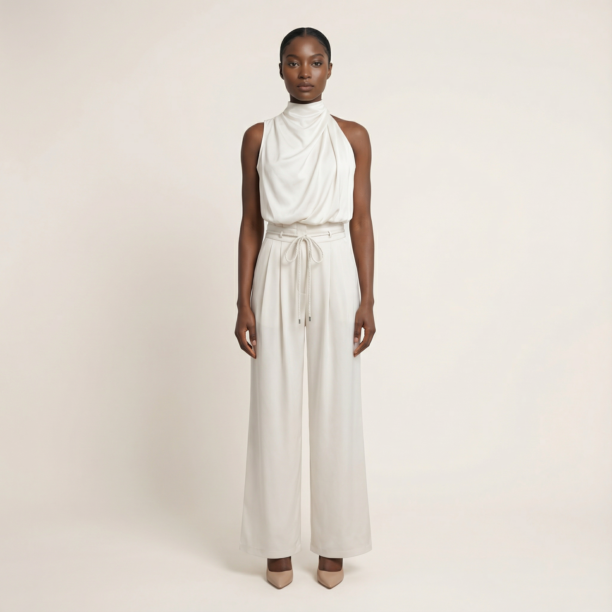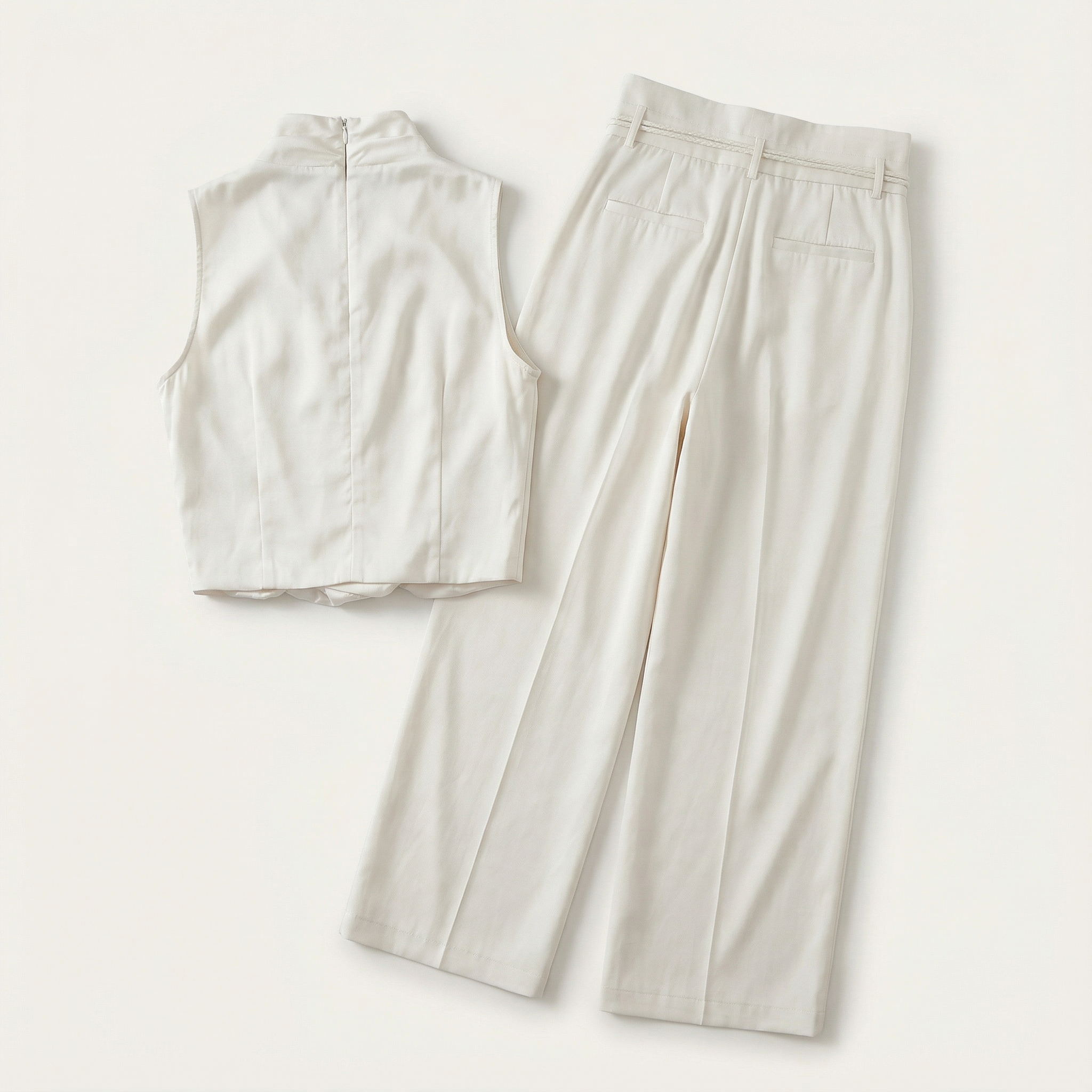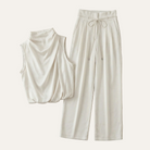 Women’s Two-Piece Outfit Set – Sleeveless High-Neck Top and Wide-Leg Pants