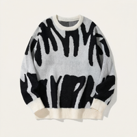 Men’s Knit Sweater – Crew Neck, Long Sleeve, Two-Tone Pattern