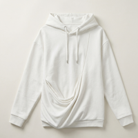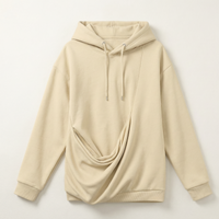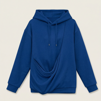 Women’s hooded sweatshirt designed as a pullover with long sleeves and a draped front detail.