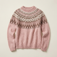 Women’s knit sweater with a crew neckline and patterned design across the upper body. Features long sleeves and ribbed cuffs and hem.