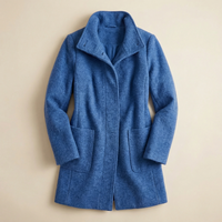 Women’s long sleeve jacket with a front button closure and a structured collar. Designed with a straight cut and hip-length coverage.