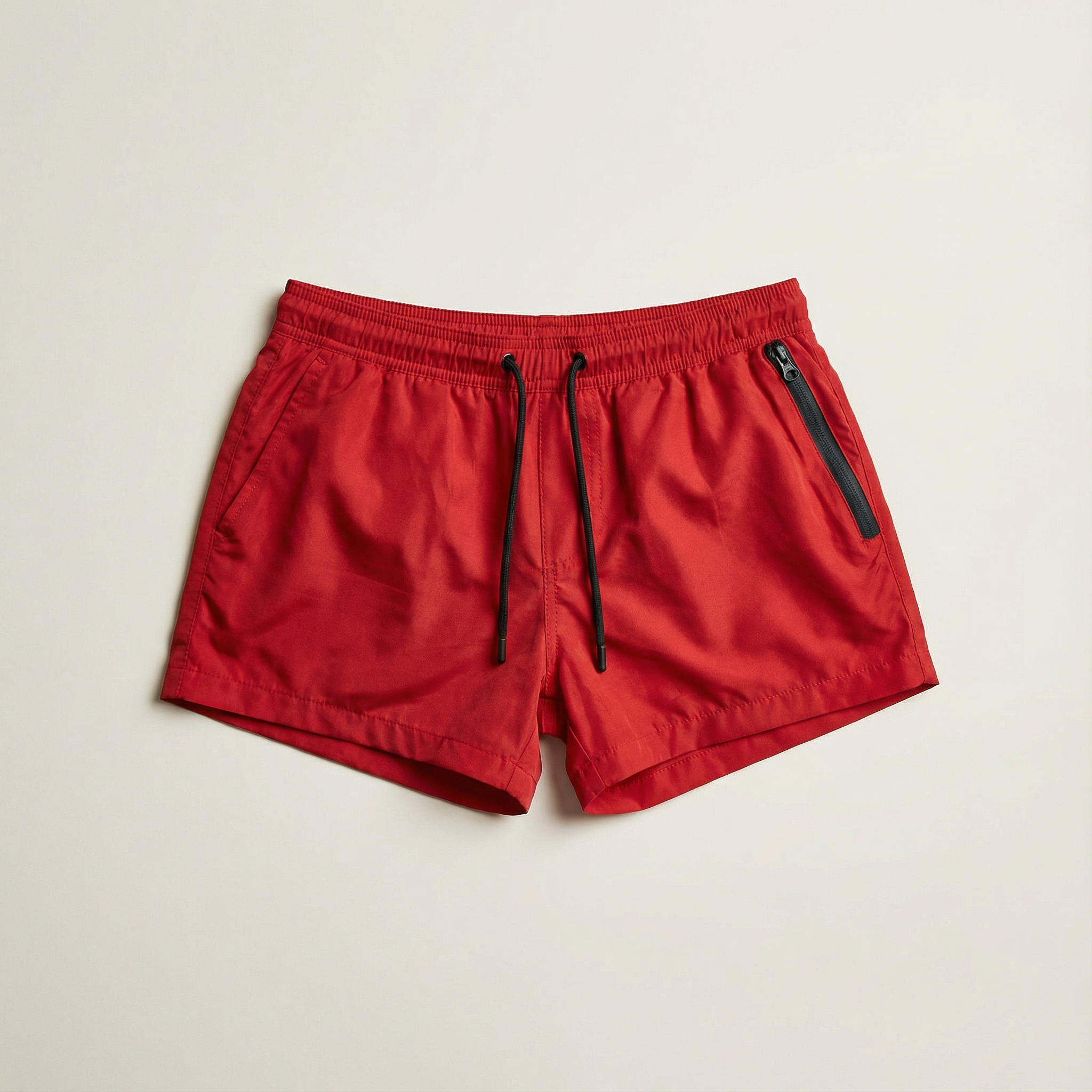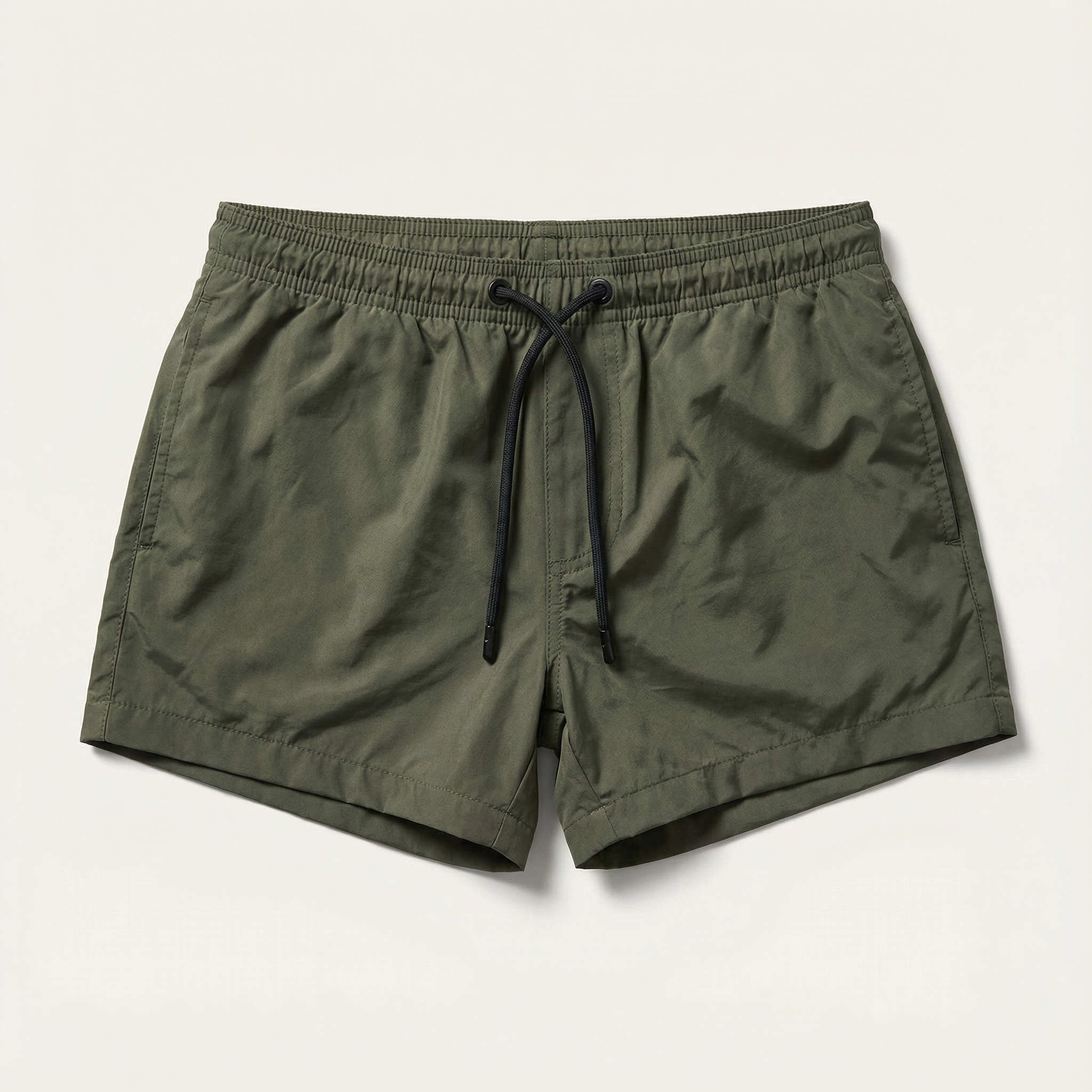 Men’s Short-Length Beach Shorts – Drawstring Waist, Side Zip Pockets