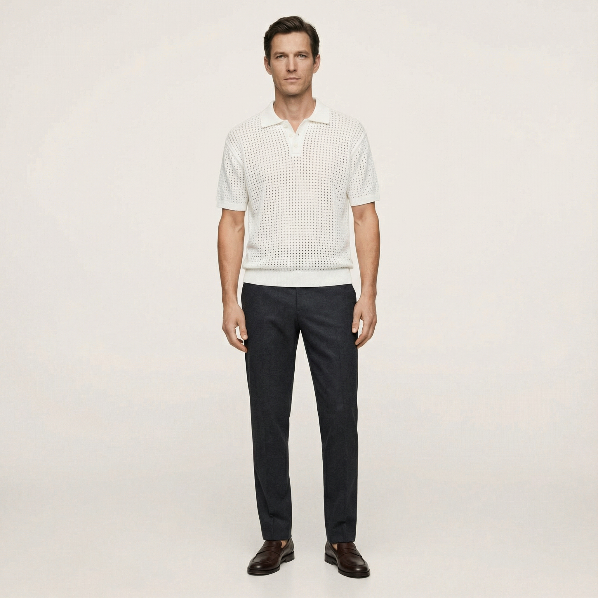 Men’s Short-Sleeve Polo Shirt – Button Placket, Collared Design