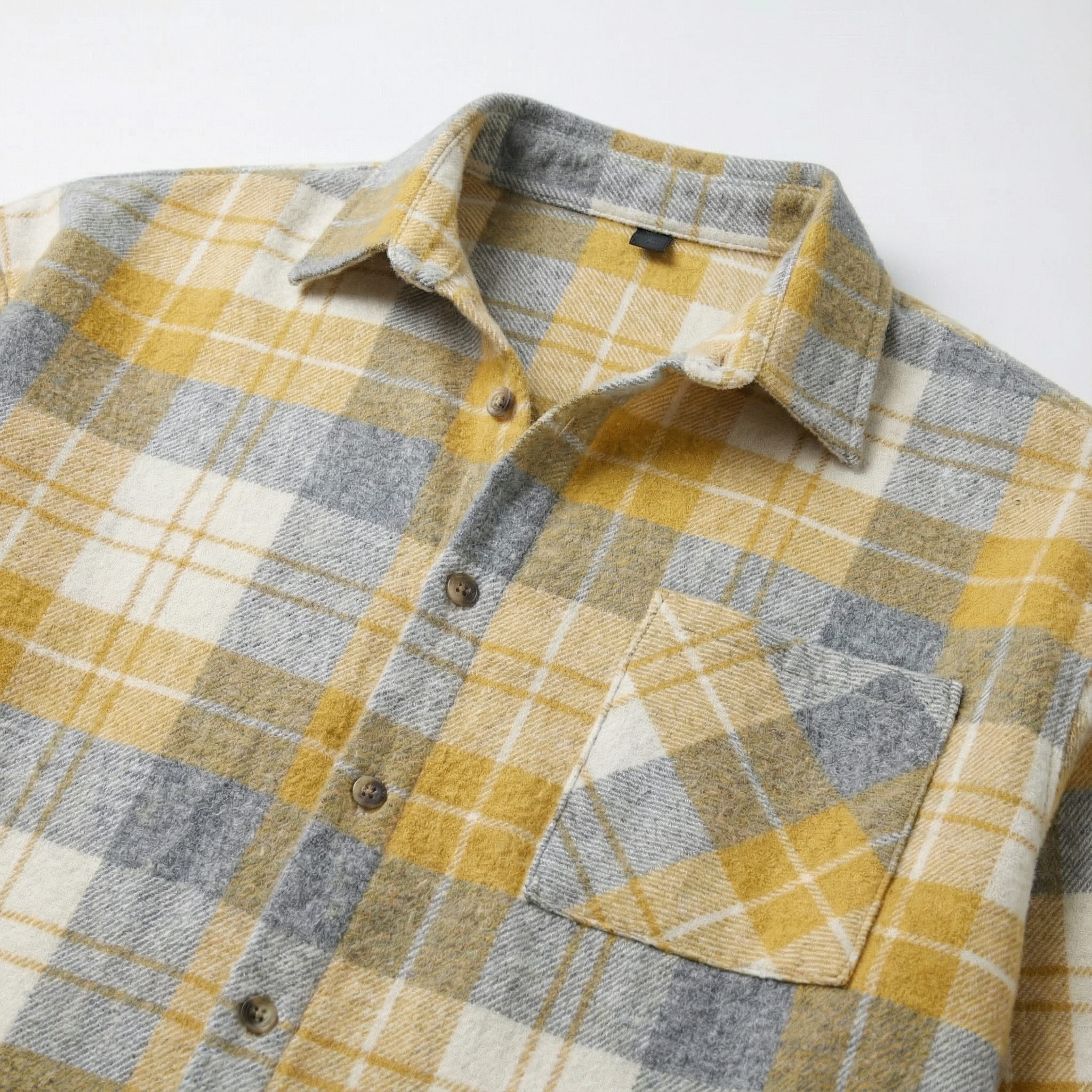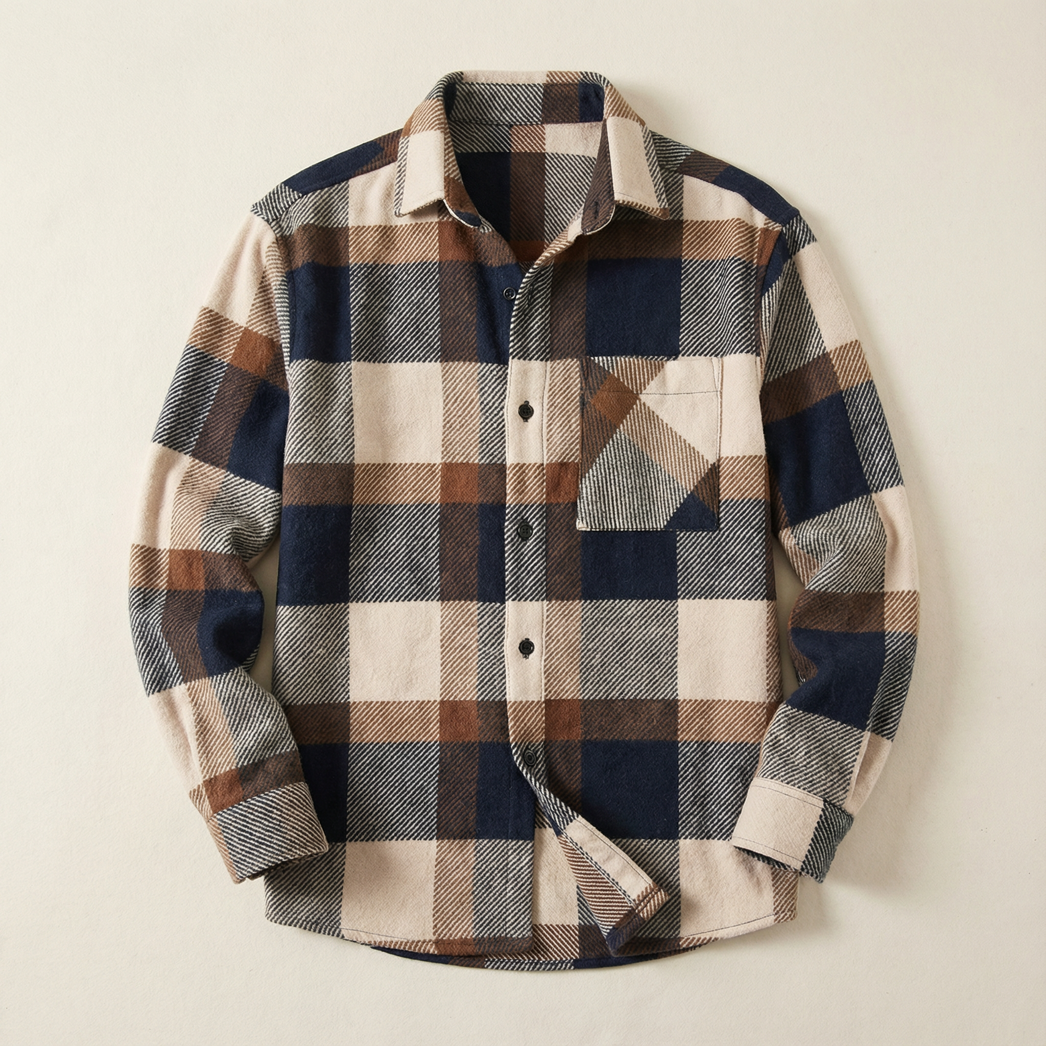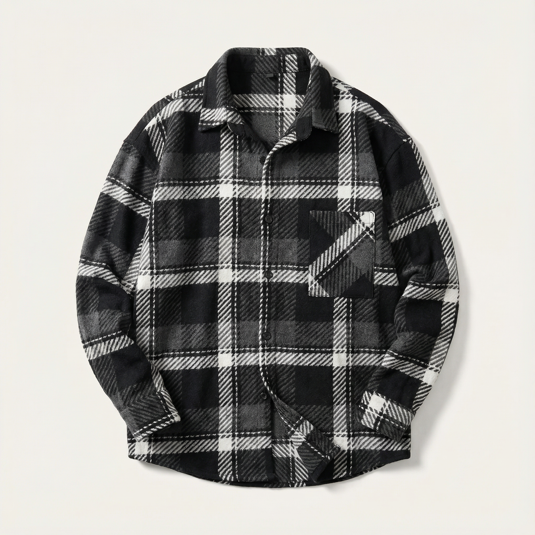Men’s Long-Sleeve Button-Up Shirt – Check Pattern, Chest Pockets