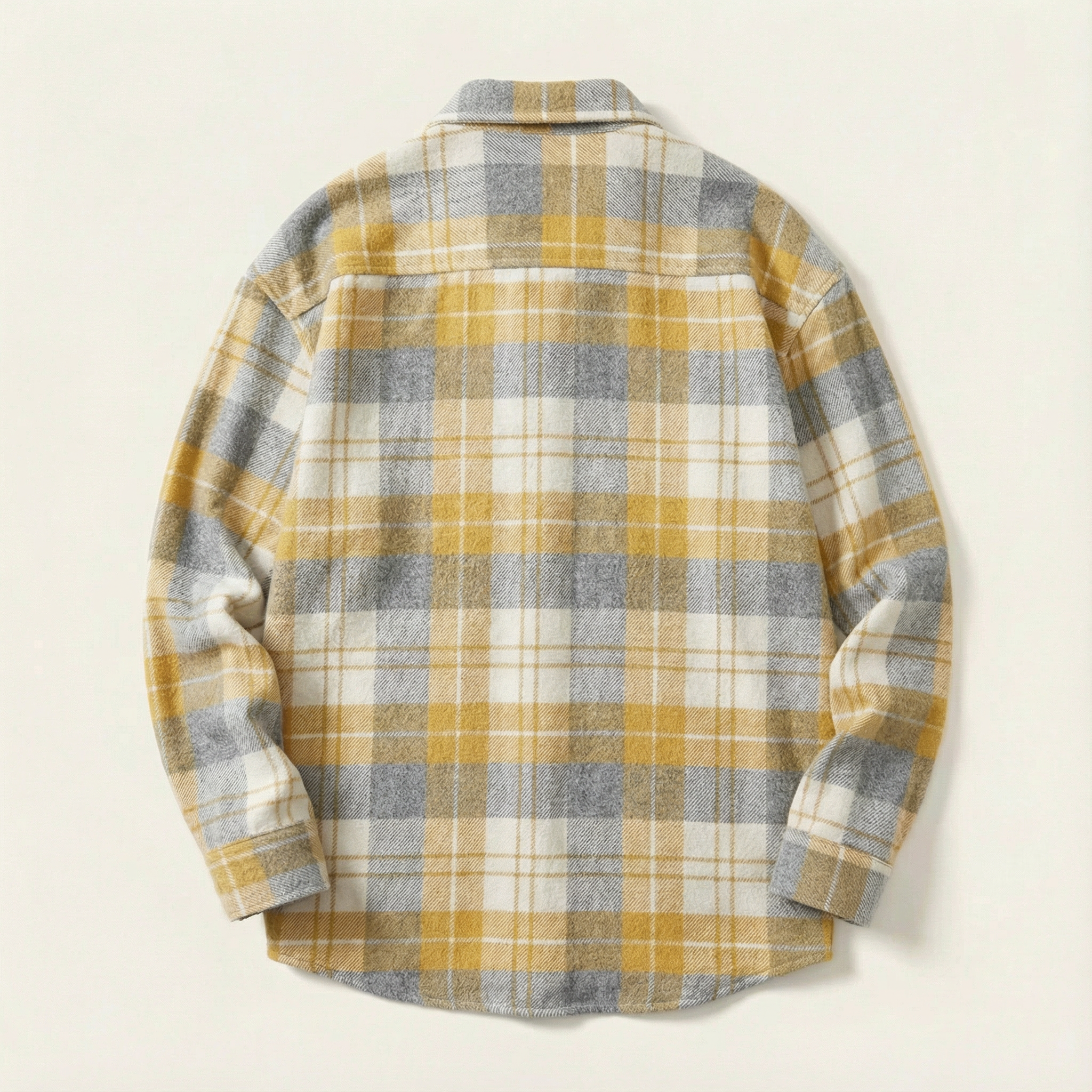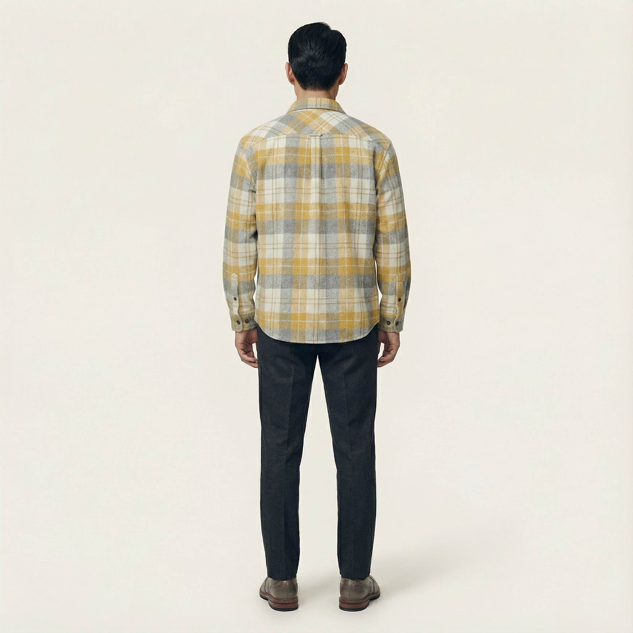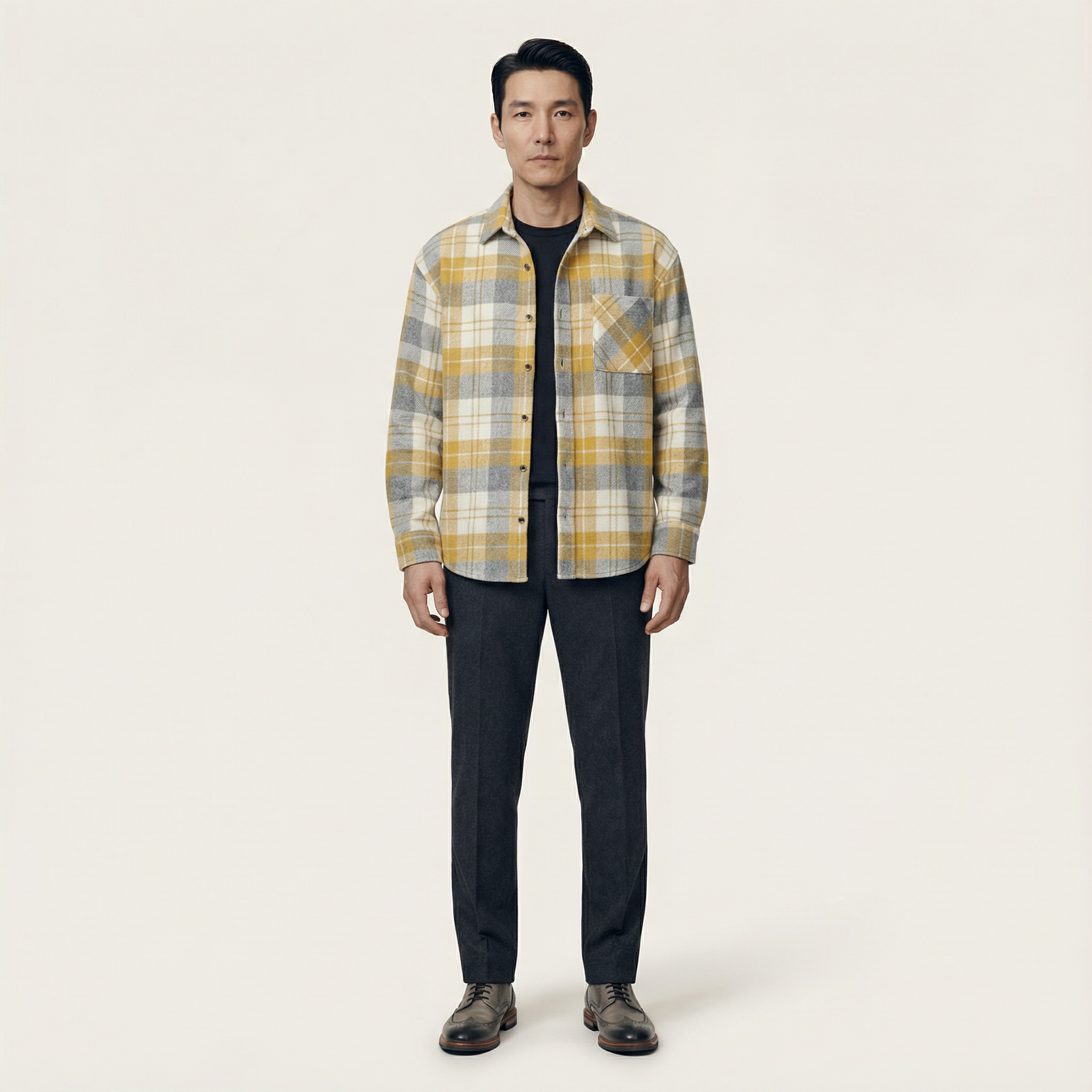 Men’s Long-Sleeve Button-Up Shirt – Check Pattern, Chest Pockets