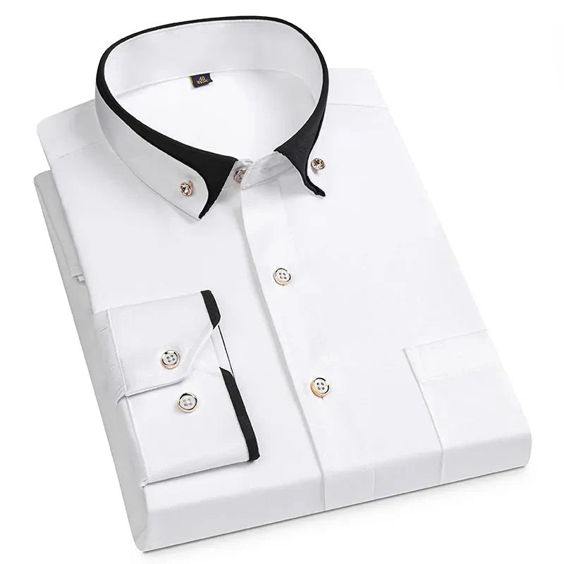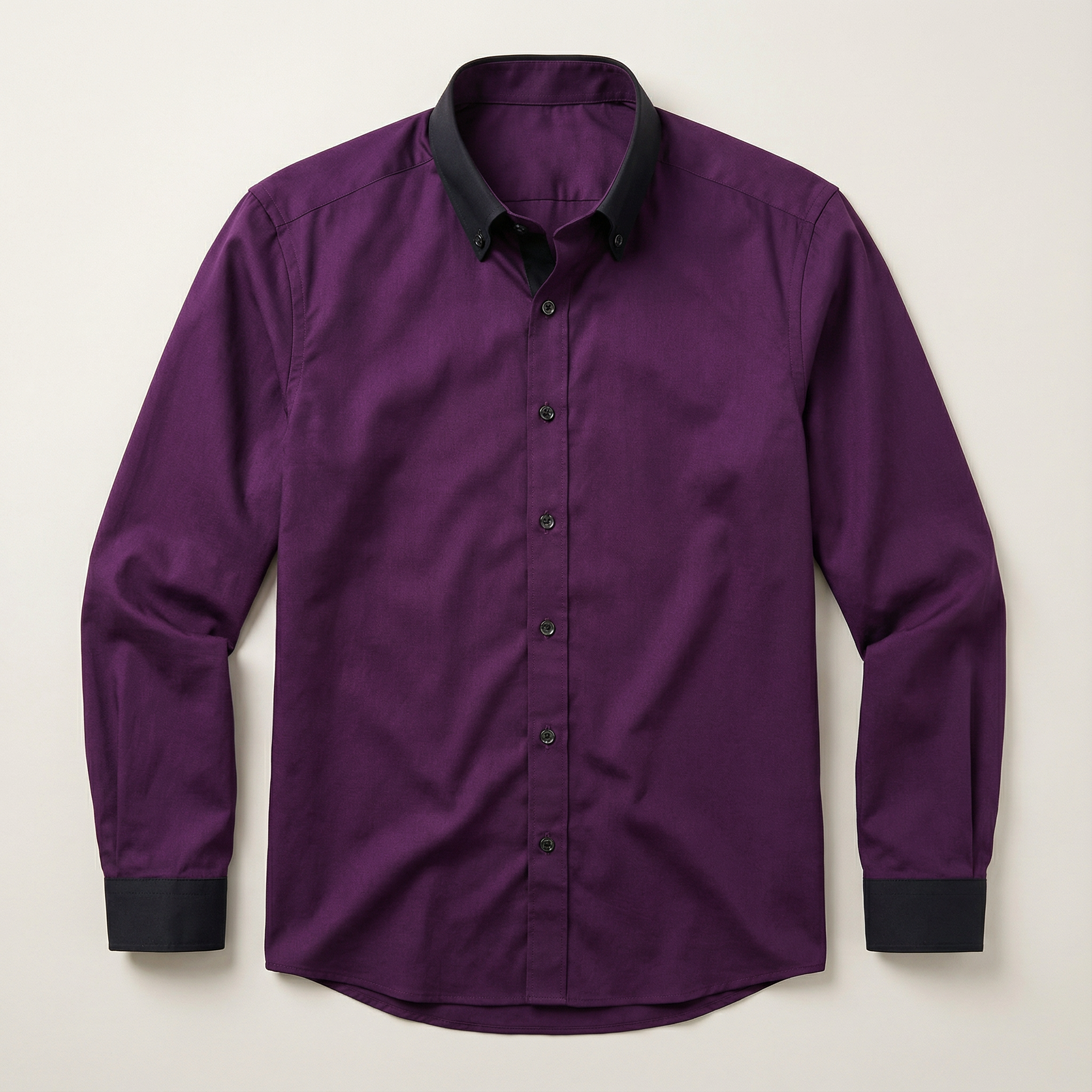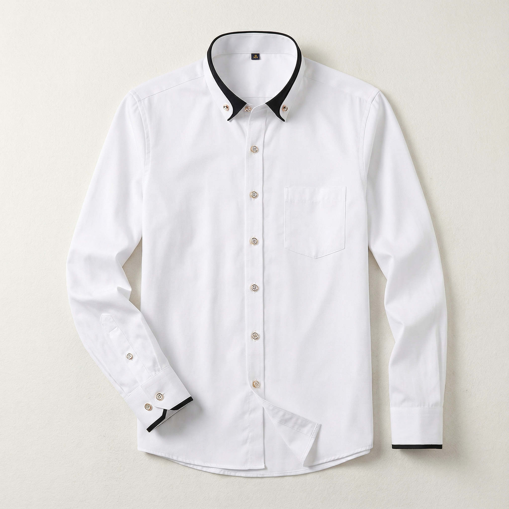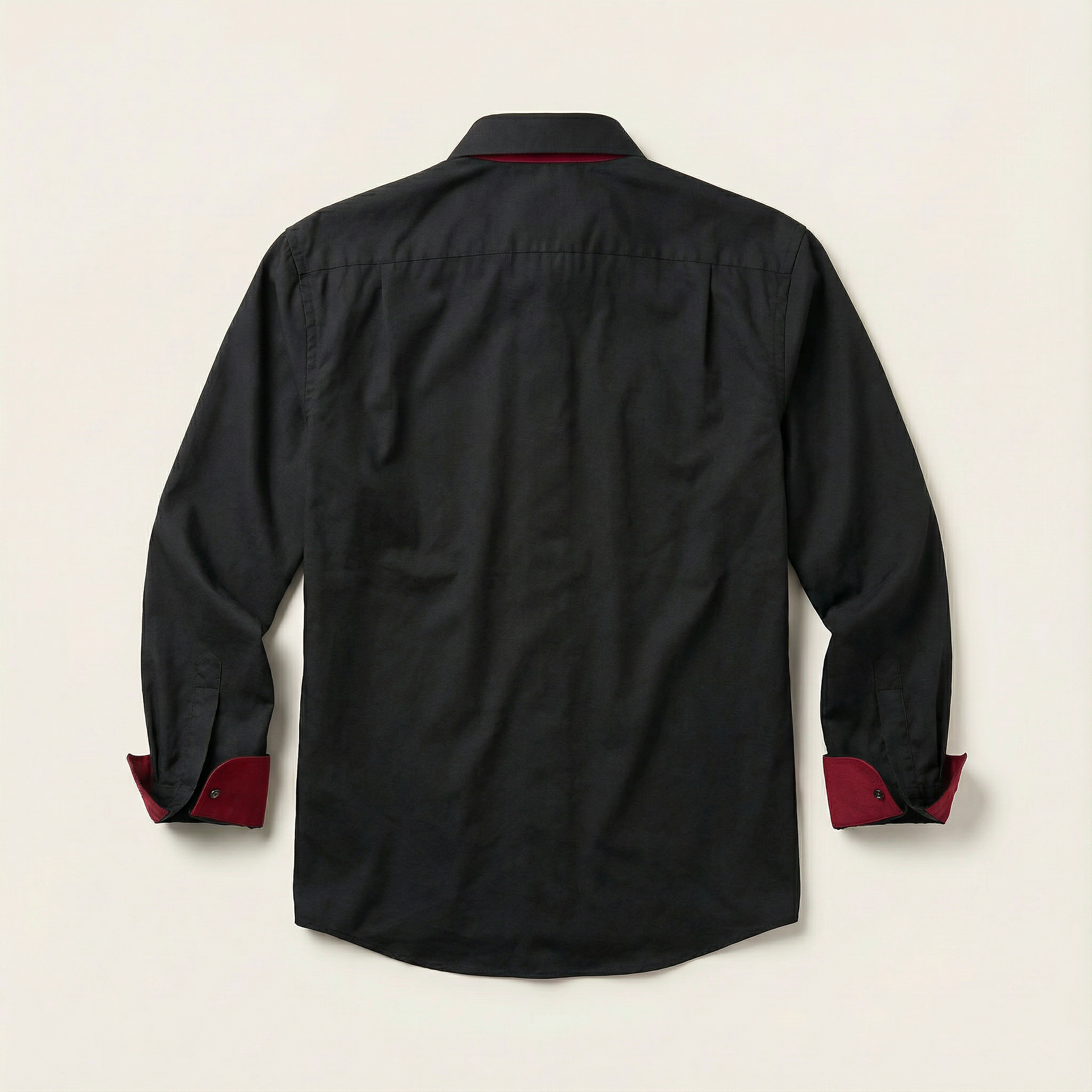 Men’s Long-Sleeve Button-Up Shirt – Stand Collar, Contrast Cuffs