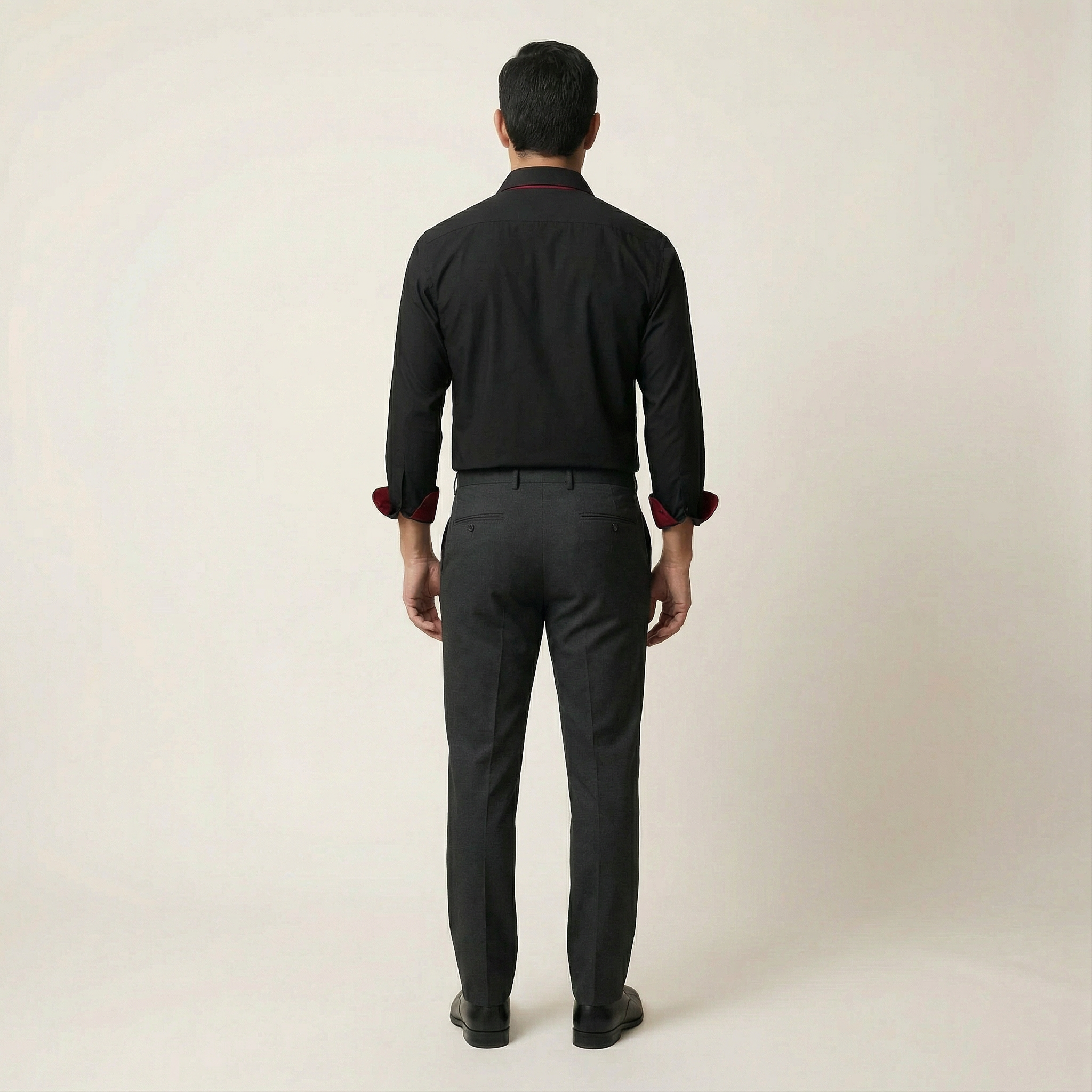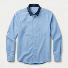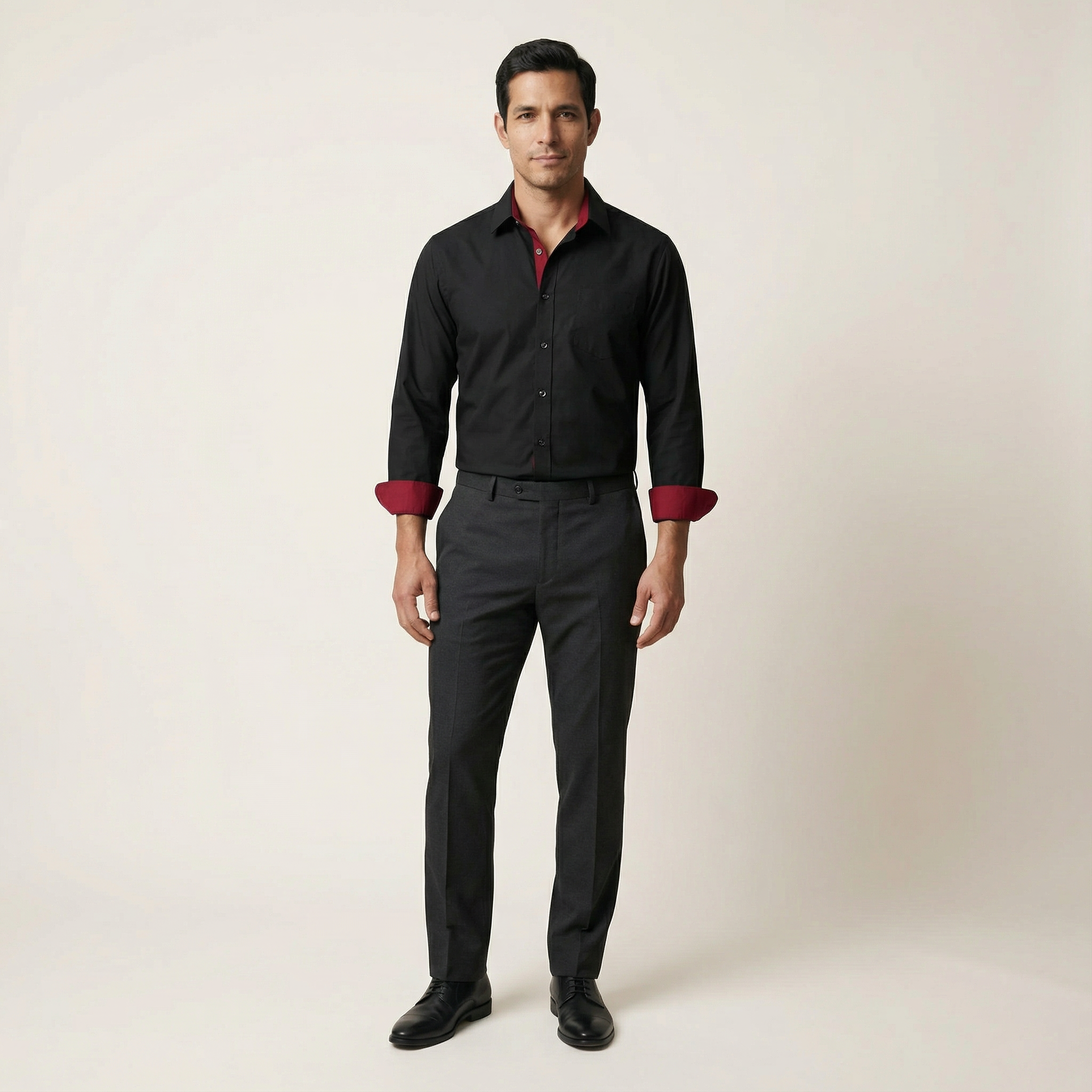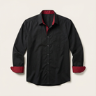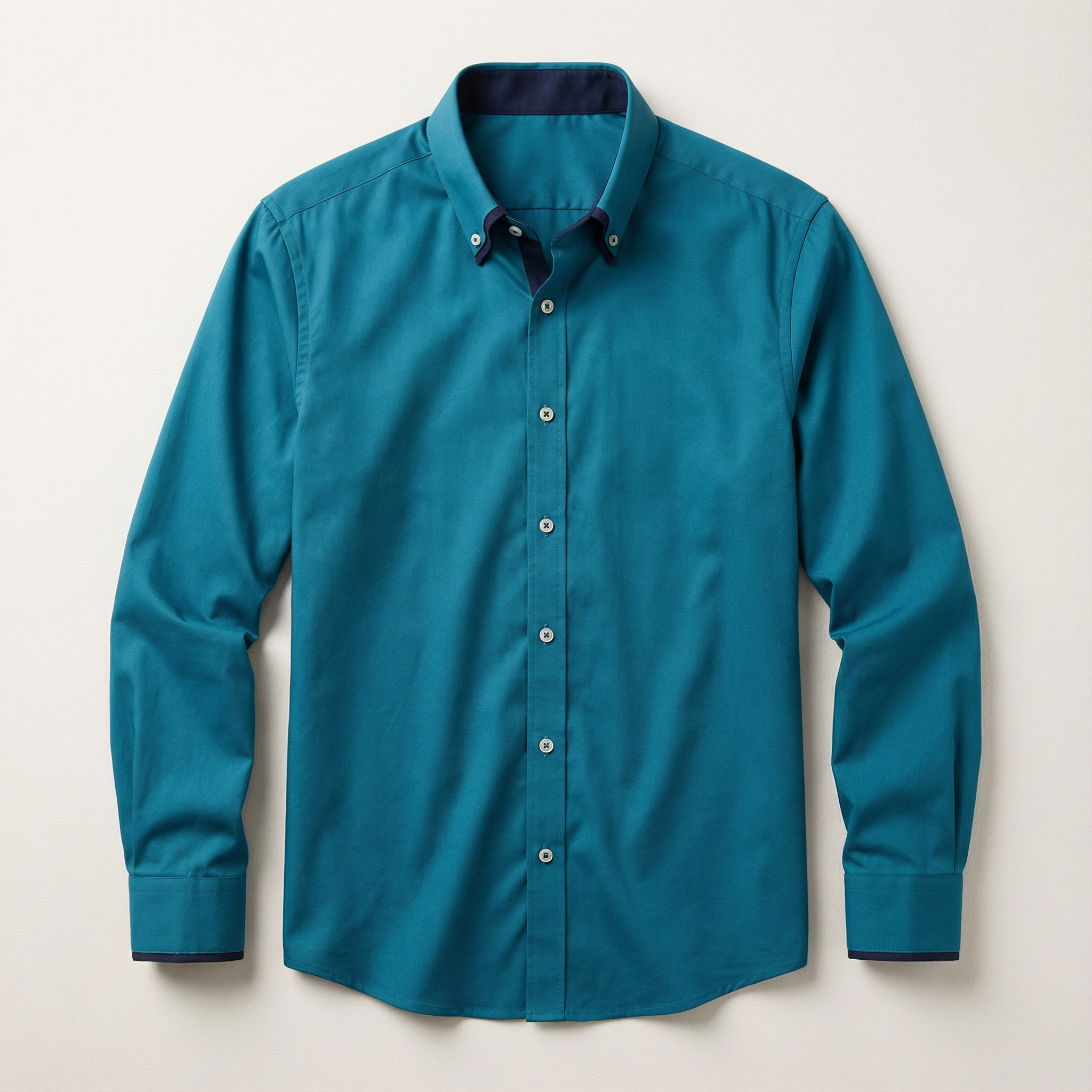 Men’s Long-Sleeve Button-Up Shirt – Stand Collar, Contrast Cuffs