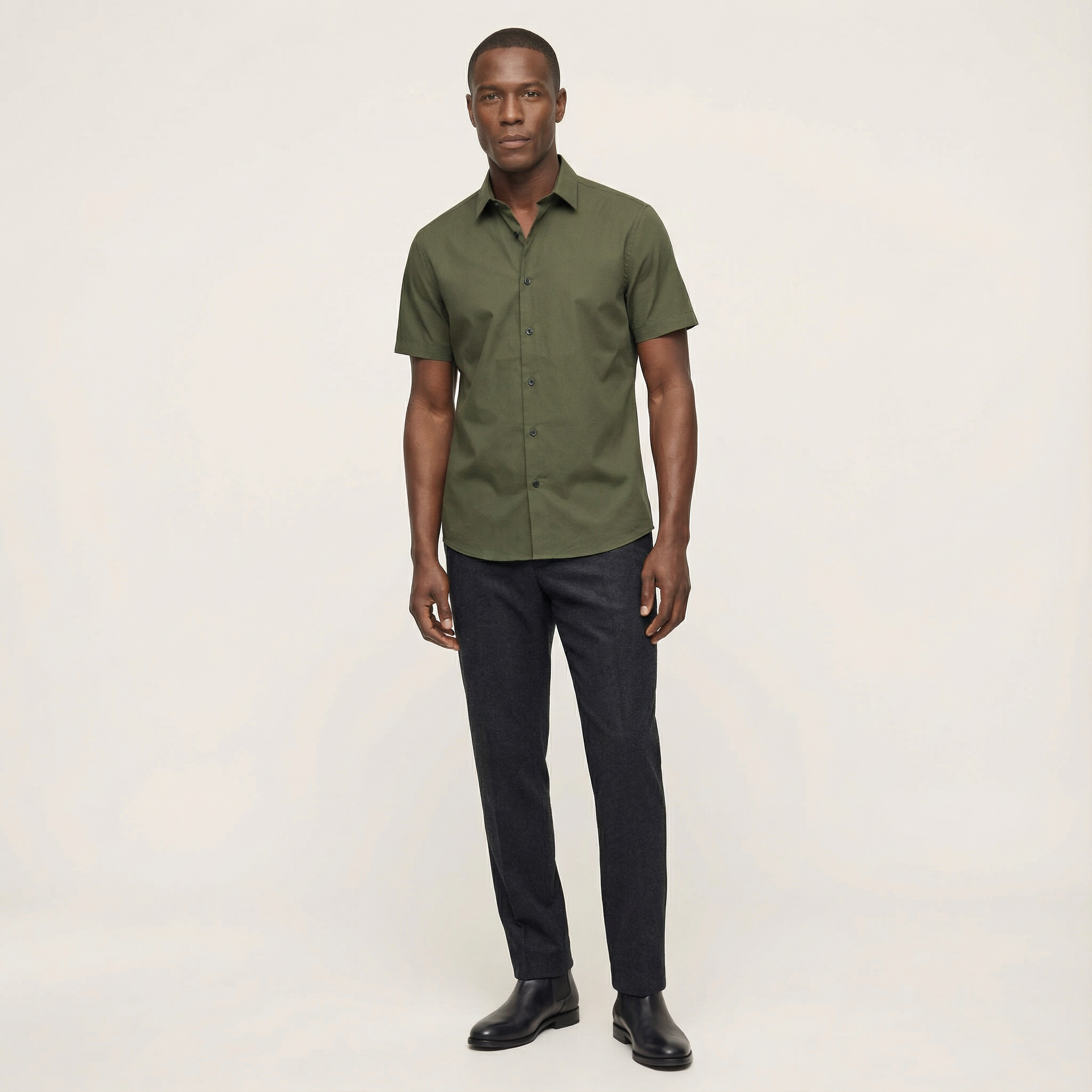 Men’s Modern Style Slim-Fit Short-Sleeve Button-Up Shirt – Collared Design