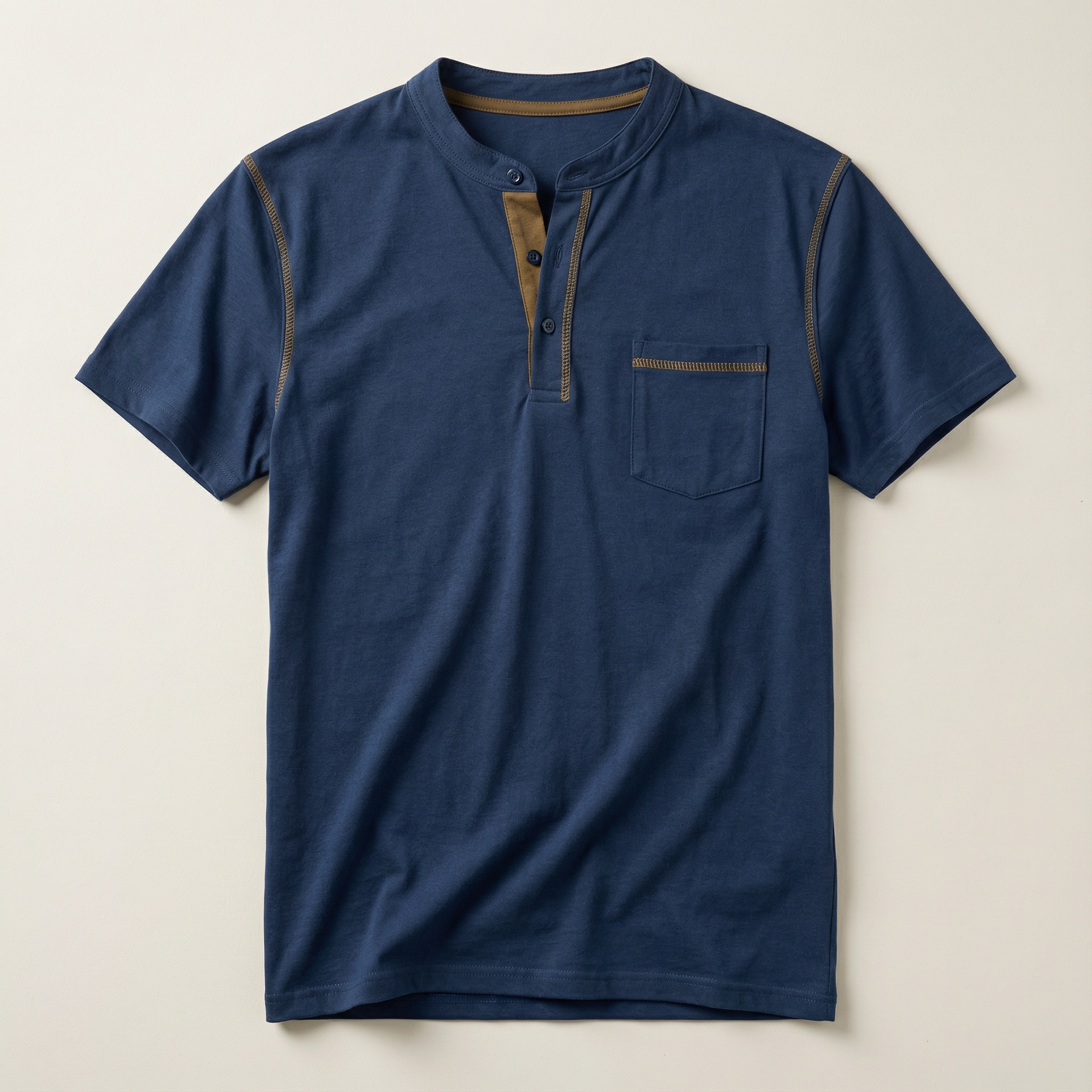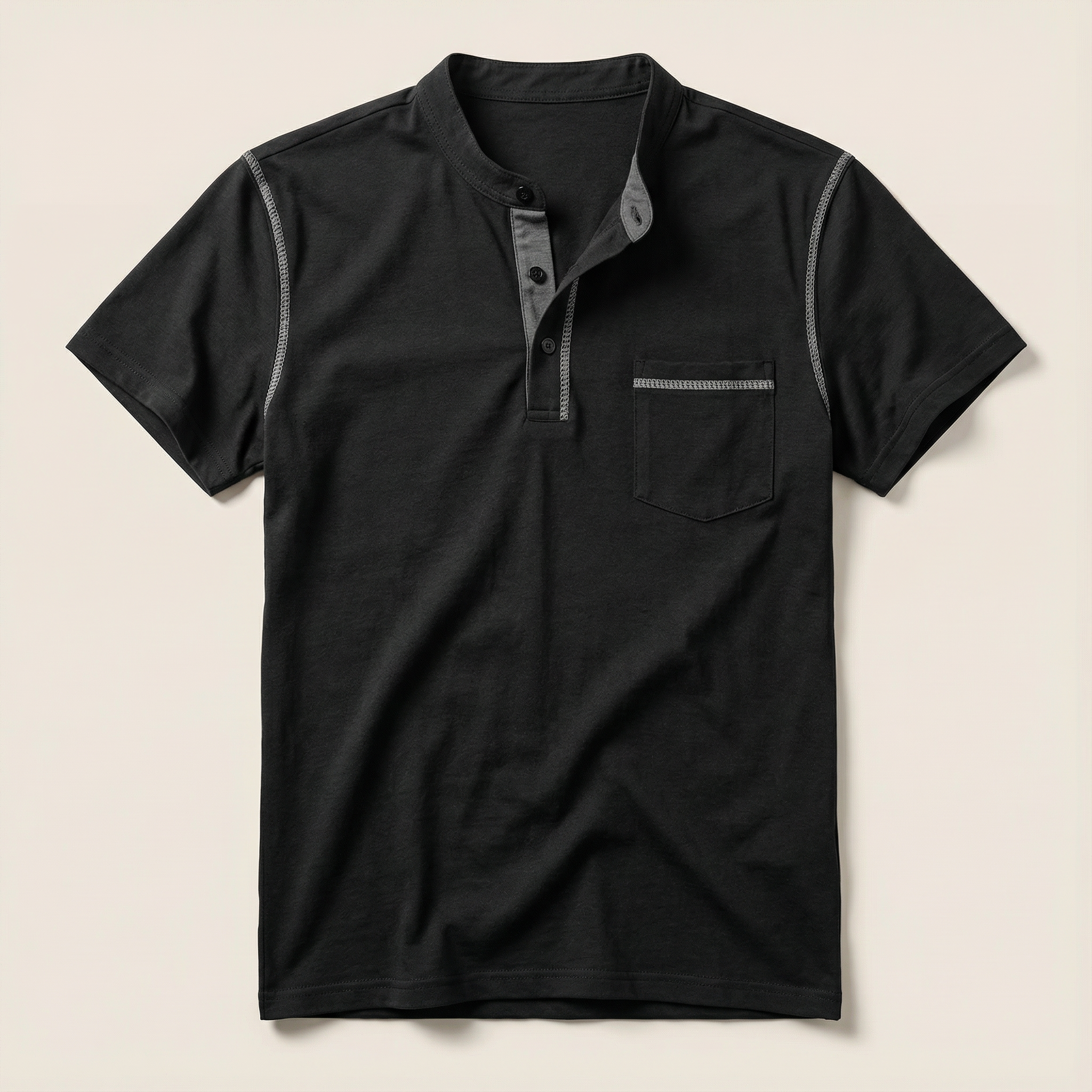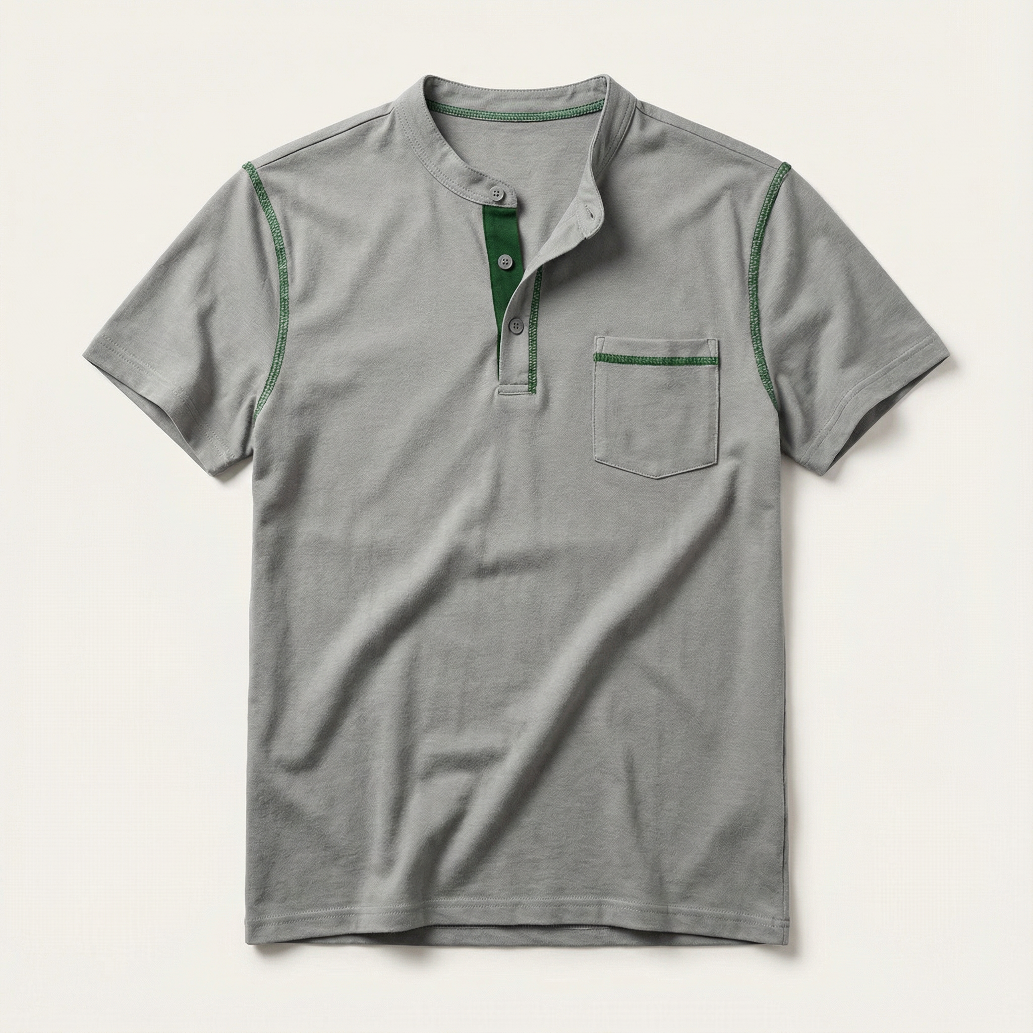 Men’s Short-Sleeve Henley Shirt – Button Placket, Chest Pocket