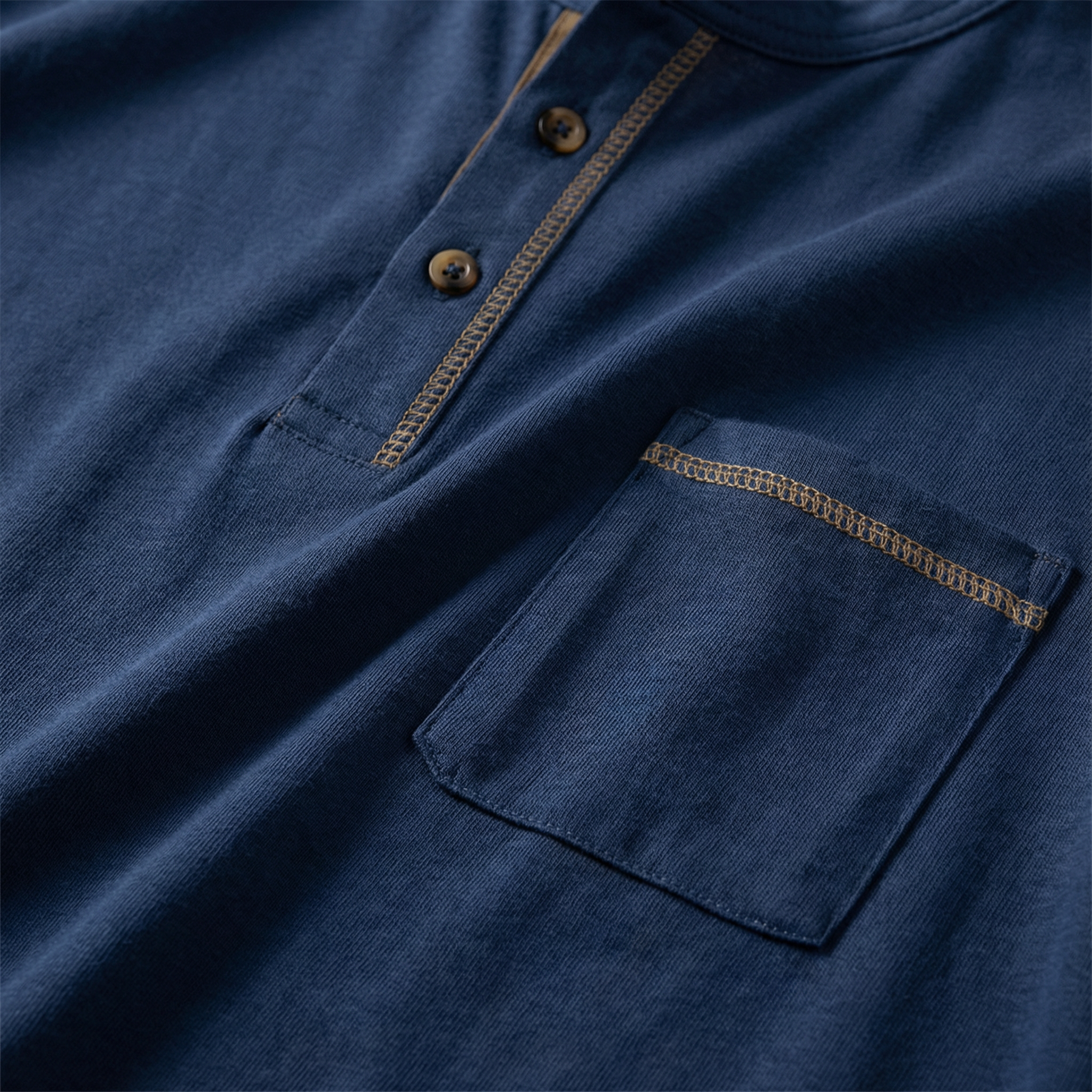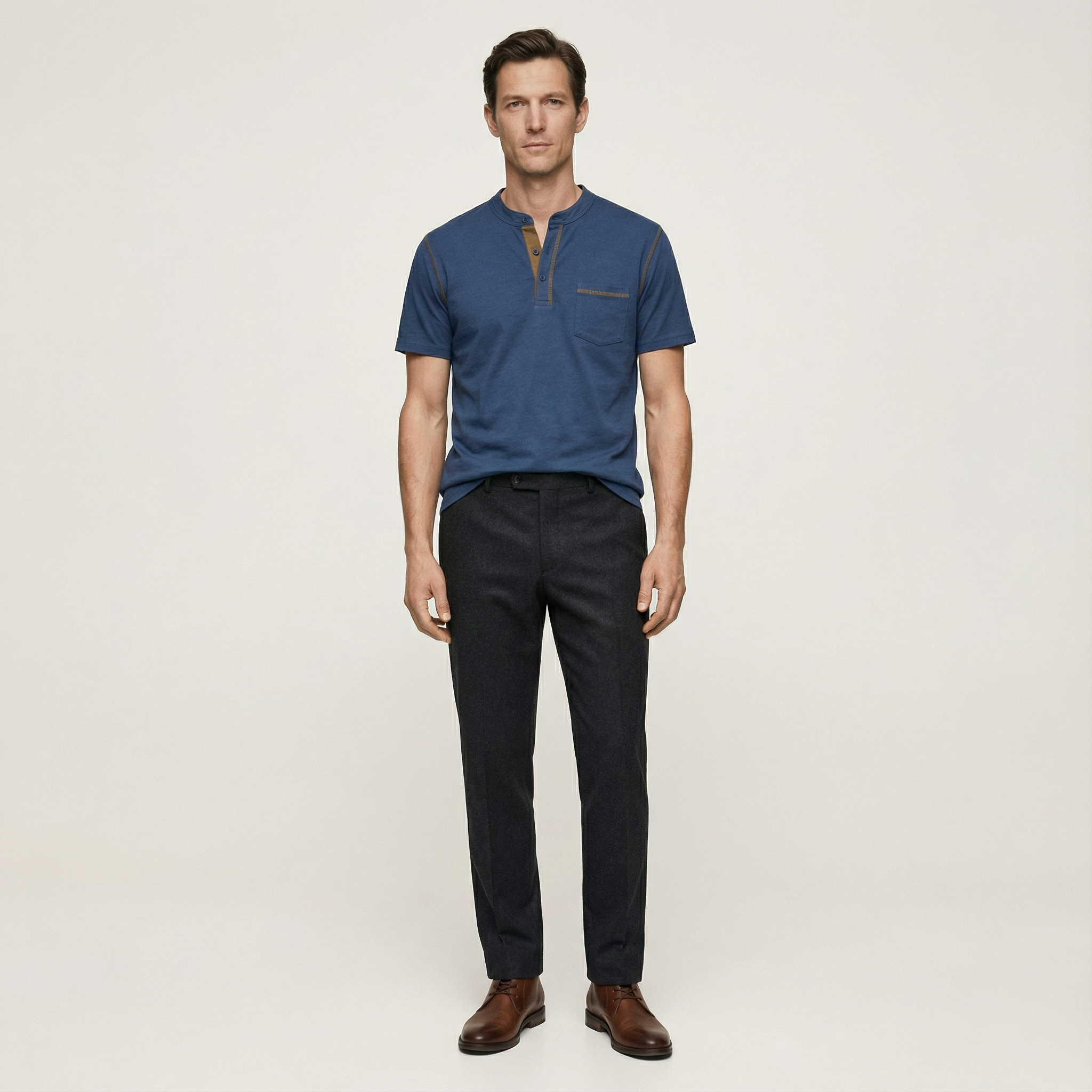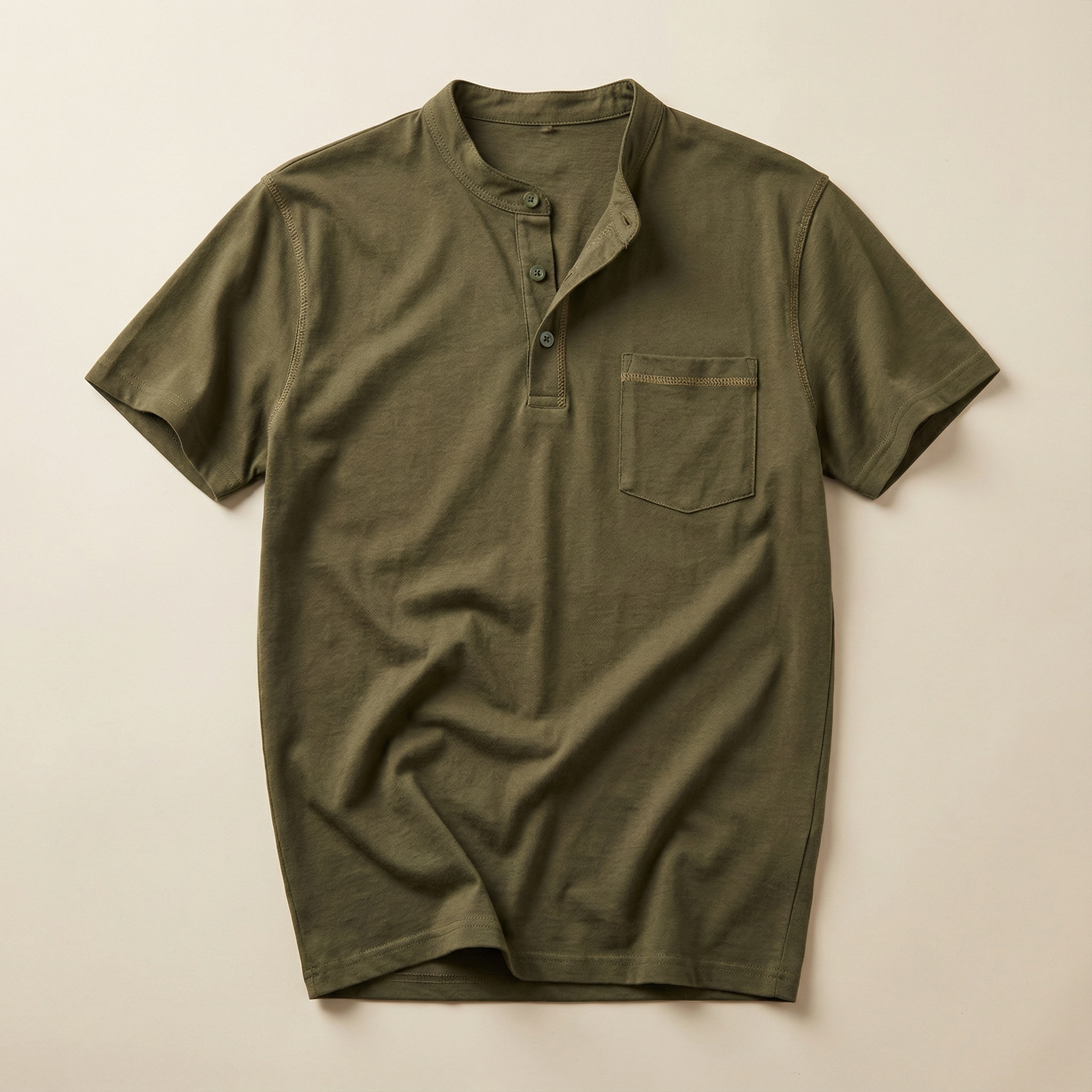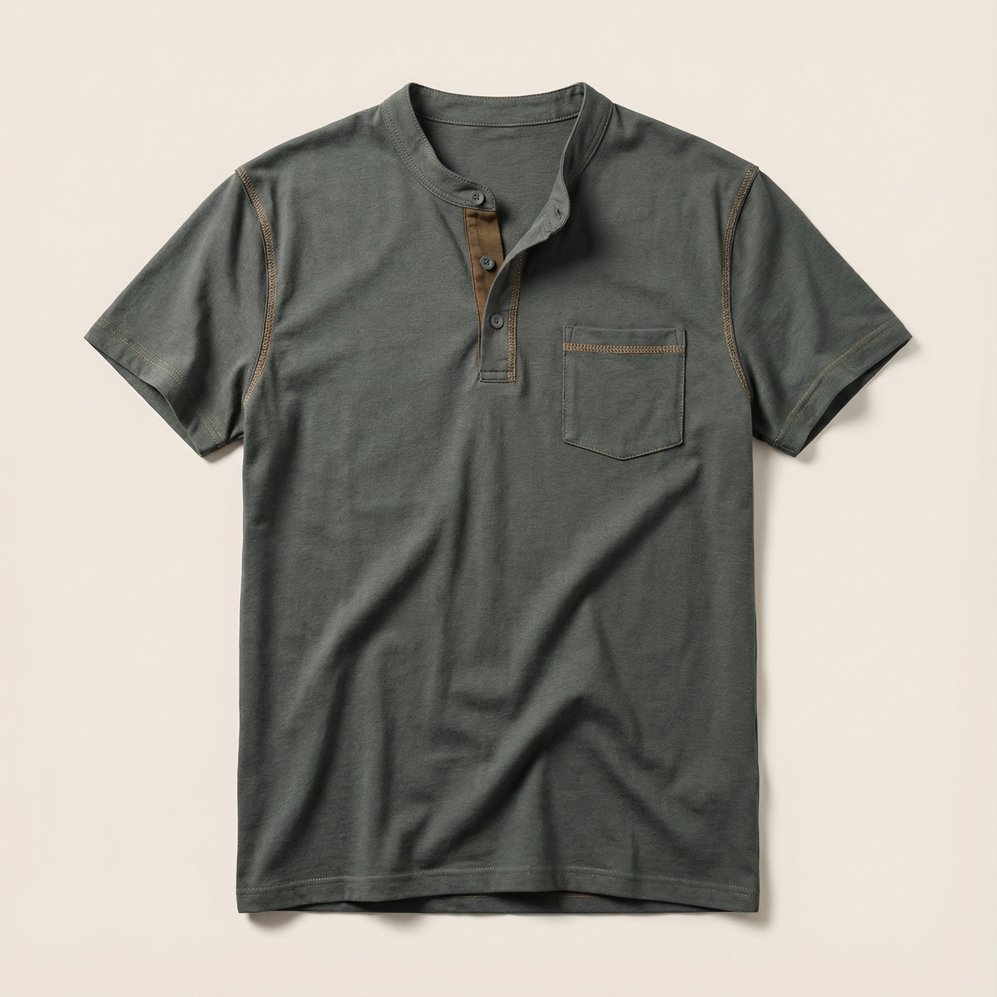 Men’s Short-Sleeve Henley Shirt – Button Placket, Chest Pocket