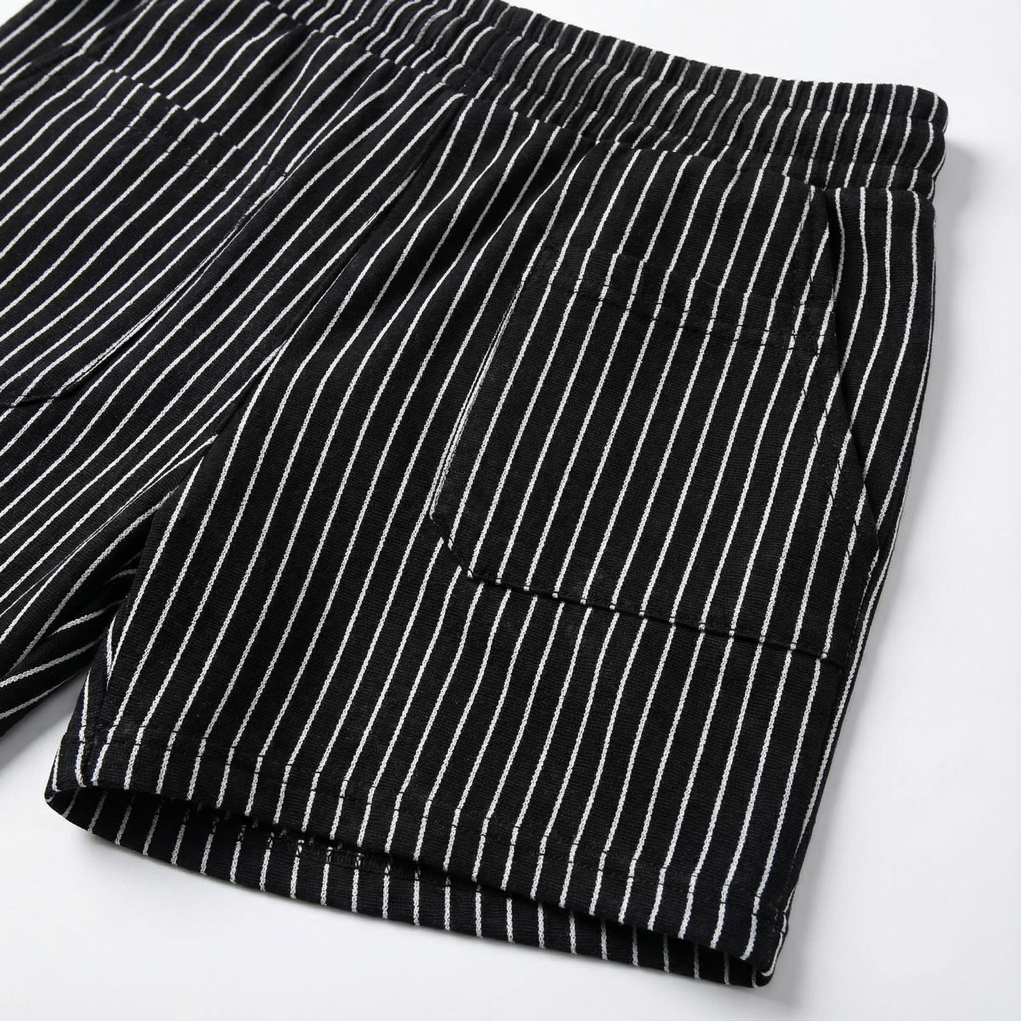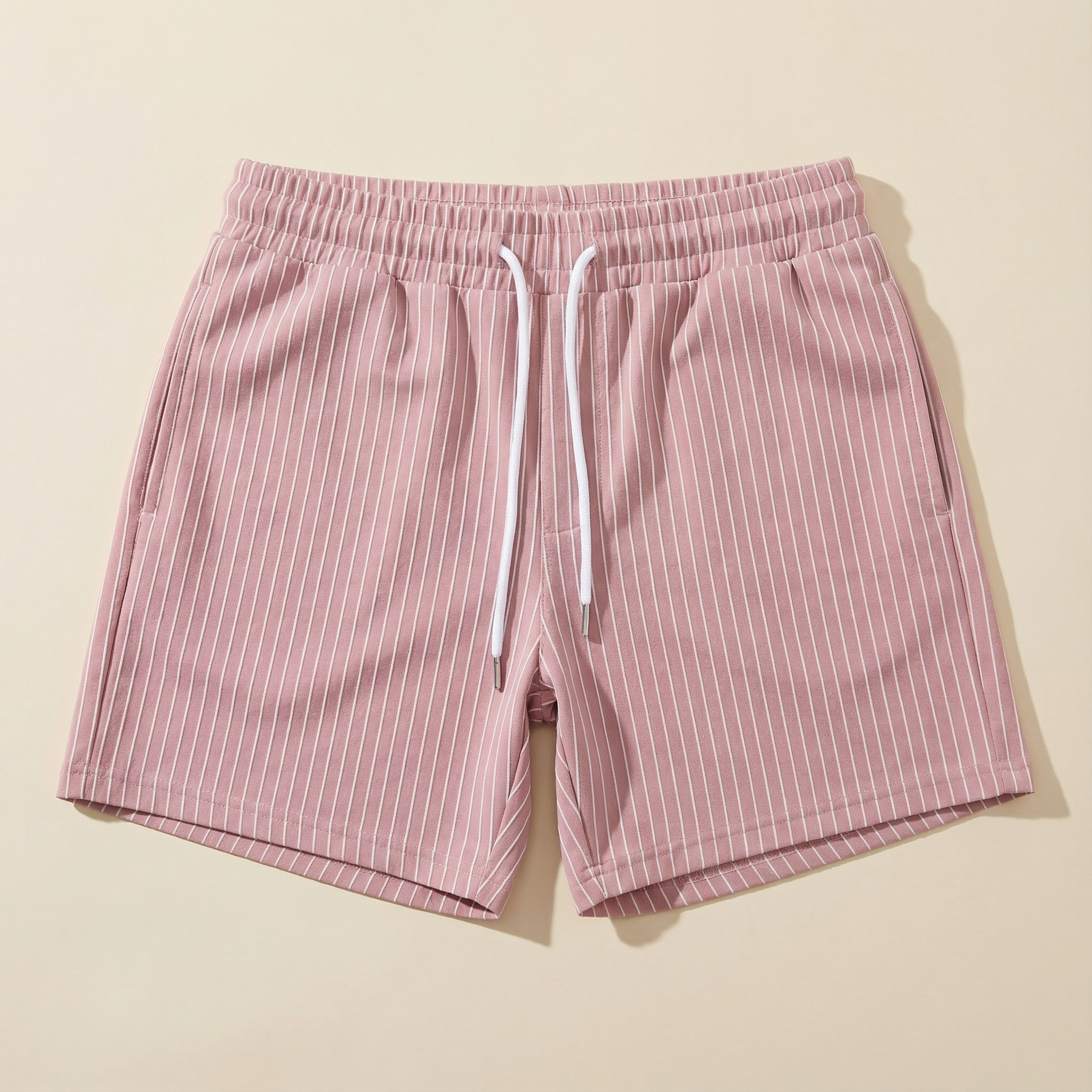 Men’s Drawstring Shorts – Elastic Waist, Vertical Stripe Pattern