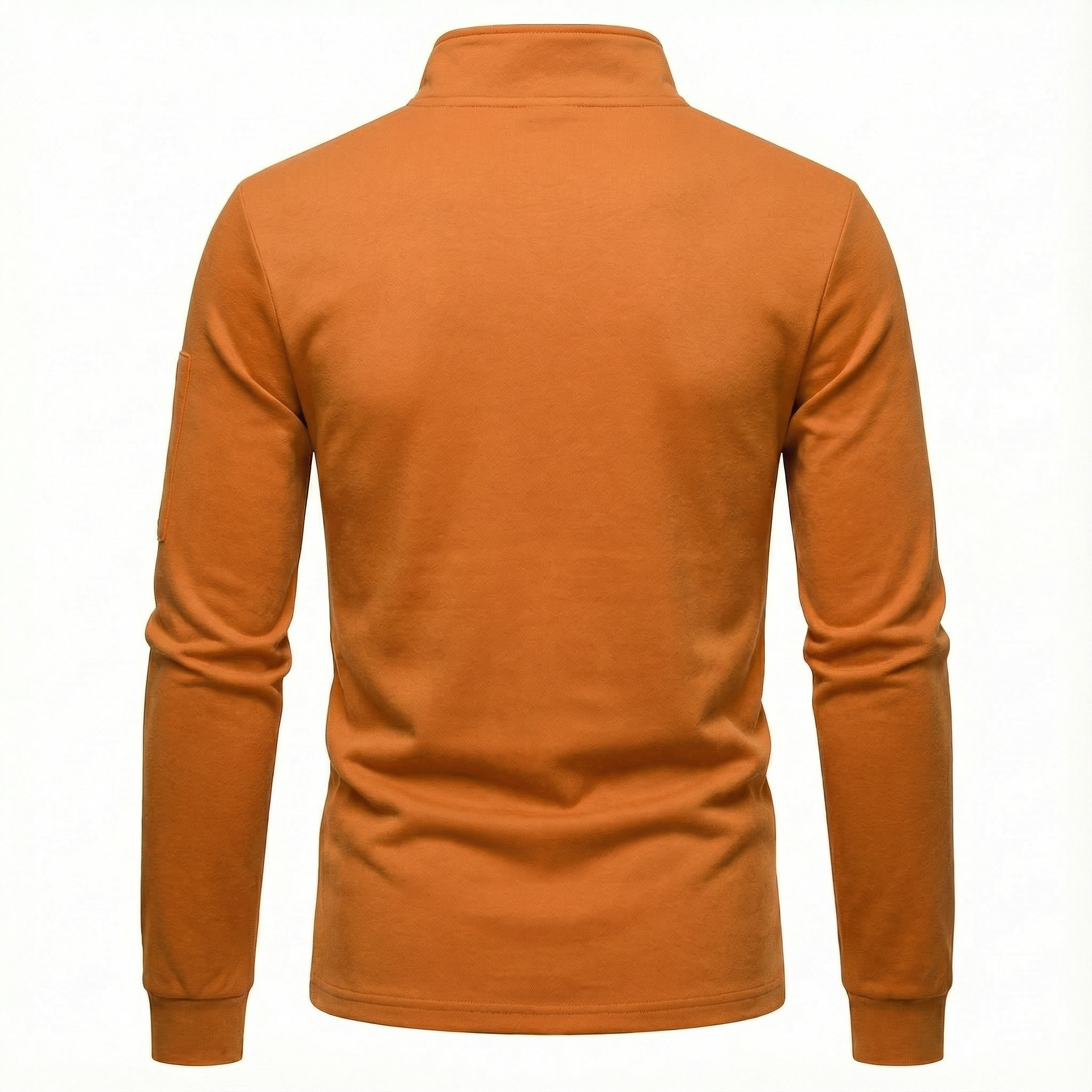 Men’s Long-Sleeve Sweater – Button Placket, Stand Collar