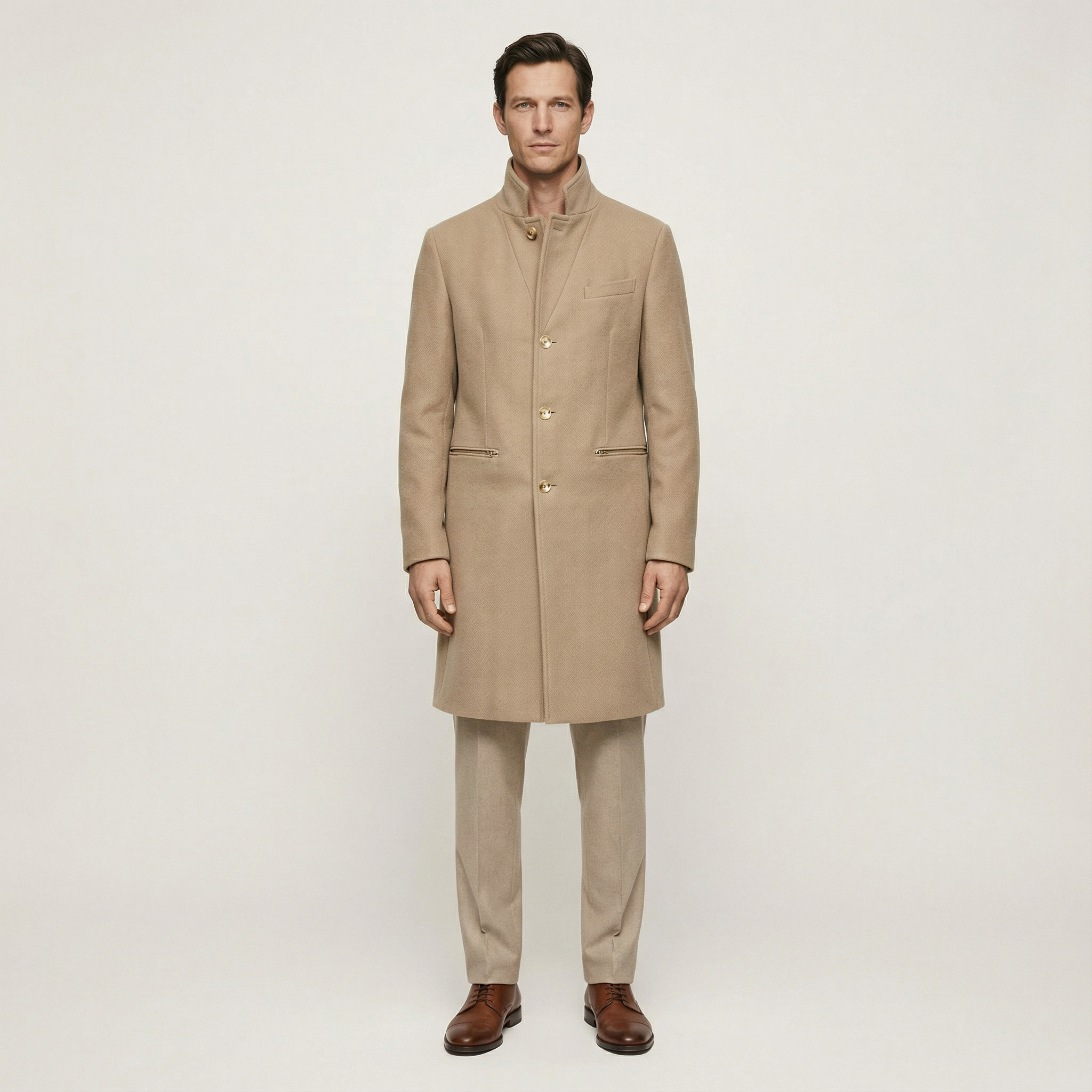 Men’s Long Coat – Button-Front Closure, Notched Collar