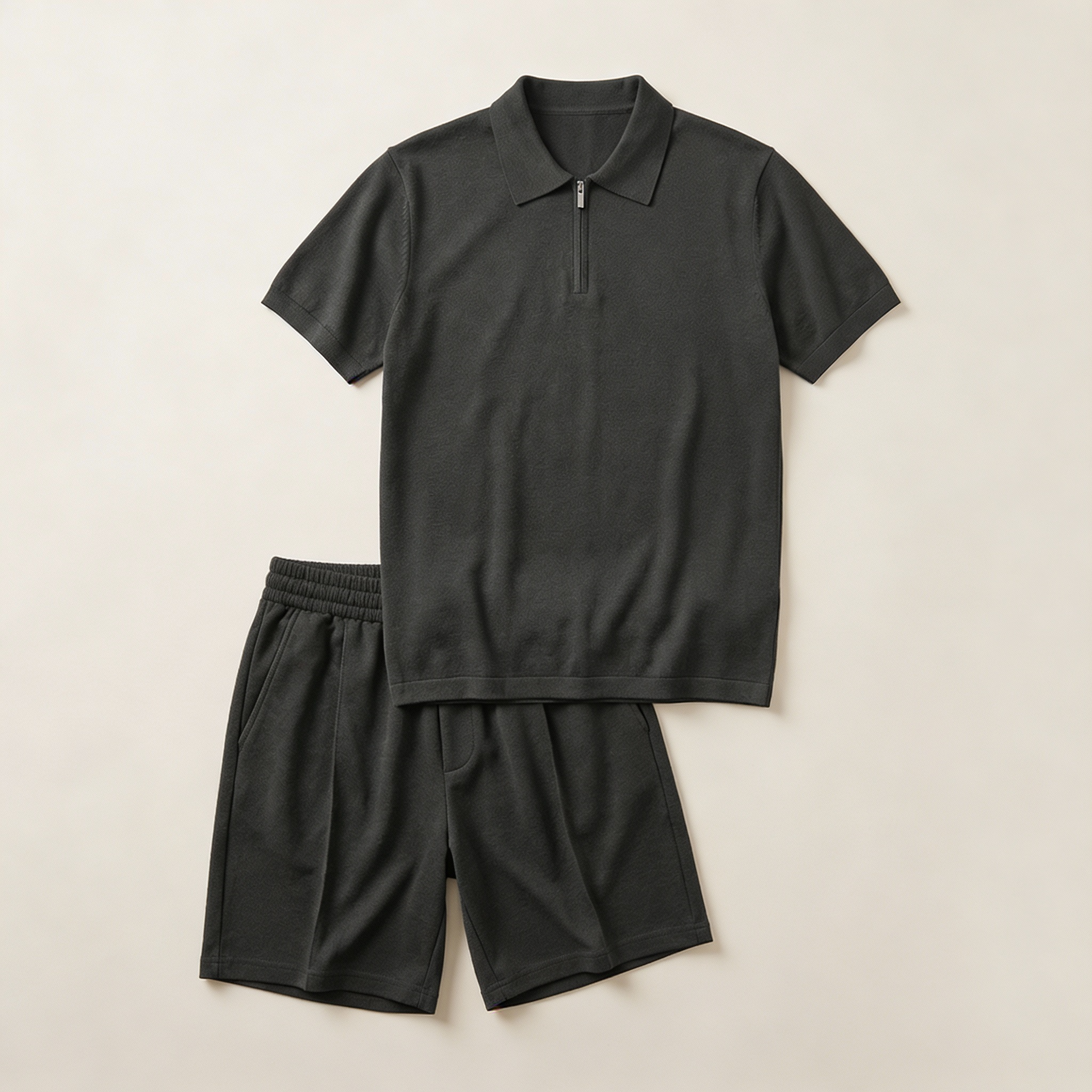 Men’s Polo Shirt and Shorts Set – Short Sleeves, Matching Design