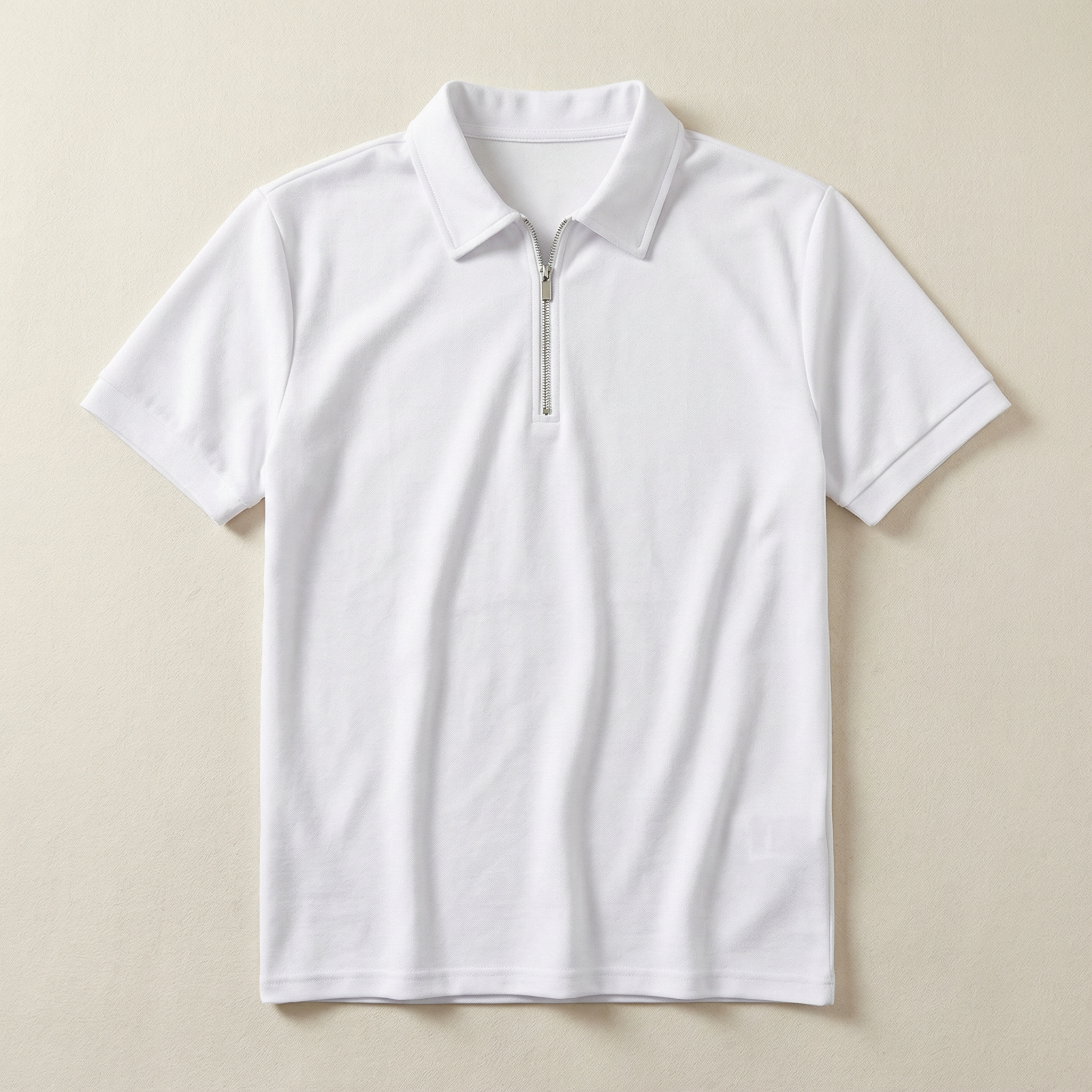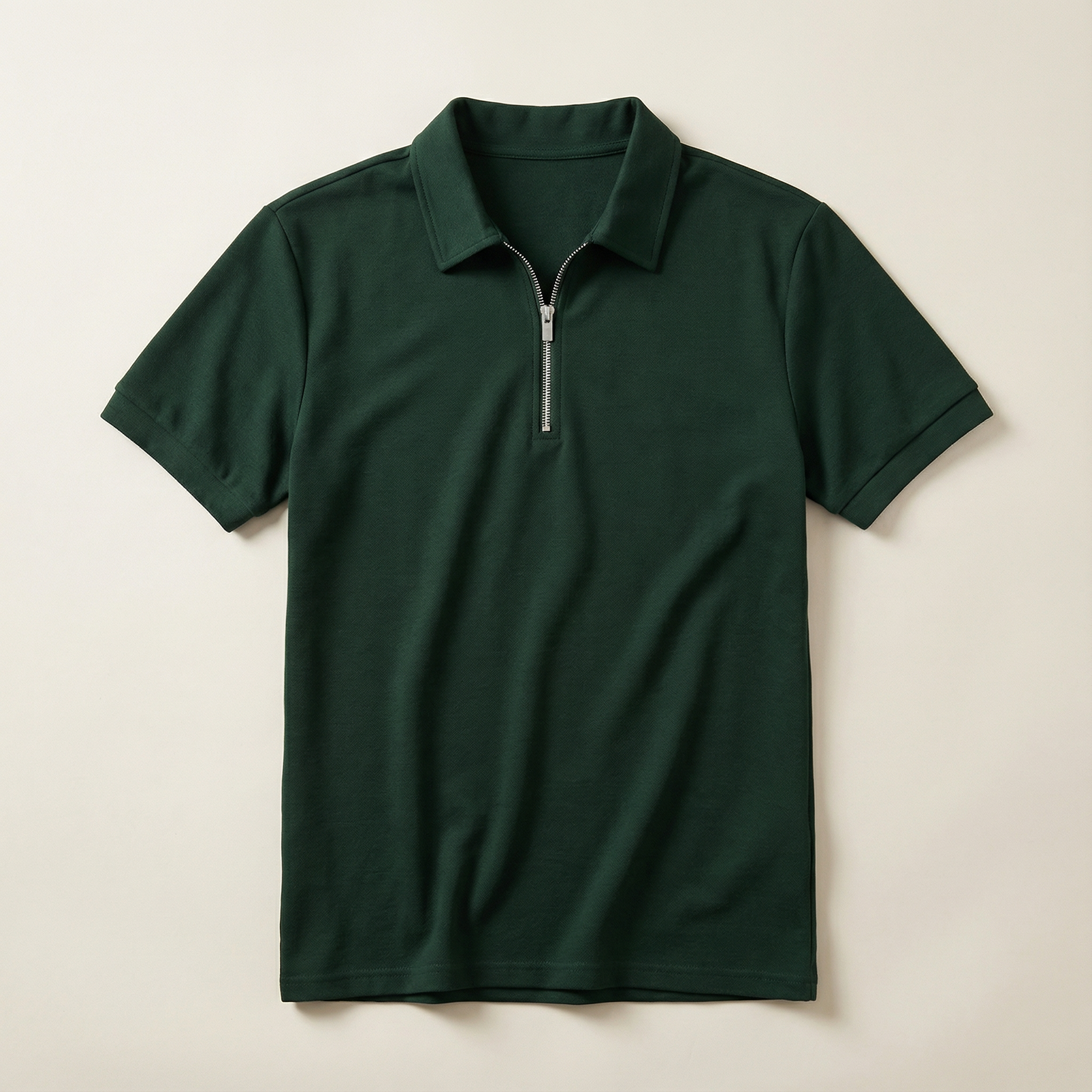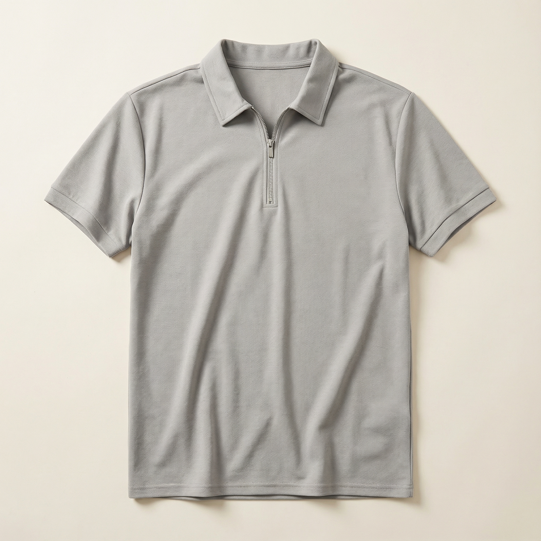 Men’s Short-Sleeve Quarter-Zip Polo Shirt – Slim Fit, Stand Collar Design