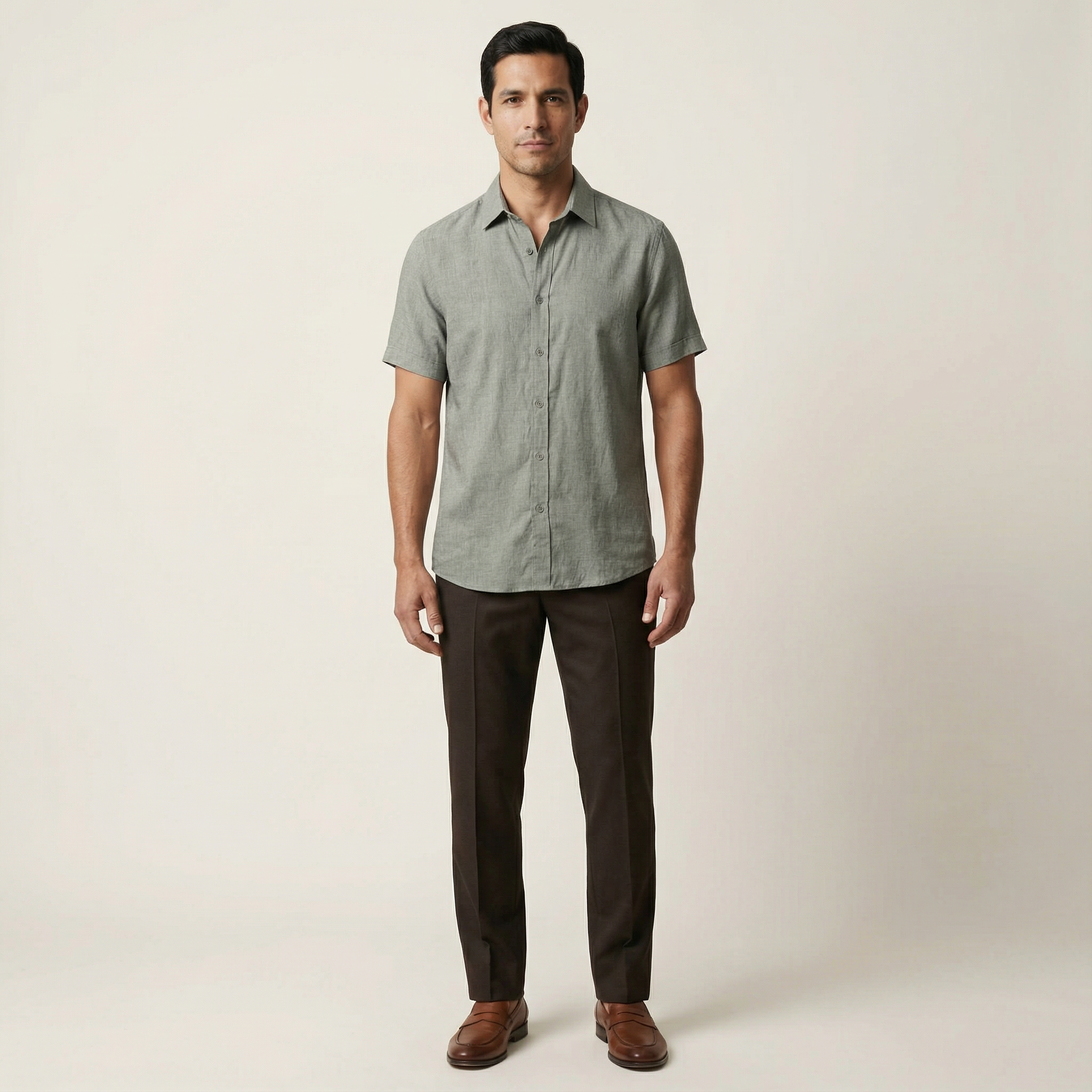 Men’s Slim-Fit Short-Sleeve Button-Up Shirt – Collared Design
